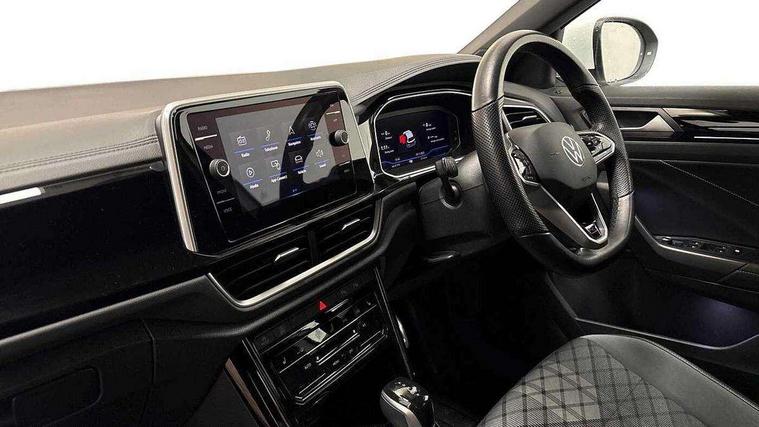 10.25" Digital cockpit pro, Bluetooth mobile phone interface, Driver alert system with fatigue detection, Driver tips and journey analysis, Emergency call service, Lane keeping system Lane Assist, Modified key software - reduce switch off time for key status change to Long no motion, Online services, Park assist including front and rear parking sensors, Service interval indicator, Tailgate/trunk lid release from outside, Think blue trainer driver tips and journey analysis, Warning sound and light for front seatbelts unfastened, Wireless app connect, Battery regeneration during braking, Start/stop function with battery regeneration, Diversity antenna for FM reception, Front and rear 6 speakers, Music playback - MP3, WMA and AAC files, Premium USB cable in choice of either Apple or Android smartphone compatibility, SD card slot, Simultaneous pairing of 2 compatible mobile devices, Title and cover art display, We Connect and We Connect Plus functionality, 3rd brake light, Auto dimming interior rear view mirror, Automatic hazard lights activation under emergency braking, Automatic headlight control with LED separate daytime running lights with coming/leaving home function, Extended roof spoiler, Exterior mirrors aspherical on driver side, convex on front passenger side, External USB type C socket and charging sockets, Front windscreen wiper with intermittent wipe and 4 position delay, Heated rear window, LED Plus headlamps, LED rear combination lamps, LED rear number plate lights, LED tail lamp rear comination lamps, Power windows with comfort operation and circuit breaker, R-Line design body coloured bumpers, Rain sensor, Rear exhaust tailpipe, Rear fog light on one side and reversing lights on both sides, Rear side wing doors, Rear wash/wipe with intermittent wipe setting, Remote electrically foldable door mirrors, puddle lights and reverse activated passenger's door mirror, 12V power socket in centre console, 3 rear head restraints, 3 seat bench in 2nd row, 4 load lashing points in luggage compartment, Air care climatronic air conditoning system with active combination filter and 2-zone temperature control, Black roof lining, Chrome plated radiator grille inserts, air vent surrounds and light switch surrounds, Door and side trim panel with leatherette insert, Drawer under drivers seat, Front + rear carpet mats, Front centre armrest, Front cupholders x 2, Front footwell illumination, Front reading light, Front scuff plates with R logo, Instrument lighting, white adjustable panel illumination, Interior ambient lighting and surround lighting, Interior light delay, Isofix child seat preparation, Leather gearshift handle, Load-through provision with cup holder when folded down ('Unsplit rear seat bench, split folding backrest, with centre armrest), Luggage compartment lighting, Single front passenger seat, Stainless steel pedals, Storage compartment in left and right luggage area, Storage compartment in rear doors, Storage compartments in driver and front passenger doors, Sunvisors with illuminated vanity mirrors, Variable boot floor, height adjustable and removable, Driver assistance pack without proactive passenger protection - T-Roc, 3 point height adj front seatbelts + pretensioners, 3 point seatbelts in outer rear with ECE label, ABS, Child locks on rear doors, Driver and front passenger airbag with front passenger airbag deactivation, Driver and front passenger safety-optimised head restraints, Drivers seatbelt reminder, Electronic parking brake, Electronic Stability Control (ESC) inc EDL (Electronic Differential Lock) and ASR (Traction Control), Front and rear passengers curtain airbag system including front side airbags, Front assist with city emergency braking and pedestrian monitoring, Front seat side impact airbags, Hill start assist, Predictive pedestrian protection, Rear disc brakes, Single tone horn, Tyre pressure loss indicator, Volkswagen roadside assistance, Alarm with interior protection, Anti-theft alarm system with interior monitoring, backup horn, and towing protection, Remote central locking with SAFELOCK, radio remote control with 2 remote control folding keys, Trims for alloy wheels,