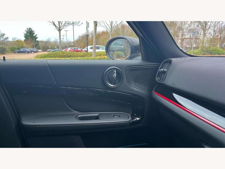 Active Guard incl speed limiting and lane departure functions with auto steering, and front collision warning with brake intervention, Automatic start/stop function with brake energy recuperation, Compatible mobile phone bluetooth with audio streaming, Cruise control with brake assist, Electro-mechanical speed dependant steering assistance, Instrument cluster, MINI Driving Modes - centre toggle switch to control driving setting (sport, mid and green), Mini E-call, On board computer, Double Vanos system, Fully variable valve control, High precision injection, Performance Control, Steptronic transmission with double clutch, FM tuner and DAB digital radio, 3rd brake light, Body colour fuel filler cap, Day time driving lights, Door sill strips, Dynamic brake lights, Electric windows, Heated rear window, Heated windscreen washer jets, John Cooper Works - aerodynamic kit (front and rear apron, spoiler), front and rear sport bumpers and part-painted side sills with door sill finishers, John Cooper Works Logo, LED fog lights, Model logo, Model logo on Tailgate, Rain sensor with auto headlights, Rear fog lights, Rear side wing doors, Rear window wiper, Side scuttle panel with integrated indicator, Split rear doors, Sun/heat protection glass, White indicator lenses, 12V socket in centre console, 3 seat bench in 2nd row, 360L luggage compartment capacity, 4 lashing eyes in luggage compartment, 40:20:40 split folding rear seats, Anthracite headlining with grab handles and clothes hooks, Chrome interior highlights, Colour line - Carbon black, Cupholders, English handbook, Front headrests, Glove compartment, Height and length steering column adjustment, Interior lighting with 12 basic colours selectable via toggle switch in roof, Isofix rear child seat preparation, LED reading lights, vanity mirror lights, front foot well light and spotlight on front seats, Mini John Cooper Works leather gearshift lever and handbrake gaiters, Multifunction steering wheel, Nappa leather steering wheel with MINI Yours logo, Rear headrests, Single front passenger seat, Stainless steel pedals and foot rest, Storage compartments in doors, Sunvisors with vanity mirrors, Excitement pack - Countryman, Navigation pack - Countryman, Piano black exterior pack - Countryman, 2 tone horn, 3 point seatbelts on all seats, 6 Airbags - front, side, head and seat belt tensioners, Anti-lock braking system (ABS), DSC - Dynamic Stability Control, Electronic handbrake, Front and rear disc brakes, Hill start assist, Manual rear child locks, Tyre pressure monitoring system, Alarm system with tilt sensor, monitoring doors, bonnet interior and tailgate, Auto drive away locking, Deadlocking function, Electronic vehicle immobiliser, Locking wheel bolts, Start/stop toggle with keyless go, Piano black JCW interior trim, Tool kit,