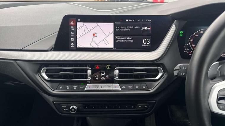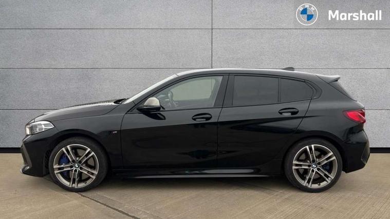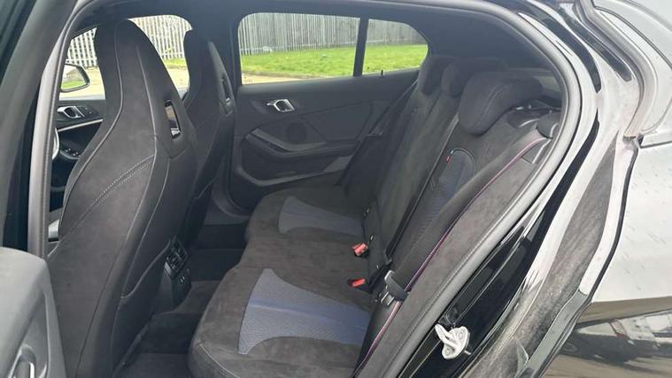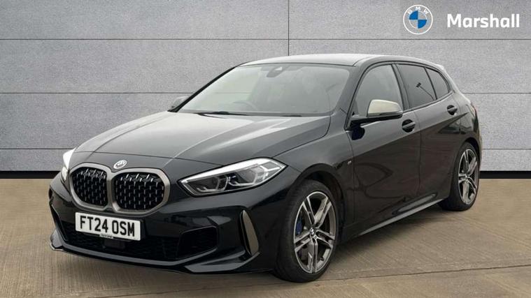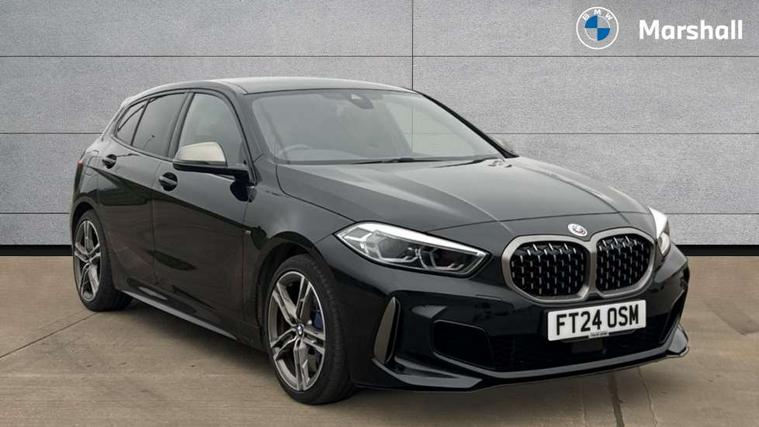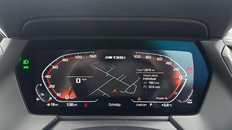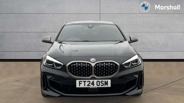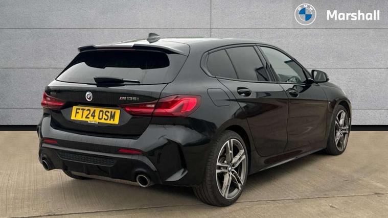 Active guard plus, Attentiveness assist, BMW ConnectedDrive online services, BMW Teleservices, Check Control warning system for monitoring of lights and door/luggage compartment open warning, Cruise control with speed limiter, Eco pro mode, Electric power steering, Electro hydraulically controlled multi-plate clutch transfers drive to rear axle and with power take-off device located on the front differential., Energy efficient operating strategy, Front axle single joint with specific axle kinematics to minimise drive influences on steering + provide increased rigidity agile driving behaviour, Gearshift time display in manual mode, Integrated owners handbook, Lane departure warning system, M Sports steering with M135i xDrive specific settings, Oil sensor for level and grade, On board computer, Optimum shift indicator, Personal Profile, Pull away assistant, Rigidly mounted rear subframe - Multi link construction with separate spring / damper configuration and excellent driving characteristics, Speed limit Info including no-overtaking indicator, Sporty fast gear shifting in sport mode, Aluminium lightweight construction, Anti roll bar front and rear, Balancer shaft, Double VANOS, Drive Performance Control, Eight speed sport automatic transmission with gearshift paddle switches, Electronic differential lock, Electronic selector lever, Engine cover with M performance designation, High precision injection, Larger fuel tank capacity (50 litres), Launch control, M135i specific heavily de-throttled engine intake air guide, M135i specific high-performance cooling package, M135i specific larger turbocharger with integrated divert-air valve, Petrol Particulate Filter, Twin tube gas filled shock absorbers with degressive characteristic curve, VALVETRONIC engine management, Variable, stepless and infinitely adjustable distribution of drive torque between the front and rear axles, xDrive intelligent all wheel drive with M135i specific reinforced components, DAB Digital radio, Auto dimming rear view mirror, Automatic headlight beam throw control, Automatic windscreen wipers and automatic headlight, Body colour door handles, Body colour roof trims, Cerium grey exterior mirror caps, Direction indicator side lights in exterior mirrors, Electrically adjustable exterior mirror with mirror adjustment switch on drivers armrest and aspheric on driver side, convex on passenger side, Exhaust tailpipe, Cerium Grey with bevelled finish - twin, round 100mm, left and right split, Fading support, Folding side mirrors with auto dimming/folding wing mirrors with auto dimming, Follow me home headlights, Front and rear bumper system with replaceable deformation elements, Front and rear electric windows with open and close fingertip control, anti trap facility and comfort closing, Front door sill finishers with M135i designation, Green tinted heat protection glazing, High gloss shadowline window frame, Recess cover mirror frames and B/C pillar embelisher trim, High level third brake light, Integrated front windscreen with washer jets, Kidney grille frame in Cerium Grey with Mesh design, LED daytime running lights, LED eyebrow turn indicators, Lightweight engineering, M logo designation side in cerium grey, M Performance exhaust system with valve control and minimised exhaust back pressure, M Performance specific setup, M Sport spoiler, Matt black air guide grilles, Matt black wheel arch trim, Model designation on electric bootlid includes xDrive designation for M135i xDrive, Nearside reverse light in rear light cluster, Preparation for high beam assistant, Rear fog lights, Rear side wing doors, Rear window wiper, Reinforced crank drive, new pistons and adapted con rods, Shark fin antenna, Trailer stabilisation logic, Visible VIN plate, Welcome lighting, 12V power socket in front centre console with blanking plug, 3 rear seat head restraints, 3 seat bench in 2nd row, 3 spoke sports leather steering wheel with black leather and stitching, pearl chrome decorative finish, specific M Badge, Anthracite headlining, Black boot net with lashing eyes, Cargo function on 2nd seat row, Child seat ISOFIX attachment for two outer rear seats and front passenger seat with anchorage points, Conditioned based service, Driver and front passenger backrest net on rear, Driver and front passenger seat heating, Driver side folding compartment in instrument panel, Folding rear clothes hook, Four grab handles integrated in roof lining, Front and rear door pockets with bottle holders, Front and rear side armrest integrated into door trim, Front armrest, Front M sports seats, Glove compartment, Height adjustable front head restraints, Luggage compartment for bag hooks on left and right, foldable luggage compartment liner and four lashing eyelets, Manual adjust steering wheel, Multi-function controls for steering wheel, Single front passenger seat, Storage compartment in centre console, Storage compartment in luggage compartment, Stowage of the parcel shelf in luggage compartment trim, Sun visors with vanity mirrors and insert tab, Two front centre console cupholders, Two zone automatic air conditioning, Type C two USB ports in rear centre console, Velour floor mats, Additional interior lighting pack - 1 Series M135i, BMW live cockpit professional pack- 1 Series, Connected pack professional - 1 Series, Interior lights pack - 1 Series, M Sport exterior styling aerodynamics pack - 1 Series 135i, 2 tone horn, 3 point seatbelts on all seats, front pyrotechnic belt tensioners, stopper and belt force limiters, rear coded belt buckles, Airbags - Front driver/passenger, front and rear curtain head protection, front side, manual deactivation of front passenger airbag, Anti lock braking system (ABS) with brake assist, BMW emergency call, Brake drying, Braking readiness, Child proof locking system in rear door, City braking function, Comfort modes, Cornering brake control, Crash sensor activating of airbags, Unlocking doors, hazard warning lights, interior light