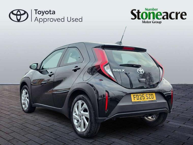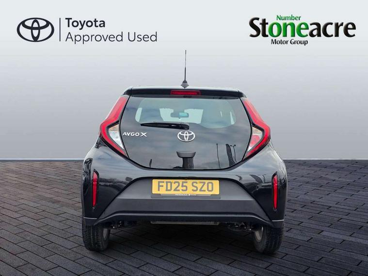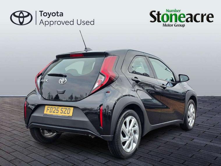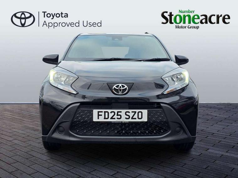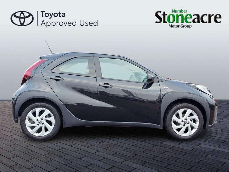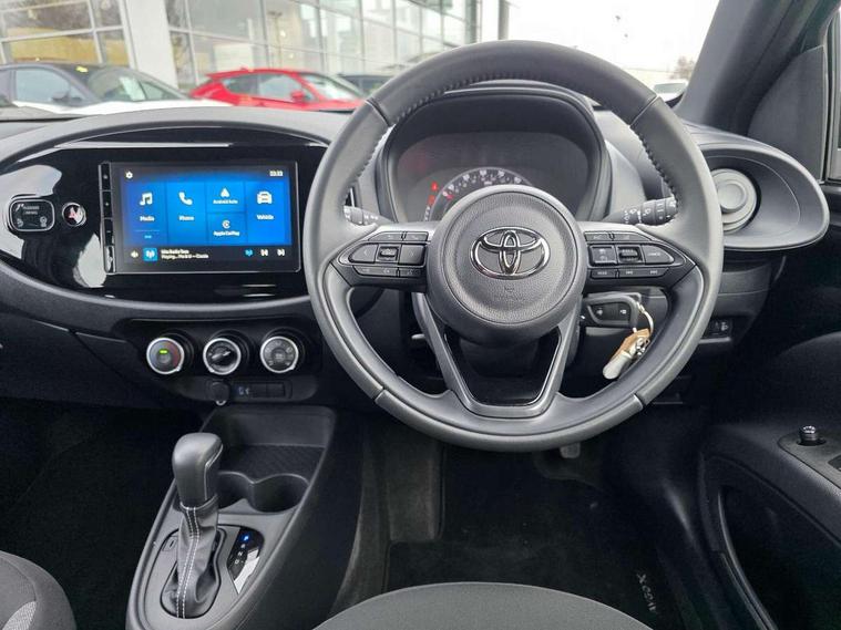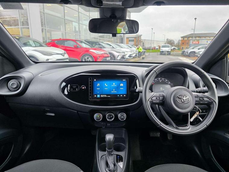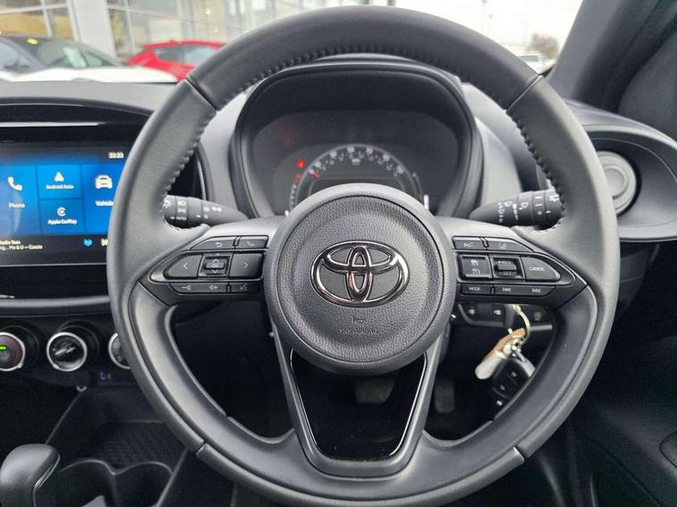 4.2" TFT colour screen, Adjustable speed limiter, Analogue speedometer, Bluetooth connectivity, Digital tachograph, Driver attention alert system, eCall emergency call system, ECO-driving indicator, Electric power steering, Intersection turn assist, Key reminder warning, Noise reduction kit, Pre collision system with emergency steering assist, Reversing camera with static guide lines, Smart phone integration with Apple car play/Android Auto, Speed limit display, Start and stop, Vehicle Stability Control (VSC), 4 speakers, 9" HD multimedia display touch screen with Toyota smart connect, DAB digital audio broadcast, USB connector, Auto headlights, Automatic headlights cut-off, Bicycle towing hook, Black lower front grille, Black rear bumper, Black side protection mouldings, Black upper front grille, Black wheel arch mouldings, Body colour door handles, Body coloured front bumper, Boot door scuff plate, Electric heated door mirrors, Follow me home headlights, Front power windows, Gloss black door mirrors, Headlight cut-off reminder, LED daytime running lights, LED front light guide, LED High mounted stop lamp, Manual day/night rear view mirror, Manual headlight levelling, Pagoda roof, Power adjustable door mirrors, Power back door, Projector halogen headlights, Rain sensor, Rear combination lights LED bulb type, Rear side wing doors, Rear windscreen defogger, Rear windscreen wiper, Short antenna, Variable intermittent windscreen wipers, 12v power outlet - front, 2 seat bench in 2nd row, 3 spoke leather steering wheel, 50/50 split folding rear seat, Adhesive roof headlining, Adjustable speed limiter switch on steering wheel, Audio and telephone switches on steering wheel, Black insert on steering wheel, Boot light, Centre room light, Chrome interior door handles, Chrome surround on air conditioning buttons, Clean air filter, Fabric upholstery, Floor mats, Front and rear cup holders, Front head rest deco art, Front head restraints, Gear shift indicator, Height adjustable driver seat, Intelligent adaptive cruise control switch on steering wheel, ISOFIX child restraint system on rear seats, Lane departure alert switch on steering wheel, Leather gearshift knob, Light grey roof lining, Manual air conditioning, Manual tilt steering wheel, Manually reclining and sliding driver seat, Manually reclining and sliding front passenger seat, Multimedia switches on steering wheel, Pollen filter, Rear door pockets, Rear head restraints, Resin console box storage, Satin silver insert on gear shift knob, Silver stitching on gear shift knob, Single compartment glovebox with lights, Single front passenger seat, Soft tonneau cover, Sun visors with mirror on driver and passenger side, Voice recognition switch on steering wheel, Toyota safety sense pack - Aygo X, Anti lock braking system + Electronic brake force distribution, Child safety door lock, Emergency brake light signal (EBS), Hill start assist control (HAC), Passenger airbag on/off switch, Seat belt reminder for front and rear seats, Supplement restraints system (SRS) - 6 airbags, Traction control, Tyre pressure warning system, Immobiliser, Remote power door locks, Black air vent surround, Black wheel centre caps, Tyre repair kit,