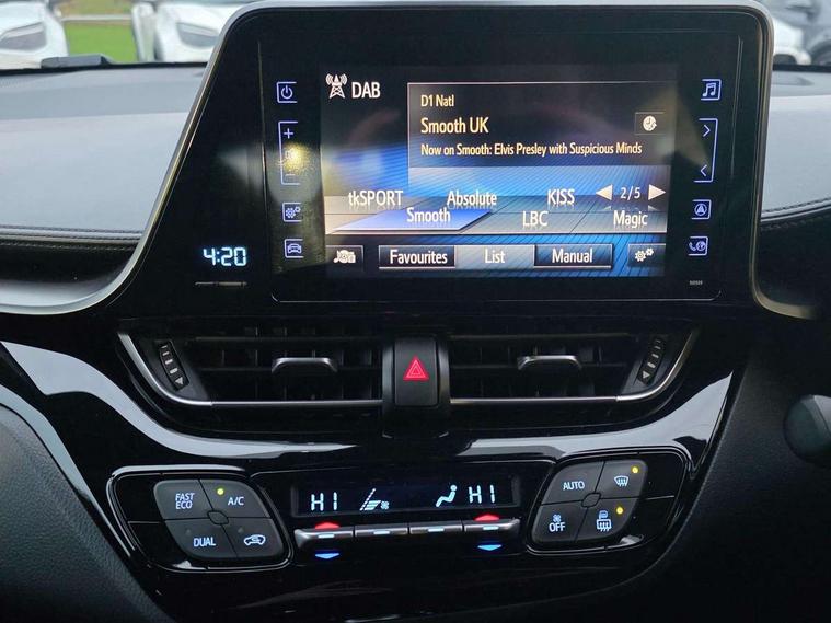 4.2" Colour TFT driver information display, Adaptive cruise control, Bluetooth system, Collision prevention assist, Lane departure warning system, Lights on warning, PAS, Reversing camera, Traffic sign recognition, Trip computer, Vehicle Stability Control (VSC), Auxiliary input socket, DAB Digital radio, Steering wheel mounted controls, USB connection, Auto dimming rear view mirror, Auto high beam, Body colour door handles, Body colour heated door mirrors, Body coloured bumpers, Electric door mirrors, Follow me home headlights, Front and rear electric windows, Front fog lights, Heated rear windscreen, LED daytime running lights, Rain sensitive windscreen wipers, Rear spoiler, Rear wiper, Shark fin roof aerial, 12V Accessory socket, Child seat anchorage points, Chrome interior door handles, Cloth upholstery, Driver/passenger sunvisors and illuminated vanity mirrors, Dual zone automatic air conditioning, Folding rear seats, Front and rear door pockets, Front centre armrest, Front cupholders x 2, Front head restraints, Height adjustable drivers seat, Illuminated entry system, Leather gear knob, Nappa leather steering wheel, Rear headrests, Tilt/telescopic steering column, 3x3 point rear seatbelts, ABS+EBD+Brake assist, Airbag deactivation switch, Driver/Front Passenger airbags, Driver/front passenger side airbags, Drivers knee airbag, ESP + traction control, Front and rear curtain airbags, Hill start assist control (HAC), Rear child proof door locks, Road sign information display, Tyre pressure monitoring system, Alarm, Immobiliser, Remote central locking, Tyre repair kit,