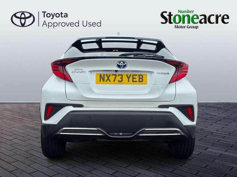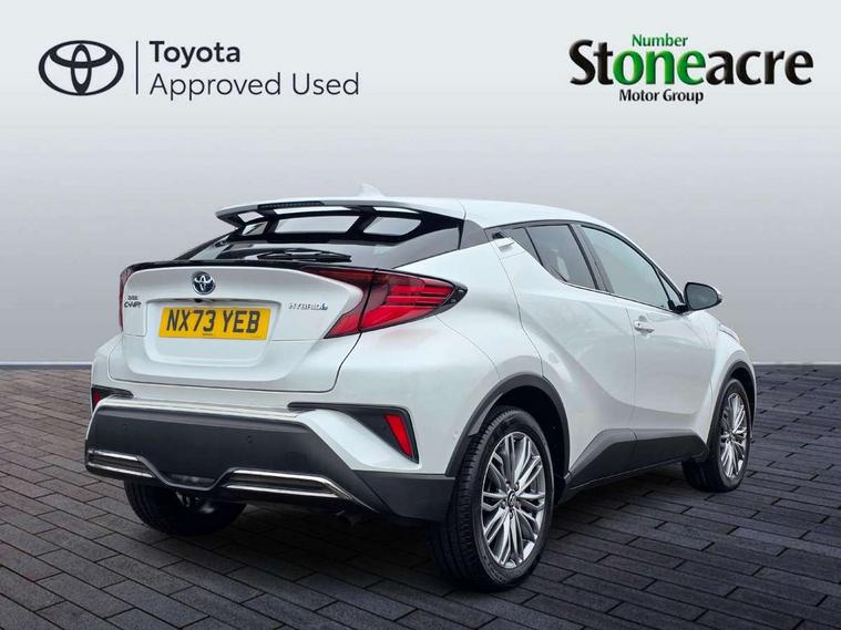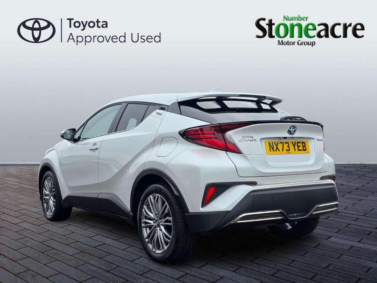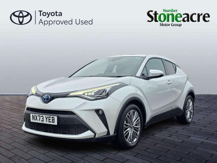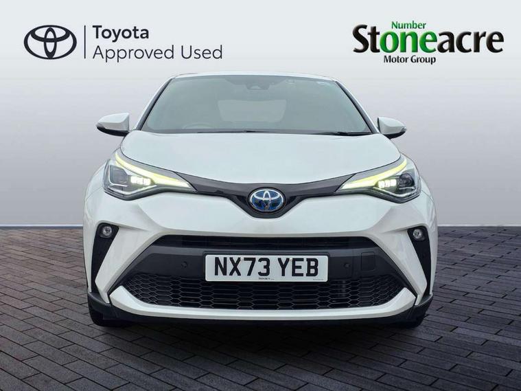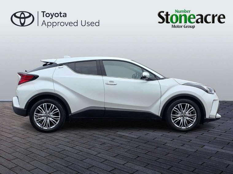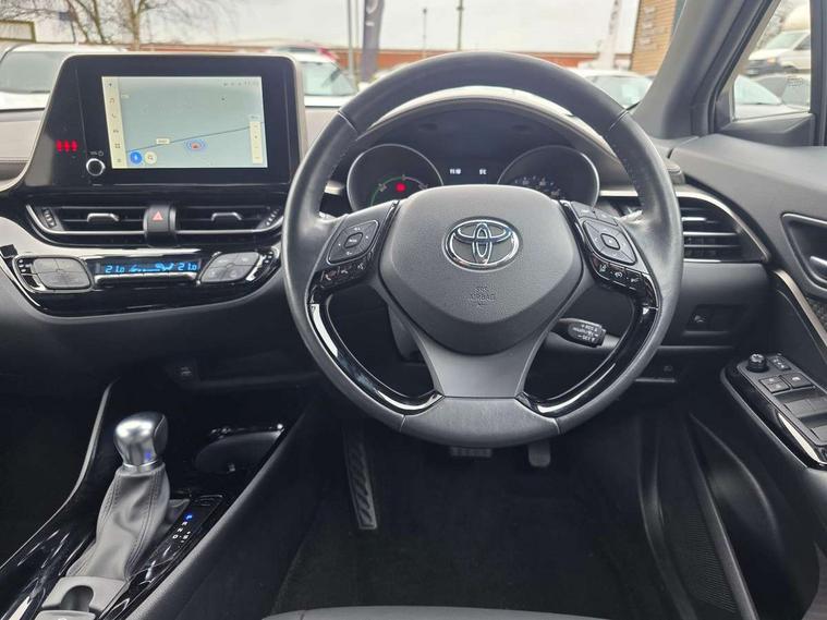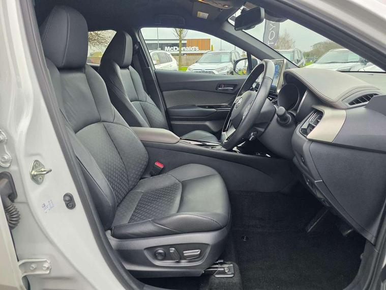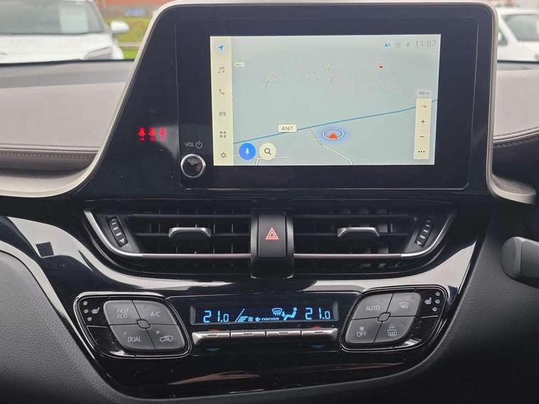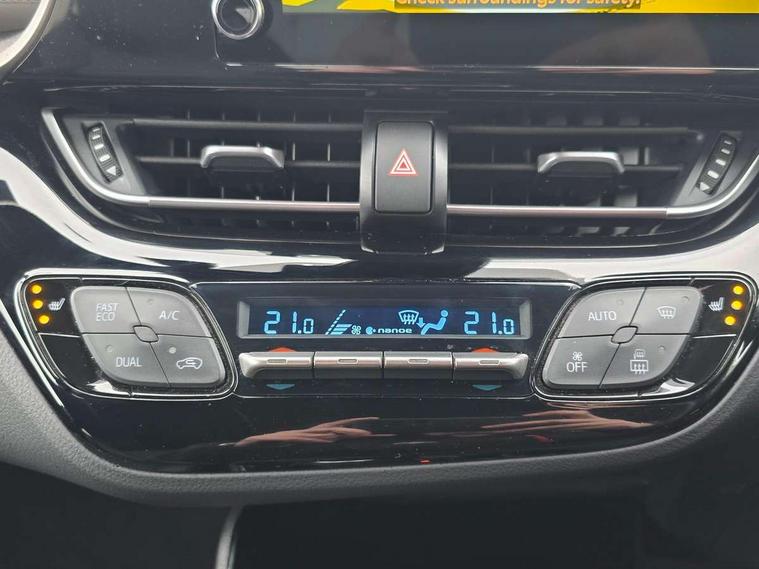 4.2" coloured TFT screen for multi-information display, Adaptive cruise control, Apple car play and Android auto, Bluetooth connectivity, E-call, Electric power steering, Hybrid system indicator, Lane departure alert with steering control, Lane trace assist, Push button tailgate release, Remote boot door release in cabin, Remote boot door release in key, Reversing camera, Road sign assist - RSA, Simple Intelligent parking assist, Smart voice assist, Touch 2 Go navigation system, Trip computer, Voice recognition, Wireless smartphone integration, Vehicle Stability Control (VSC), 6 speakers, AM/FM radio, DAB Radio (Digital Audio Broadcasting), Toyota touch 2 multimedia system with 8" display, USB connector, Wi-fi connectivity, Adaptive front light system, Adaptive LED Headlights, Anti-jam protection on power windows, Auto high beam, Auto up and down function on all power windows, Automatic headlight levelling, Automatic headlights, Automatic headlights cut-off, Black and body coloured rear bumper, Black lower front grille, Black upper front grille, Body colour door handles, Body colour door mirrors, Body colour front spoiler lip, Body coloured front bumper, Boot door release with push button, Electric heated door mirrors, Follow me home headlights, Front and rear power windows, Headlight cut off reminder, Honeycomb lower front grille, LED daytime running lights, LED fog lights, LED front light guide, LED High mounted stop light, LED rear brake lights, LED rear combination lights, Noise reduction layer on front windows and windscreen, Power adjustable door mirrors, Privacy glass, Rain sensor, Rear sequential indicators, Rear side wing doors, Rear spoiler, Rear tailgate, Rear window defogger, Rear window wiper, Shark fin antenna, UV-filter on driver and passenger windows, UV-filter on rear windows, Variable front intermittent wipers, 12v power outlet - front, 3 rear headrests, 3 seat bench in 2nd row, 3 spoke leather steering wheel, 60/40 split folding 2nd row rear seats, Adjustable rear headrests, Adjustable speed limiter switch on steering wheel, Assist grips front and centre pillar, Audio and telephone switches on steering wheel, Black front door assist grips, Blue ambient lighting on front cup holders, Blue ambient lighting on front doors, Boot light, Chrome interior door handles, Driver and front passenger personal light, Driver and front passenger Whiplash Injury Lessening seats, Driver and passenger seatback pockets, Dual zone automatic air conditioning, Floor mats, Front cupholders, Front head restraints, Front sports seats, Glovebox with internal light, Hard tonneau cover, Heated driver and front passenger seats, Heated steering wheel, Hooks for luggage holding net, Humidifying Nanoe air purifier, Illuminated entry system, Isofix attachments on outer rear seats, Leather gearshift, Leather wrapped steering wheel, Light on driver sun visor, Light on passenger sun visor, Manual telescopic steering wheel, Manual tilt steering wheel, Microphone on front personal light, Mirror on driver sun visor, Mirror on passenger sun visor, Multimedia switches on steering wheel, Pollen filter, Power adjustable lumbar support on driver seat, Power tilting cushion on driver seat, Shopping bag hooks, Single front passenger seat, Slow opening on lower glovebox, Voice recognition switch on steering wheel, Leather pack - C-HR, Tech with parking sensor pack - C-HR, 16 Disk front wheel brake, 3x3 point rear seatbelts, ABS+EBD+Brake assist, Electronic parking brake, Front and rear seatbelt reminder, Front passenger airbag on/off switch, Hill start assist control (HAC), Pre collision system with pedestrian detection, Pre-tensioners and force limiters, Rear door child safety locks, SRS Airbags - Driver + Front passenger, front side, front and rear curtain and driver's knee airbags, Toyota safety sense, Tyre pressure monitoring system, Tyre pressure warning system, Acoustic vehicle alert system (AVAS), Glass-breaking alarm sensors, Immobiliser, Intrusion alarm, Intrusion sensor, Motion sensor alarm, Power door locks, Power passenger window lock, Remote central locking, Black lower dashboard, Dark brown upper dashboard, Piano black console, Silver deco line on upper dashboard, Tyre repair kit,