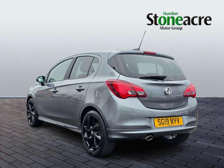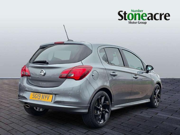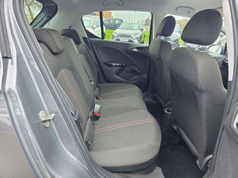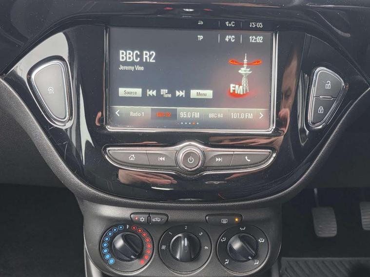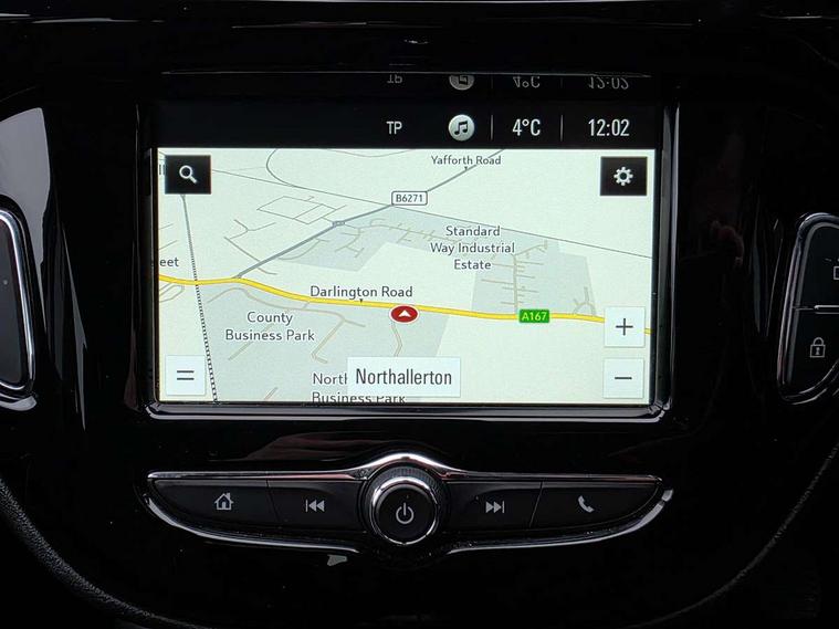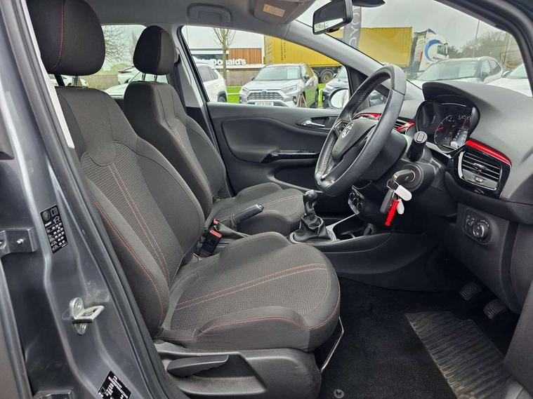Apple car play/Android Auto, Central facia display, Cruise control + speed limiter, Digital fuel gauge with low fuel warning light, Digital water temperature gauge, Electric speed sensitive power steering, Exterior temperature gauge, Lights on audible warning, Multi function trip computer, Navi 4.0 IntelliLink navigation with 7" touchscreen, traffic program, DAB , USB, Bluetooth audio streaming, Apple CarPlay/Android auto, and microphone, Rev counter, Service indicator, Speed warning indicator, Speedometer, White graphics on black background, Front anti roll bar, Sports suspension, Steering wheel mounted audio/cruise controls, Black door mirrors, Black foil on B-pillars, Black front grille, Black roof, Body colour bumpers, Body colour door handles, Body colour front lower spoiler/side sills/rear lower skirt, Chrome effect tailpipe extension, Dark tinted rear windows, Dipping rear view mirror, Door to door illumination, Electric adjustable/manual folding heated door mirrors (wide angle on driver's side), Electric headlight beam leveling, Electrically operated front windows with safety auto reverse/one touch facility, Front fog lights with black surround, Halogen headlights, Hazard warning lamps, Headlamp levelling, Heated rear window, Heated windscreen, High level LED centre brake light, Intermittent rear wash/wipe, Laminated windscreen, LED daytime running lights, Mineral black door mirror housings, Rear fog lights, Rear wiper, Side window demist vents, Two speed windscreen wipers with variable intermittent wipe, Welcome lighting, Windscreen demist vents, 12V electrical accessory socket in front, 3 spoke steering wheel, Anti submarining ramps in all seats, Centre console with cupholders, Chrome interior door handles, Driver's and front passenger's sunvisors, Driver's and front passenger's tiltable assist handles, Driver's and passenger's vanity mirrors with flip up cover, Driver's vanity mirror, Four adjustable facia vents, Front courtesy lights, Front door pockets, Front map reading lights, Front seat belt pre-tensioners with load limiters, Glovebox with lid, Grab handles, Height adjustable driver's seat, Height adjustable front headrests, Height adjustable rear head restraints with adjustable backrest, Illuminated luggage compartment, Instrument panel light dimmer, Interior tailgate handles, Isofix child seat mounting points on outer rear seats, Leather gear knob and handbrake grip, Load restraining lashing points, Luggage compartment cover, Multi function steering wheel, Passenger make up mirror, Pollen filter, Reach + rake adjustable steering column, Rear courtesy lights, Rear door pockets, Rear reading lights, Reclining front seats, Sports front seats, Storage box on driver's side lower facia, Stowage facility for luggage compartment cover behind rear seats, Twin gas assisted tailgate struts, Sight and light Pack - Corsa, Anti-lock braking system (ABS), Brake assist function, Electronic brake force distribution, Electronic Stability Programme, Energy absorbing steering column, Front and rear seatbelt reminder, Front and rear seatbelt unfastened audible warning and warning light, Front seatbelt force limiters, Gas pressure dampers, Height adjustable front seatbelts, Hill start assist, Manual passenger airbag deactivation function, Pedal release system, Rear child proof door locks, Reinforced passenger safety cell, Side impact protection beams, Six airbags - Driver's dual stage airbag/front passenger's dual stage airbag/front seat side impact airbags/full size curtain airbags, Three 3 point rear seatbelts, Three inertia reel lap/diagonal seatbelts, Traction control, Tyre pressure monitoring system, Electronically protected audio, Engine Immobiliser & Deadlocks, Key left in ignition audible warning, Locking wheel bolts, Remote control central locking, Visible vehicle identification number, Piano black facia with white inserts, 17" Gloss black alloy wheels, Low rolling resistance tyres, Tyre inflation kit,