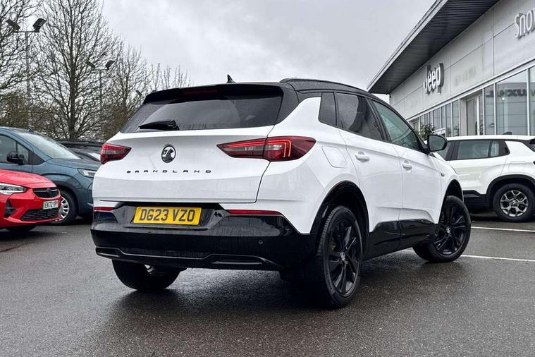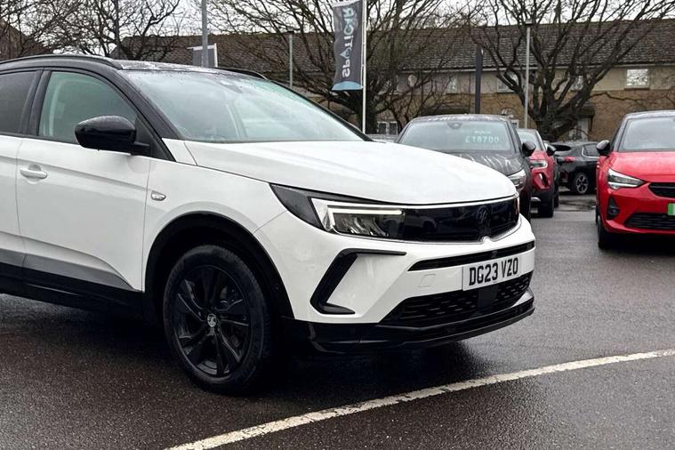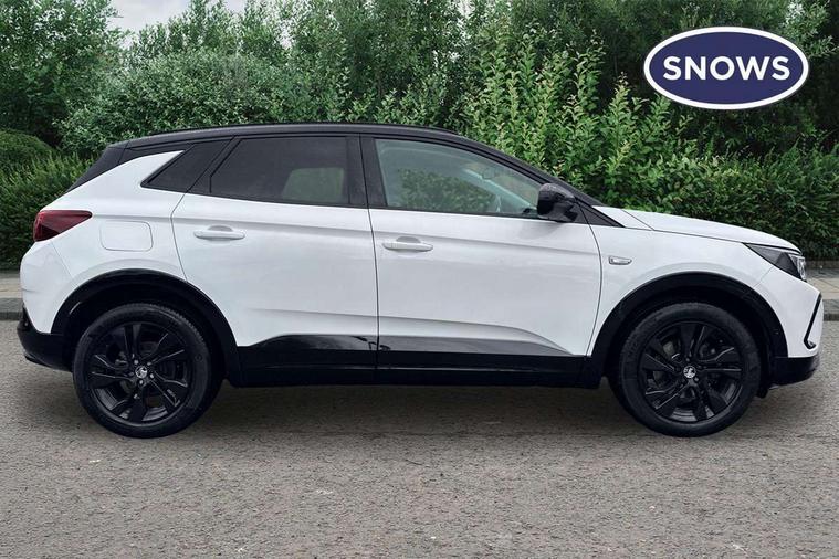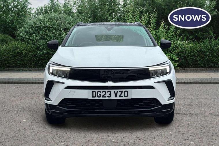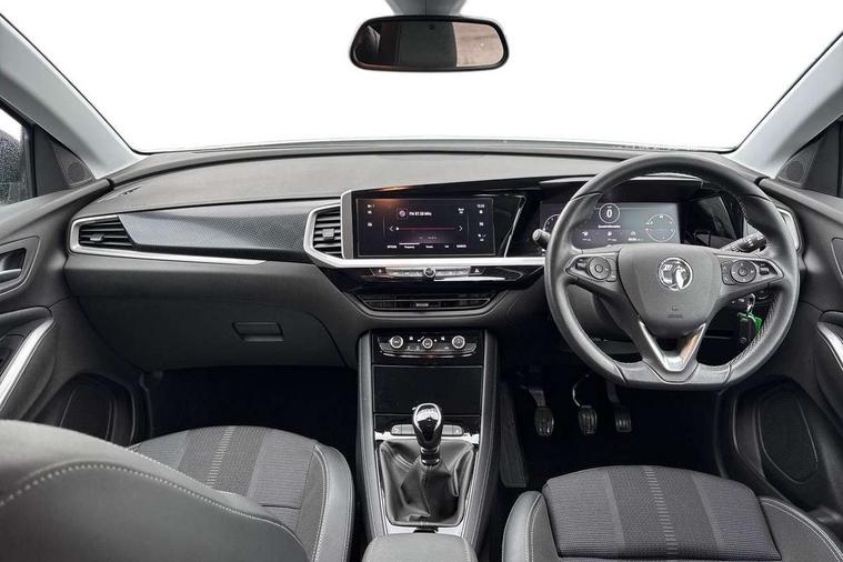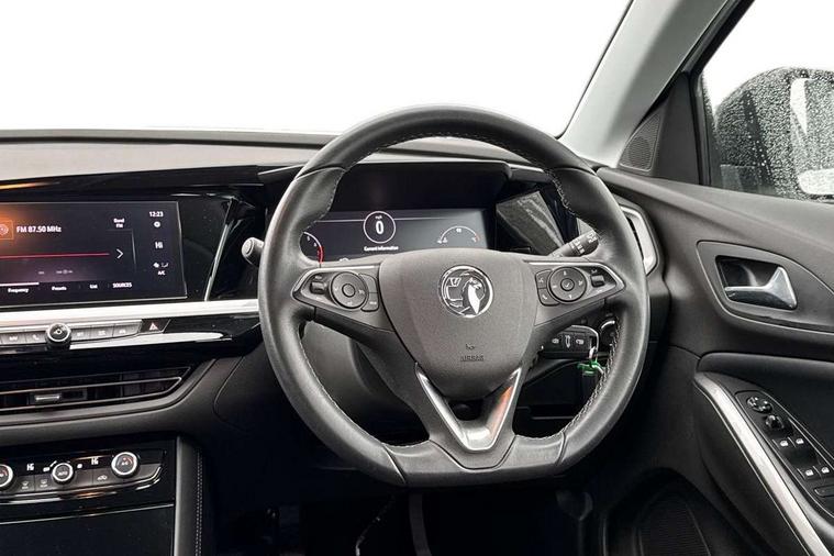 12" colour digital cluster, Central facia display with digital clock, outside air temperature and audio information, Cruise control with speed limiter, Digital fuel gauge with low fuel level warning light, Digital rev counter, Digital speedometer, Digital water temperature gauge with warning light, Driver drowsiness alert system, Driver information - Total mileage, service indicator, oil life, Front and rear parking distance sensors with 180 degree rear view camera and advanced park assist, Gearshift up/down indication light, Lane departure warning system, Lane keep assist, Lights on audible warning, Multi function trip computer - Trip odometer, vehicle range, average speed and fuel economy, instantaneous fuel economy and driving time, Multimedia navi pro with 10" colour touch+ sat nav+AM/FM/DAB radio, bluetooth audio streaming/mobile phone portal, Apple carplay/Android auto, USB, Side blind spot alert, Speed sensitive electric power assisted steering, Speed sign recognition, Start/stop system, Vauxhall connect including Emergency call (SOS e-call) and Breakdown call (b-call), Anti-roll bars, Compound crank rear suspension with coil springs and gas pressure dampers, Independent decoupled MacPherson strut front suspension with gas pressure dampers and coil springs, anti-roll bar, Six speaker - four front + two rear, Steering wheel mounted audio/phone/cruise controls, Automatic lighting control, Automatically dimming anti dazzle rear view mirror, Black door mirrors, Black roof, Black side window trim, Body colour door handles, Body colour upper front bumper, Carbon black lower front and rear bumpers, protective wheel arches and lower door cladding, Collapsible windscreen wipers, Dark tinted rear windows, Door to door illumination, Electric adjustable/heated/folding door mirrors, Electrically operated front and rear windows with safety auto reverse and one touch up/down facility, Front wiper system spraying directly from wipers, Hazard warning lights, Heated rear screen with timed cut off, High beam assist, High gloss black exterior detailing, High gloss black Griffin for Vizor and tailgate with high gloss black Grandland tailgate lettering, High gloss black protective front and rear skid plates and C-shape bumper inserts, High gloss black roof rails, High level centre rear brake light, Intermittent rear window wash/wipe, LED daytime running lights, LED Headlights, LED tail lights, Magic wash, Manual headlight beam levelling, Rain sensor windscreen wipers, Rear side wing doors, Rear spoiler, Reversing light, Shark fin aerial, Soundproof insulated windscreen, Two speed windscreen wipers with variable intermittent wipe, Upper and lower bumper design, Vizor front grille, Welcome lighting, 12V electrical accessory socket in front, 3 bench rear seats in 2nd row, 3 spoke flat bottom leather steering wheel with satin chrome effect bezel, 4 way electric driver lumbar support, 4 way passenger electric lumbar support, 60/40 split folding rear seat, Advanced predictive logic control system using a sun sensor, Ambient centre console downlighter, Automatic air direction and fan speed with manual override, Charcoal filter, Chrome effect interior door handles, Covered storage compartment in centre console and in driver armrest, Driver's centre armrest, Drivers seat with height, reach, backrest adjustment and seat cushion extension, Dual zone electronic climate control, Ergonomic active drivers sports style seat, Focus cloth upholstery, Front door pockets with 2.6 litre capacity, Front passenger seat, Front passenger seat with reach and backrest adjustment, Front passengers sports style seat, Fully carpeted luggage area, Height adjustable headrests, Illuminated driver/passenger sunvisors with vanity mirror, Illuminated luggage area, ISOFIX on front passenger and rear outer seats, Luggage compartment cover, Reach + rake adjustable steering column, Rear centre seat head restraint, Rear door pockets with 1.8 litre capacity, Rear passenger compartment heating ducts, Rear reading lights, Two drinks holders in centre console, Anti-lock braking system (ABS), Automatic emergency braking with pedestrian detection, Child proof locks on rear doors, CSC - Cornering stability control, Deactivation switch for front passenger front and side impact airbags, Deflation detection system, Driver airbag, Dual seatbelt pretensioners on front seats, EBD - Electronic brakeforce distribution, Electronic parking brake, Electronic stability program (ESP) including traction control, Front brake ventilated disc 304mm diameter, Front passenger airbag, Front seat side impact airbags, Full-size curtain airbags for driver and front passenger, Hill start assist, Hydraulic Brake Assist (HBA), Inertia reel lap and diagonal seatbelts for all seats, Load limiters on outer rear seatbelt retractors, Pretensioners on outer rear seatbelt retractors, Rear brake ventilated disc 268mm diameter, Smart seatbelt reminder for front and rear seats, Tyre pressure monitoring system, Central locking, Deadlocking system, Electronically protected audio equipment, Engine deadlock immobiliser, Locking wheel nuts, Remote security alarm system, Black door panels with black premium leather effect inserts, Dax decor facia panel with palladium medium finish, 18" 5 twin spoke high gloss black alloy wheels, Tyre inflation kit,