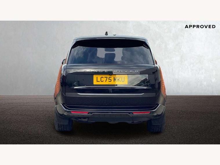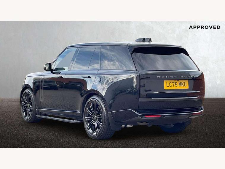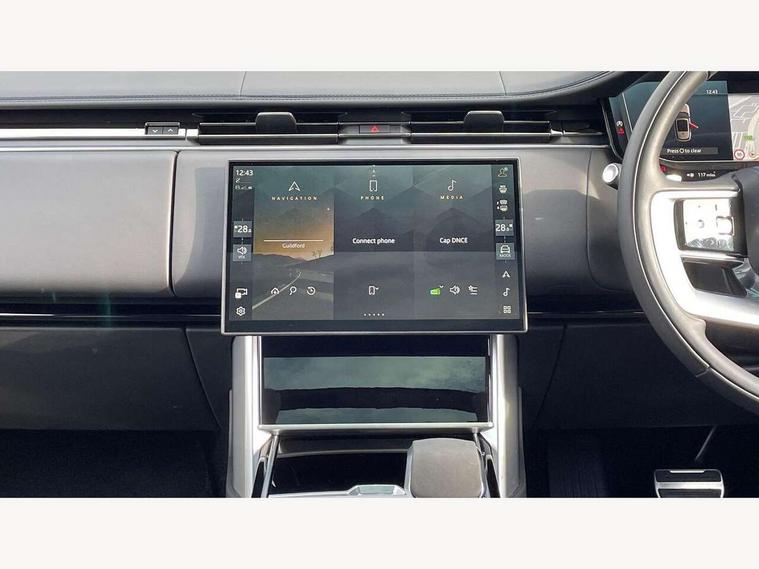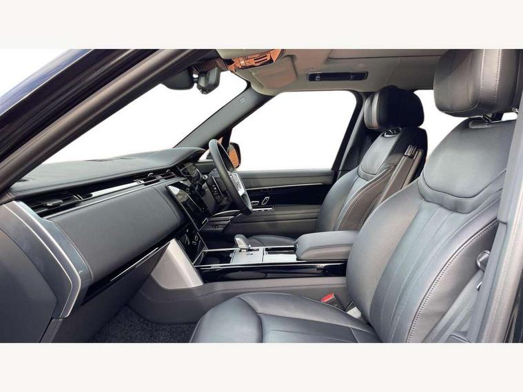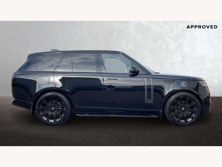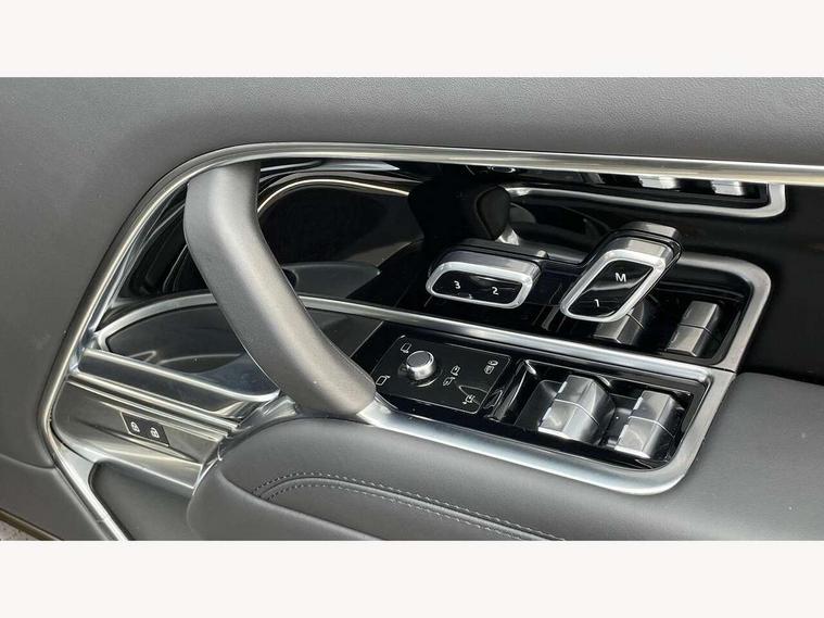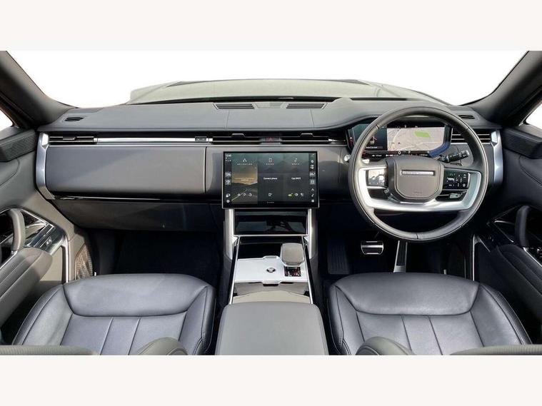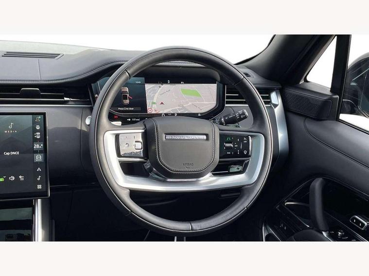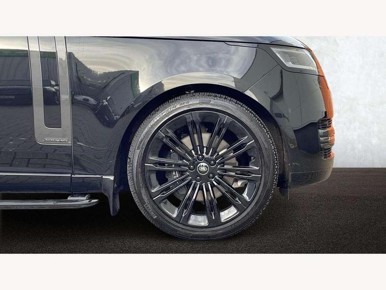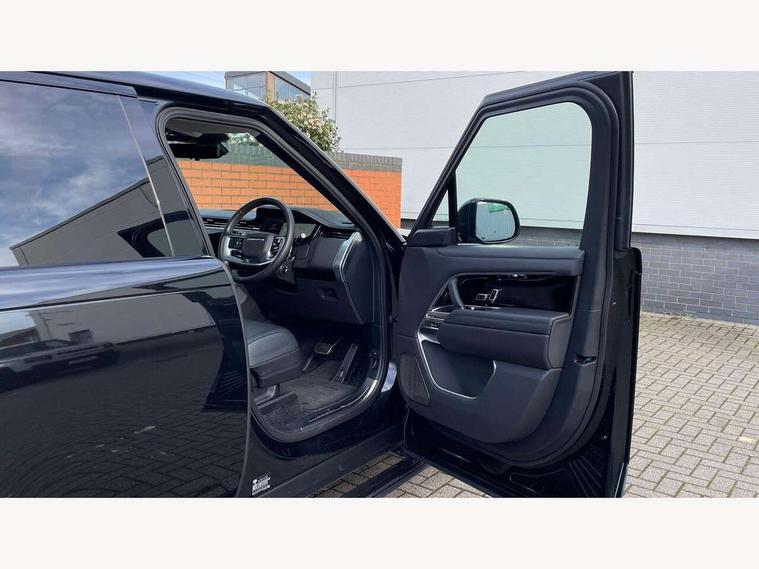 13.1" Touchscreen, 3D surround camera inc frwd traffic detection, vehicle clearance guidance, 3D view, clearsight ground view, manoevure light, 360 parking aid, wade sensing, Adaptive cruise control with steering assist, All Terrain Info Centre, All wheel steering, Blind spot assist, Bluetooth connectivity streaming, Configurable programs, Driver monitoring and response with driver facing camera & driver distraction monitor, Eco mode, Electric power assisted steering (EPAS), Emergency call service, Front and rear parking aid, Head up Display, Interactive driver display, Lane keep assist, Park assist, Powered gesture tailgate/boot lid, Rear collision monitor, Rear traffic monitor, Remote, Traffic sign recognition with adaptive speed limiter, Wi-Fi Enabled with data plan, Wireless Apple CarPlay/Android Auto, Wireless device charging, 8 speed automatic transmission, Active damper technology system, Adaptive dynamics, Adaptive off-road cruise control, All Wheel Drive (AWD), Automatic access height, Terrain Response 2 Auto, Twin speed transfer box, Digital Audio Broadcast radio-DAB, Meridian 1600W signature sound system, Pivi pro including smart settings, Connected navigation pro, nuance speech, USB socket, Acoustic laminated windscreen, Animated directional indicators, Automatic headlights, Automatic levelling headlights, Centre high mounted stop light, ClearSight interior rear view mirror, Electric windows with one touch open/close and anti trap, Engine cover, Flush deployable exterior door handles, Front and rear recovery eyes, Front fog lights including cornering lamp, Headlamp power wash, Heated rear window, Heated washer jets, Illuminated metal treadplates with Autobiography script, Laminated front and rear side glass, LED tail lights, Power fold, auto-dimming, heated door mirrors with approach lights, Rain sensing windscreen wipers, Rear boot, Rear fog lights, Rear side wing doors, Side repeater indicators in mirror, Solar attenuating windscreen, Standard bonnet, Winter wiper park position, 3 seat bench in 2nd row, 30 Colours configurable cabin lighting with 4 lighting zones, Air quality sensor, Auto folding loadspace cover, Bright metal pedals, Cabin air purification pro, Customer configurable single point entry, Driver and passenger front seat armrests, Easy boot loading, Ebony Carpet, Electric rear side window sunblinds, Four zone climate control, Front and rear cupholders, Front and rear grab handles, Front centre console refrigerator compartment, Front head restraints, Heated steering wheel, Hook in load space, Loadspace light, Luggage tie down in loadspace, Multifunction steering wheel, Rear centre armrest, Rear head restraints, Rear ISOFIX, Satin chrome gearshift paddles, Single front passenger seat, Soft close doors, SV bespoke carpet mats, Twin blade sunvisors with Illuminated vanity mirrors, Upper and lower glovebox, Online pack with data plan - Range Rover, 3x3 point rear seat belts, Anti-lock braking system (ABS), Black brake calipers, Brake hold function, Cornering brake control (CBC), Customer configurable autolock, DSC - Dynamic Stability Control, Electronic brake force distribution, Electronic parking brake, Electronic traction control, Emergency braking, Front airbags with passenger seat occupant detector, Front side airbags, Hill descent control, Hill launch assist, Illuminated seat belt buckles, Low traction launch, Occupant protection assist, Power operated child locks, Roll stability control, Tyre pressure monitoring system (TPMS), Immobiliser, Intrusion sensor and alarm, Keyless entry, Locking wheel nuts, Remote central locking, Noble chrome controls,