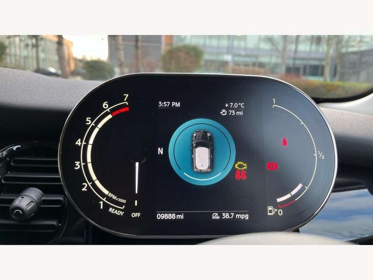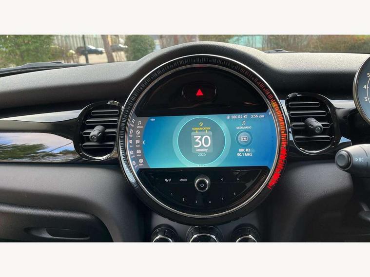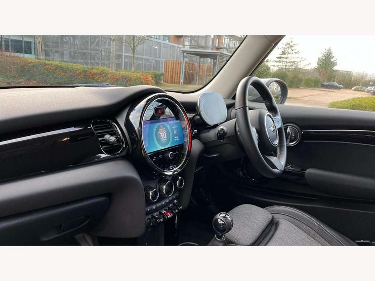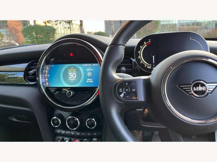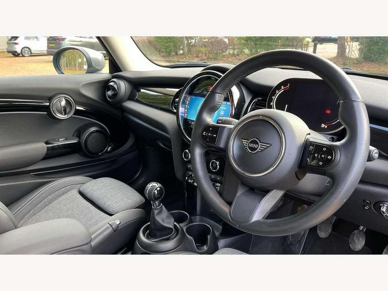Automatic start/stop function with brake energy recuperation, Compatible mobile phone bluetooth with audio streaming, Cruise control with brake assist, Electro-mechanical speed dependant steering assistance, Flexible car sharing preparation, Instrument cluster, MINI Driving Modes - centre toggle switch to control driving setting (sport, mid and green), Mini E-call, MINI TeleServices, On board computer, Service interval indicator, 6 Speed manual transmission including gear change indicator display, Double Vanos system, Fully variable valve control, High precision injection, Performance Control, 4 speakers in front door trims and underneath front seats, 8.8" touchscreen with LED ring, FM tuner and DAB digital radio, Automatic headlight activation switch, Bonnet scoop, Chrome fuel filler cap, Dynamic brake lights, Electric front windows, Heated rear window, Heated windscreen washer jets, LED headlight with closed ring and daytime driving lights, Metal door sill strips with Cooper S, Model logo Cooper S on right of tailgate, Radiator grille chrome border with honeycomb structure including S Badge, Rain sensor window wipers, Rear fog lights, Rear LED lights with union jack design, Rear window wiper, Side scuttle panel with integrated indicator, Sun/heat protection glass, Two central exhaust tailpipes with chrome finisher, White indicator lenses, 12V Accessory socket in centre console, 4 lashing eyes in luggage compartment, 60/40 split folding rear seat, Carbon black colour line - Knee roll and door armrest, Chrome interior highlights, Cupholders, Front and rear head restraints, Front and rear isofix with front passenger airbag deactivation, Glove compartment, Height and length steering column adjustment, Interior lighting with 12 different colours across the dashboard, underneath door bezel with illuminated laser-engraved design on central display, Leatherette gearshift lever and handbrake gaiters, LED reading lights, vanity mirror lights, front foot well light and spotlight on front seats, Manual air conditioning, Mechanical seat adjustment - forward/back & backrest for front seats and driver seat height adjust, Multifunction steering wheel, Passenger seat height adjuster, Satellite grey headlining including grab handles and clothes hooks, Sport leather steering wheel with speed limiter and audio/communication controls, Storage compartments in doors, Storage pocket on back of front seats, Sunvisors with vanity mirrors, Velour floor mats, 3 point seatbelts on all four seats, 6 Airbags - front, side, head and seat belt tensioners, Anti-lock braking system (ABS), DSC - Dynamic Stability Control, Front and rear disc brakes, Two tone horn, Tyre pressure monitoring system, Alarm system with tilt sensor, monitoring doors, bonnet interior and tailgate, Electronic vehicle immobiliser, Start/stop toggle with keyless go, Piano black interior trim, Tool kit, Tyre repair kit,