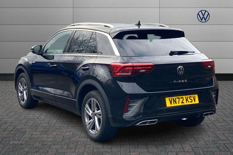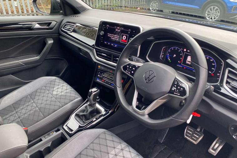 10.25" Digital cockpit pro, Bluetooth mobile phone interface, Driver alert system with fatigue detection, Driver tips and journey analysis, Emergency call service, Lane keeping system Lane Assist, Modified key software - reduce switch off time for key status change to Long no motion, Online services, Park assist including front and rear parking sensors, Service interval indicator, Tailgate/trunk lid release from outside, Think blue trainer driver tips and journey analysis, Warning sound and light for front seatbelts unfastened, Wireless app connect, Battery regeneration during braking, Start/stop function with battery regeneration, Diversity antenna for FM reception, Front and rear 6 speakers, Music playback - MP3, WMA and AAC files, Premium USB cable in choice of either Apple or Android smartphone compatibility, SD card slot, Simultaneous pairing of 2 compatible mobile devices, Title and cover art display, We Connect and We Connect Plus functionality, 3rd brake light, Auto dimming interior rear view mirror, Automatic hazard lights activation under emergency braking, Automatic headlight control with LED separate daytime running lights with coming/leaving home function, Extended roof spoiler, Exterior mirrors aspherical on driver side, convex on front passenger side, External USB type C socket and charging sockets, Front windscreen wiper with intermittent wipe and 4 position delay, Heated rear window, LED Plus headlamps, LED rear combination lamps, LED rear number plate lights, LED tail lamp rear comination lamps, Power windows with comfort operation and circuit breaker, R-Line design body coloured bumpers, Rain sensor, Rear exhaust tailpipe, Rear fog light on one side and reversing lights on both sides, Rear side wing doors, Rear wash/wipe with intermittent wipe setting, Remote electrically foldable door mirrors, puddle lights and reverse activated passenger's door mirror, 12V power socket in centre console, 3 rear head restraints, 3 seat bench in 2nd row, 4 load lashing points in luggage compartment, Air care climatronic air conditoning system with active combination filter and 2-zone temperature control, Black roof lining, Chrome plated radiator grille inserts, air vent surrounds and light switch surrounds, Door and side trim panel with leatherette insert, Drawer under drivers seat, Front + rear carpet mats, Front centre armrest, Front cupholders x 2, Front footwell illumination, Front reading light, Front scuff plates with R logo, Instrument lighting, white adjustable panel illumination, Interior ambient lighting and surround lighting, Interior light delay, Isofix child seat preparation, Leather gearshift handle, Load-through provision with cup holder when folded down ('Unsplit rear seat bench, split folding backrest, with centre armrest), Luggage compartment lighting, Single front passenger seat, Stainless steel pedals, Storage compartment in left and right luggage area, Storage compartment in rear doors, Storage compartments in driver and front passenger doors, Sunvisors with illuminated vanity mirrors, Variable boot floor, height adjustable and removable, Driver assistance pack without proactive passenger protection - T-Roc, 3 point height adj front seatbelts + pretensioners, 3 point seatbelts in outer rear with ECE label, ABS, Child locks on rear doors, Driver and front passenger airbag with front passenger airbag deactivation, Driver and front passenger safety-optimised head restraints, Drivers seatbelt reminder, Electronic parking brake, Electronic Stability Control (ESC) inc EDL (Electronic Differential Lock) and ASR (Traction Control), Front and rear passengers curtain airbag system including front side airbags, Front assist with city emergency braking and pedestrian monitoring, Front seat side impact airbags, Hill start assist, Predictive pedestrian protection, Rear disc brakes, Single tone horn, Tyre pressure loss indicator, Volkswagen roadside assistance, Alarm with interior protection, Anti-theft alarm system with interior monitoring, backup horn, and towing protection, Remote central locking with SAFELOCK, radio remote control with 2 remote control folding keys, Trims for alloy wheels,