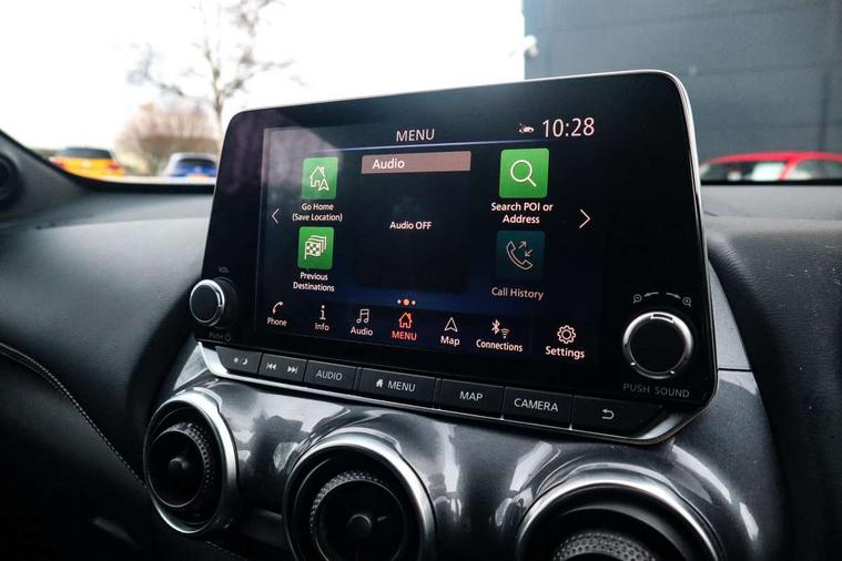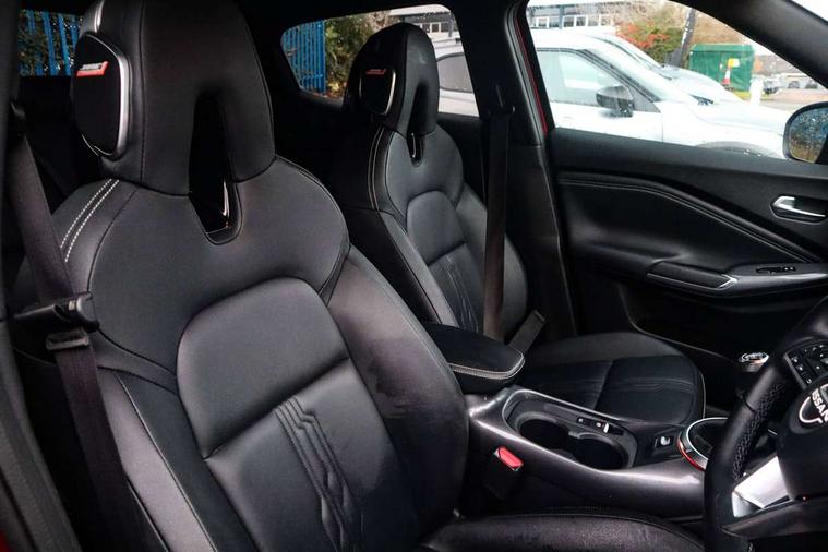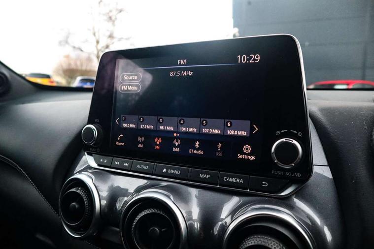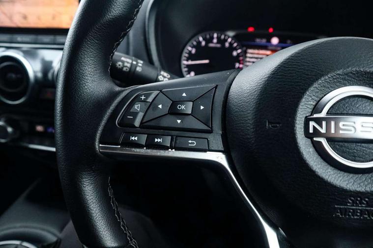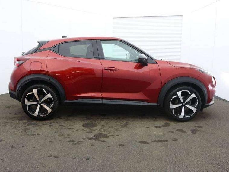 7" full colour TFT screen combimeter, Apple CarPlay and Google Android auto, Drive modes select (Eco, normal and sport), Emergency and breakdown call, Front parking sensor, Idle start/stop system, Intelligent lane intervention, Lane departure warning system, Nissan connect 8" touch screen entertainment system, Nissan connect nav with TomTom traffic, Nissan connect services and Wifi connection, Outside temperature sensor, Power Steering, Rear parking sensor, Traffic sign recognition, Trip computer, Voice recognition, Gasoline particulate filter, 10 Bose speakers 6 speakers and 2 headrest speakers for driver/passenger seats, Bluetooth system, USB, Aux-in and 12V socket, Bose personal sound stage control, DAB Digital radio, Rear console USB port, Auto dimming interior rear view mirror, Auto headlights, Automatic hazard signal with emergency stop signal, Body colour bumpers, Body colour door handles, Electrically adjustable door mirrors with integrated indicators, Follow me home headlights, Front and rear electric window with one touch driver window, Heated and auto folding door mirrors, High beam assist, LED daytime running lights, LED front fog lights, LED headlamps, LED rear fog lamp, LED rear lamps, Rain sensor windscreen wipers, Rear privacy glass, Rear side wing doors, Rear wiper, Thermaclear heated windscreen, Three blink turn signal, 3 height adjustable rear headrests, 3 seat bench in 2nd row, 60/40 split folding rear seat, Automatic climate control, Card holder on driver sunvisor, Door ambient lighting, Driver and passenger sliding and reclining seats, Driver seat back pocket, Driver side rear coat hanger, Driver/passenger sunvisors and vanity mirrors, Front and rear cabin lights, Front armrest, Front door pockets with bottle holders, Front head restraints, Front passenger isofix child seat anchorage point, Front/rear passenger grab handles, Gear console ambient circle lighting, Grey synthetic leather kneepad, Heated front seats, Height adjustable driver's seat, Height adjustable passenger seat, Internal chrome door handles, Leather gearshift knob, Leather steering wheel, Luggage board, Luggage space lighting, Monoform sporty seats, Multifunction steering wheel, Passenger seat back pocket, Rear door bottle holders, Single front passenger seat, Synthetic leather upholstery, Telescopic steering wheel adjustment, Two cupholders in front centre console, Two rear isofix child seat anchorage points with top tether, Welcome light and console tray ambient lighting, Advanced safety shield pack - Juke, ABS with EBD and brake assist, Active ride control, Active Trace Control, Driver and passenger airbags, Driver and passenger side airbags, Electric handbrake with auto hold function, Electronic Stability Programme (ESP), Front and rear curtain airbags, Height adjustable seatbelts, Hill start assist, Intelligent emergency braking with pedestrian and cyclist recognition, Rear door child safety locks, Seatbelt reminder for driver/front passenger and rear seats, Single tone horn, Three 3 point rear seatbelts, Traction control, Tyre pressure monitoring system, VDC Dynamic Vehicle Control, Ventilated rear brake discs, Alarm, Immobiliser, Intelligent key and start push button with walk away lock and approach unlock functions, Remote central locking,