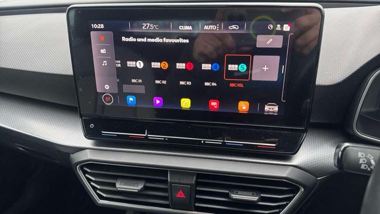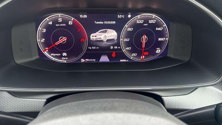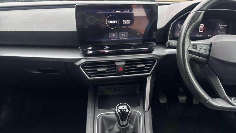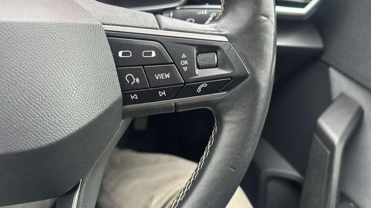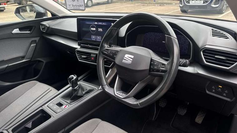 Cruise control with speed limiter, Digital cockpit, Front assist with forward collision warning braking reaction to vehicles, pedestrians and cyclists, Full link smartphone integration with Mirror Link, wireless Apple CarPlay and wired Google Android Auto, Lane keeping system, Lockable tailgate, Park assist (inc front/rear parking sensors), Power assisted speed sensitive electro-mechanical steering, RPM, trip computer, outside temp gauge, instrument light brightness, low fuel warning light, lights on reminder, gearshift indicator, Service interval indicator, Start/stop system with regenerative braking, Standard suspension, XDS electronic differential lock and dynamic traction support, Auxiliary input socket, Body colour door handles, Body coloured bumpers, Body coloured exterior mirrors with integrated LED indicators, Dark tinted rear windows, Electric front/rear windows, Electrically adjustable and heated door mirrors, LED front fog lamps with cornering function, LED headlights and LED tail lights, LED rear fog lamp, Manual dimming rear view mirror, Rear wash/wipe, Separate daytime running light with automatic headlight control, 12v power point in centre console, 60/40 split rear bench seat, Air conditioning, Cloth upholstery, Driver seat lumbar adjustment, Driver/passenger manual seat height adjustment, Dust/pollen filter, Folding boot cover, Front and rear height adjustable headrests, Front and rear reading lights X 4, Front seatback storage pockets, Height/reach adjust steering wheel, Interior lighting with LED lighting in sunvisor, glovebox and rear headlining, ISOFIX points in outer rear seats with top tether anchorage points, Leather flat bottomed, perforated steering wheel and leather gearstick, Luggage tie-down hooks, Sunvisors with covered illuminated mirror, Tool kit, Media system plus with navigation - Leon SE, 3 point seatbelts on all rear seats, ABS, Brake control system - ESC and brake booster, Child proof door locks, Driver and front passenger airbags with front passenger airbag de-activation, front side and curtain airbags, Electronic parking brake, Extended safety system - seat belt tensioner, window closure and hazard lights, Hill hold control, Rear disc brakes, Seat belt reminder for front and rear seats, Tiredness recognition system, driver alert system, Tyre pressure monitoring system, Anti theft alarm system with interior monitoring in cab, backup horn and towing protection, KESSY Go (Keyless start), Locking wheel bolts, Chrome interior detailing, 17" Dynamic tri-spoke alloy wheels with 91W tyres,