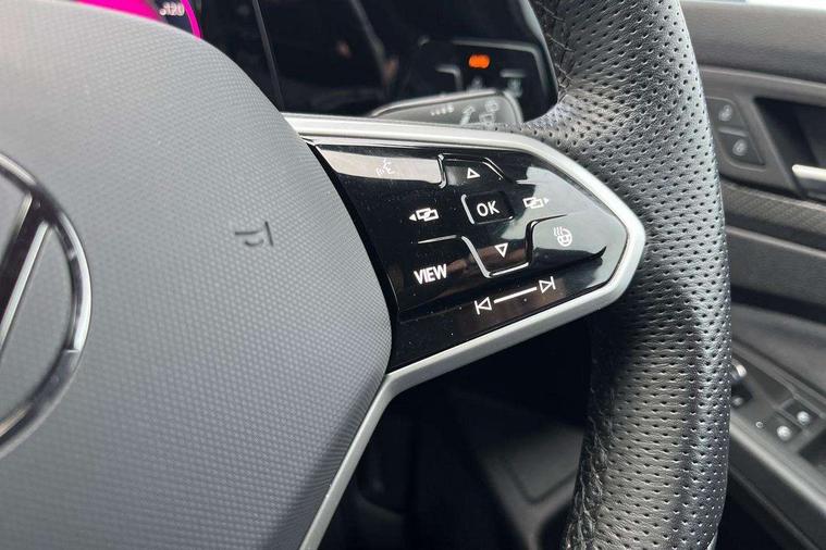 Adaptive cruise control (ACC) with speed limiter and front assist (reacting to vehicles pedestrians and cyclists), Car2X communication, Digital cockpit pro - 10.25" high resolution TFT dash display screen with customizable menus and information, Driver alert system, Dynamic road sign display, eCall - Emergency call service for SOS calls to emergency response, Lane assist, Mobile phone interface with wireless inductive charging function, Multifunction camera for distance control, PAS, Speedo, rev counter, electronic odometer, trip, service interval display, exterior temperature and fuel gauge, Start/Stop function, USB-C ports in the front and rear centre console with increased charging performance, Warning buzzer and light for front seatbelts unfastened, Wireless app connect, Petrol Particulate Filter, XDS electronic differential lock for improved traction and handling, Premium USB cable in choice of either Apple or Android smartphone compatibility, Ambient lighting, exterior illuminated styling elements at the sides, Auto dimming rear view mirror, Automatic headlamp activation with Coming home and Leaving home feature, Automatic headlights, Body colour door handles, Body colour door mirrors with integrated indicators, Body colour rear roof spoiler, Electrically heated and adjustable door mirrors with memory feature, Front and rear electric windows, Heat insulating glass windscreen, Heated rear windscreen, High level 3rd brake light, Highway light, LED License plate illumination, R Line body coloured bumpers, Rain sensor, Rear fog light on one side and reversing lights on both sides, Rear lights incorporating LED technology, Rear side wing doors, Rear tinted glass 65% light absorbing from B pillar backwards, Rear windscreen washer and wiper with interval delay, Welcome light, 12V socket in front centre console, 12V socket in luggage compartment, 3 rear head restraints, 3 seat bench in 2nd row, Ambient lighting - Customisable 30 colour ambient lighting, Black roof lining, Brushed stainless steel pedals, Chrome plated surround to electric mirror button, window switch and air vent surrounds, Drivers and front passengers sun visors with vanity mirrors, Front + rear carpet mats, Front centre armrest with storage compartment, Front cupholders x 2, Front passenger seat, Front reading lights x 2 incorporating LED technology, Front seat lumbar support adjuster, Front sports seats, Glovebox, Height adjustable front seats, Height and reach adjustable steering wheel, Isofix child seat preparation for 2 rear child seats and front passenger seat, Luggage compartment lighting, R Line door and side trim panel, R Line front seats integrated head restraints, R-Line leather wrapped multi function sports heated steering wheel, Removable luggage compartment cover, Sardegna cloth upholstery with front and outer rear seats Art Velour inner sides of bolsters, Split folding backrest with centre armrest and unsplit rear seat bench, Titanium black instrument panel, Woven fabric storage compartments in front and rear doors, 3 point height adj front seatbelts + pretensioners, 3 rear three point seatbelts, ABS, Child locks on rear doors, Driver and front passenger airbag with front passenger airbag deactivation, Drivers and front passengers safety optimised head restraints, Electronic parking brake with auto hold, ESC (Electronic Stability Control), Extended pedestrian protection measures, Front and rear passengers curtain airbag system including front side airbags, Front centre airbag, Front disc brakes, Front side airbags with curtain airbags, Rear disc brakes, Two tone horn, Tyre pressure monitoring system, Alarm with interior protection and deactivation via infotainment system, Electronic engine immobiliser, Carbon grey decorative inserts in dash and front door trim panels, High gloss black centre console,