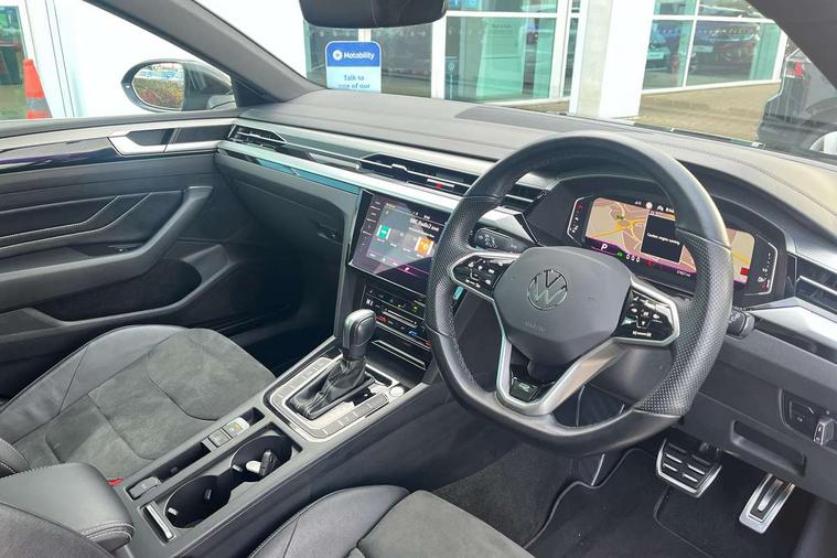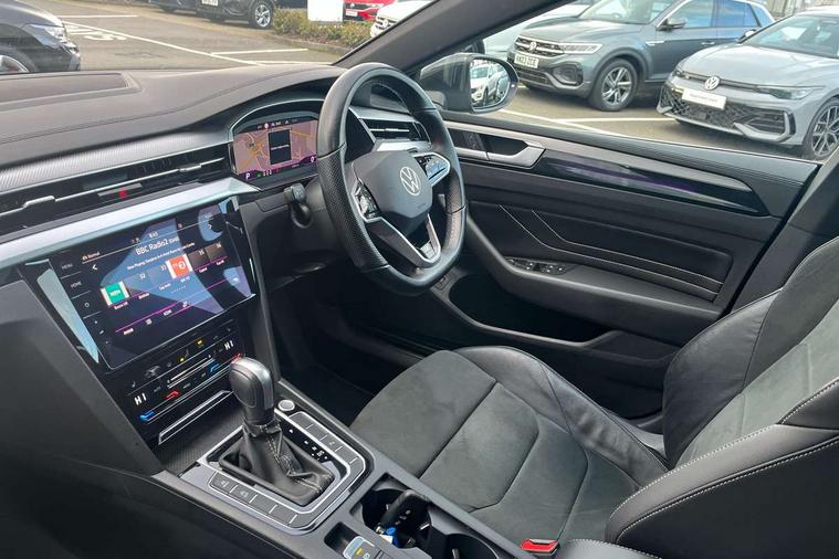 Adaptive cruise control (ACC) with speed limiter, front assist (reacting vehicles pedestrian and cyclists) and follow to stop, App connect including wireless Apple CarPlay, Camera for warning system, Digital cockpit with 10.25" high resolution TFT display screen with customisable menus and information, Driver alert system with fatigue detection, Driver profile selection including ECO function, Dynamic road sign display, eCall - Emergency call service for SOS calls to emergency response, Emergency assist, Hands free boot opening, Press and drive key, Progressive steering, Speedo and rev counter, electronic odometer, trip, service interval display and exterior temperature gauge, Tailgate, Travel assist - Lane keeping assist and traffic jam assist, Voice activation for telephone and navigation, Start/stop function with battery regeneration, External, USB type C data sockets with increased charging performance front (45 Watt), Premium USB cable in choice of either Apple or Android smartphone compatibility, Auto dimming interior rear view mirror, Automatic headlights, Body colour door handles, Body colour side skirt, Body coloured top and matt black lower door mirrors with integrated indicators, Chrome plated radiator grille inserts and light switch surrounds, Chrome side window surrounds, Dynamic headlight range control, Electric folding door mirror, adjustable, heated with front passenger exterior mirror lowering function, Front and rear electric windows, Front and rear stainless steel door sill protection, Front windscreen washers and wipers with 4x interval delay, Heat insulating side and rear windows, Heated rear windscreen, Heated windscreen washer jets, LED 3rd brake light, LED rear combination lamp with dynamic indicators, LED rear number plate lights, Panoramic sunroof with tilting and sliding including integrated roller blind, R Line design body coloured bumpers, Rain sensor, Rear fog lamp on one side and reversing lamp on both sides, Rear side wing doors, Rear tinted glass from B pillar backwards, approx 65% tinted, Rear windscreen washer and wiper with interval delay, Roof spoiler, Tailpipes behind rear bumper, 12V socket in front centre console, 12V socket on rear of front centre armrest, 3 rear head restraints, 3 seat bench in 2nd row, 30 colours options interior ambient lighting, 60:40 split folding rear seat backrests with centre armrest, Air care climatronic 3 Zone electronic air conditioning with automatic air recirculation, Black roof lining, Chrome trim on upper and lower air vents extending across cockpit, Driver and front passenger sunvisor with vanity mirror, Front + rear carpet mats, Front cupholders x 2, Front footwell illumination, Front sports comfort seats, Glovebox, Heated front seats, Height/reach adjust steering wheel, Isofix child seat preparation easy fit for two outer rear seats, Luggage compartment lighting, Removable luggage compartment cover, Single front passenger seat, Split folding front seat backrest with front centre armrest, Stainless steel pedals, Two LED front reading light, 3 rear three point seatbelts, ABS+EBD+Brake assist, Child locks on rear doors, Driver airbag and front passenger airbags with deactivation switch including driver knee airbags, Electronic parking brake, Electronic stability control (ESC) and Electromechanical brake booster, Front disc brakes, Front side airbags with curtain airbags, Hill start assist, Pro active occupant protection to detect critical situations with elevated accident potential from the front, Rear disc brakes, Three point height adjust front seatbelts + pretensioners, Two tone horn, Tyre pressure loss indicator, Warning buzzer for seatbelts if unfastened, Warning triangle, Alarm with interior protection with deactivation via infotainment system, Electronic engine immobiliser, Keyless entry system including start/stop button on centre console, Remote central locking, Aluminium decorative inserts, Chrome trim on lower doors in front and rear, Leatherette insert on door and side trim panel in foam film, Piano black decorative inserts in centre console,
