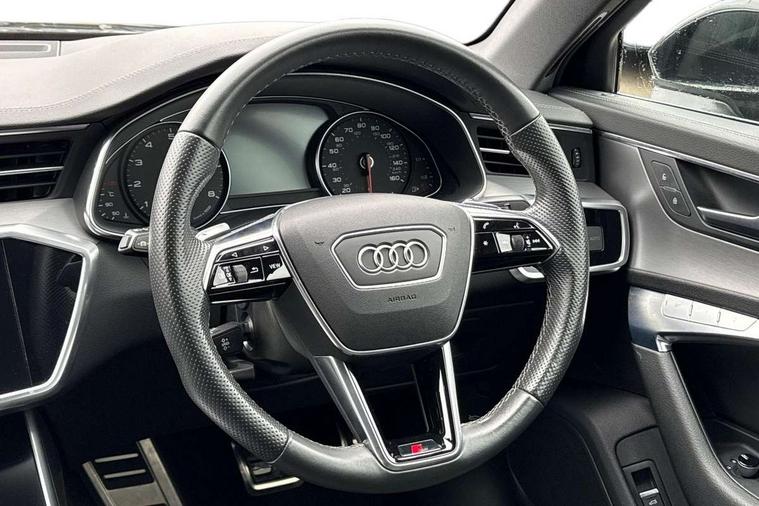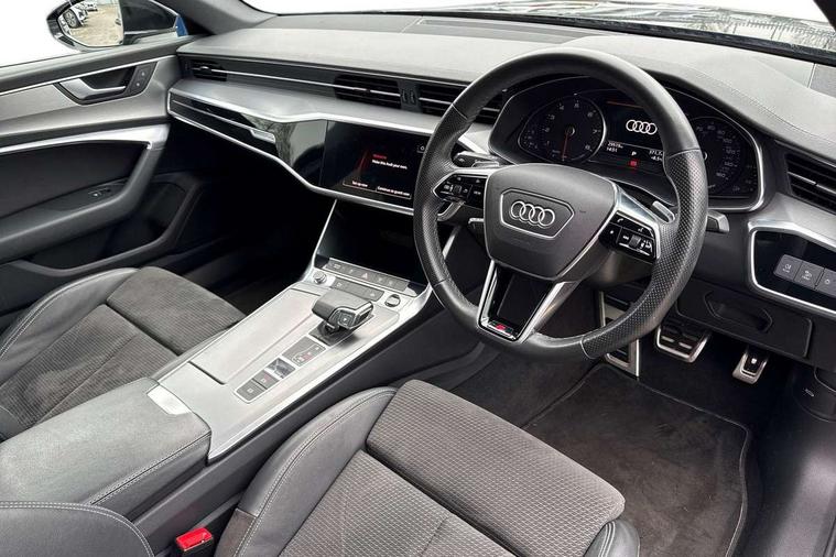 7" high resolution colour driver information display system, Audi connect safety and service (e-call), Audi drive select, Audi parking system plus - acoustic and visual park assist system for front and rear, Audi smartphone interface, Automatic start/stop system with coasting functionality, Bluetooth interface, Electric boot lid release, Lane departure warning system, MMI navigation with MMI touch + twin touch screens 8.8" and 8.6" with haptic and acoustic feedback, Progressive steering, Rear view camera, Service interval indicator, Voice control system, Sports suspension, Audi music interface, Audi sound system, Auxiliary input socket, DAB Digital radio, USB connection, Body coloured door mirrors, Electric front/rear windows, Frameless auto dimming interior rear view mirror, Headlight washers, Heat insulating darkened glass in side and rear windows, Heat insulating glass in windshield, LED rear lights, LED signature front daytime running light, Matrix LED headlights with dynamic rear indicators, Matt black side air intake grille with inlay in matt aluminium, Privacy glass, Radiator grille in titanium black matt, single frame in chrome and horizontal struts in matt aluminium silver, Rain and light sensors, S line air inlet design with inlay in matt aluminium, S Line badge on front fender, S Line front and rear bumpers, S line rear diffuser and grille in matt black with matt aluminium tailpipes, S Line side skirts, Signature rear LED light design, 2 zone deluxe electronic climate control, 4 way electric lumbar support for driver and front passenger, 40/20/40 split folding 3 rear seat bench in 3 parts with rear centre armrest, Black cloth headlining, Electrically adjustable front seats with driver memory, Front centre armrest, Front head restraints, Heated front seats, Height/reach adjust steering wheel, Illuminated door sill trims with S logo, Illuminated sun visors with vanity mirrors, ISOFIX child seat mounting and Top Tether with front passenger airbag deactivation, Leather gear knob, Rear headrests, S line front and rear floor mats with contrast stitching, Stainless steel pedals and foot rest, Tool kit and car jack, LED Interior Ambient Lighting Pack - A6, Non smoking pack - A6, 3 point seatbelts on all seats, Airbags - Front side, front and rear including head, Audi pre-sense front, Black seatbelts, EBD - Electronic brakeforce distribution, Electromechanical parking brake, Electronic Stability Control (ESC) including ABS, ASR and EDL, Extended pedestrian protection measures, Seatbelt monitoring, Tyre pressure warning light, Warning triangle and first aid kit, Anti theft alarm with tow away protection, Anti-theft wheel bolts and wheel loosening detection, Immobiliser, Keyless Go, Remote central locking, Matt brushed aluminium dark inlays,