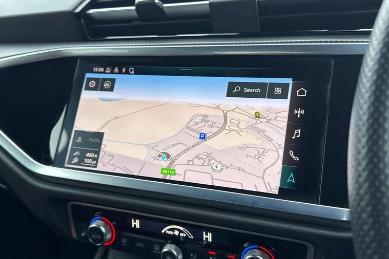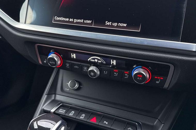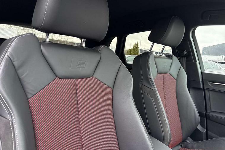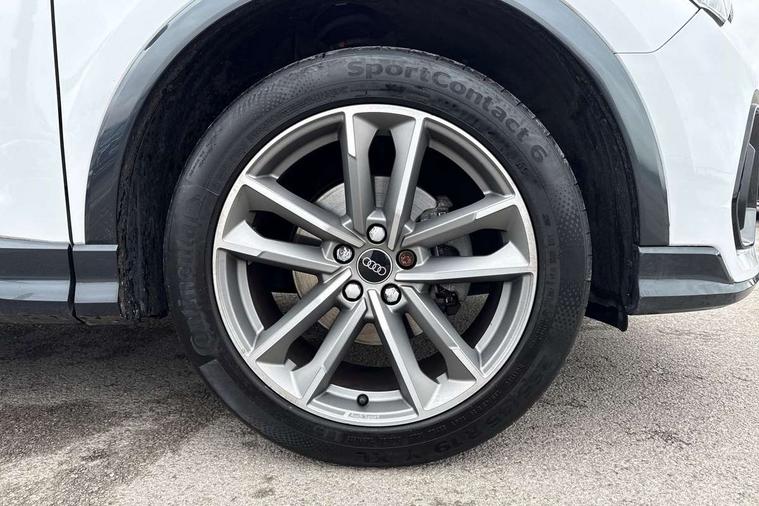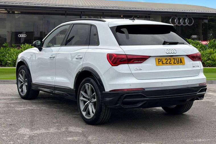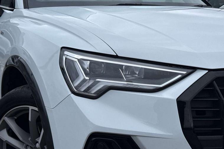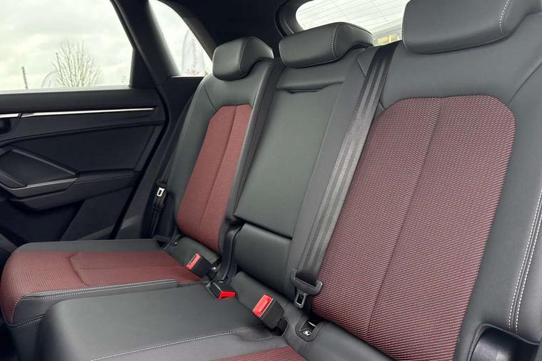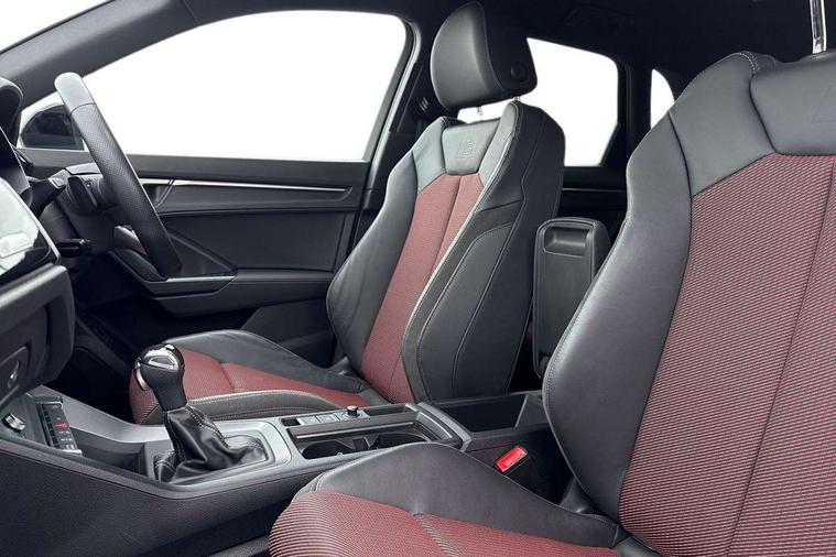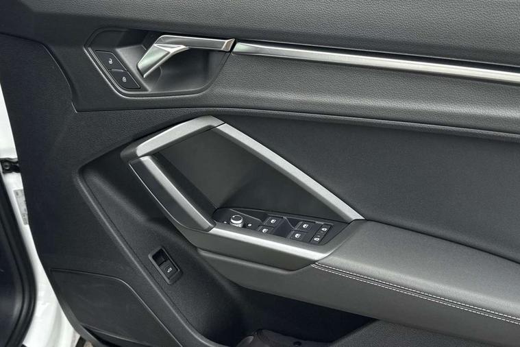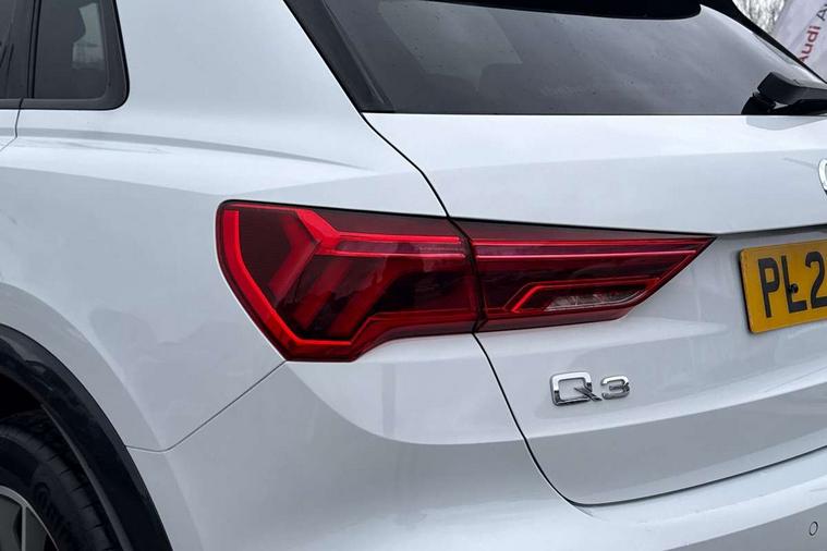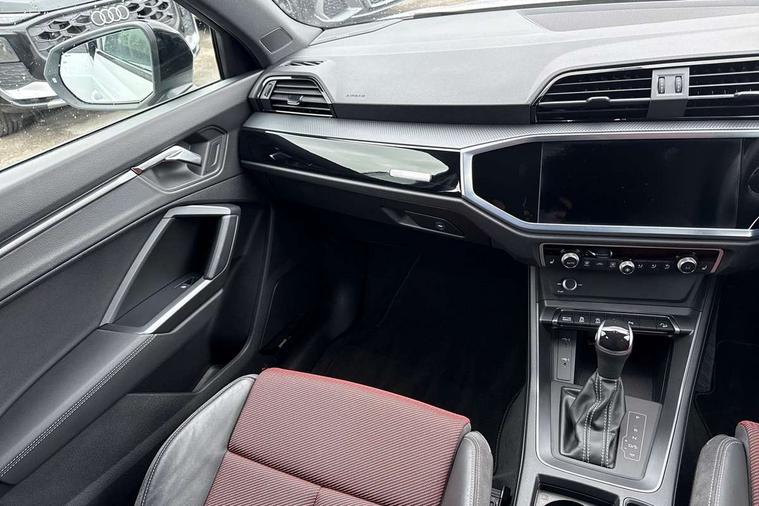 Amazon alexa Integration, Audi connect safety and service (e-call), Audi drive select, Audi lane departure warning, Audi Virtual Cockpit - 10.25" display, Bluetooth interface, Camera based traffic sign recognition, MMI Navigation Plus with high resolution 10.1 inch touchscreen colour display, Power operated tailgate, Progressive steering, Service interval indicator, Smartphone interface includes wireless Apple carplay/Android Auto, Start stop system with recuperation, Voice control system with natural language interaction, 48V Mild hybrid technology, Sports suspension, 2 USB-C ports with charge and data functions, 6 passive loudspeakers, DAB digital radio module, Acoustic windscreen, Auto dimming frameless rear view mirror, Black roof rails, Electrically folding, adjustable and heated door mirrors with integrated LED side indicators and kerb view function for passenger side, Front and rear electric windows, Front fog lights, Grille vertical bars in aluminium silver/Matt, High gloss black finish B and C pillars, LED headlights with LED daytime running lights, LED rear lights, LED third brake light, Privacy glass dark tinted rear and rear-side windows (from B-pillar backwards), Rain and light sensors, Rear diffuser strip in matt titanium black, Rear side wing doors, Rear wiper, S line bumpers in contrasting Manhattan grey, Variable front intermittent wipers, 12V socket in rear centre console, 3 seat bench in 2nd row, 40:20:40 folding with manual adjustment for 60:40 forwards/backwards position and backrest angle, Adjustable rear seat bench/backrest with centre armrest and cupholder, Black cloth headlining, Dual zone electronic climate control, Front and rear black floor mats with contrast stitching in rock grey, Front and rear headrests, Front and rear roof module including reading lights, Front centre armrest, Glove compartment lighting, Height and reach adjustable steering wheel, Illuminated door sill trims with S logo, ISOFIX child seat mounting for front passenger with airbag deactivation and outer rear seat including top tether attachment point for outer rear seats, Luggage compartment light, Manual front seats with height adjustment, Perforated leather gearknob, Single front passenger seat, Stainless steel luggage compartment sill finisher, Stainless steel pedals, Black styling pack - Q3, Non smoking pack - Q3, 3x3 point rear seatbelts, 6 airbags - Driver, front passenger, curtain and side windows, Audi pre-sense front with pedestrain and cyclist recognition, Electromechanical parking brake, Electronic stabilisation control including ABS, ASR and EDL, Front seatbelt reminder, Hill descent control, Hill hold assist, Manual child lock in rear doors, Pre sense basic, Seatbelt monitoring, Tyre pressure warning, Warning triangle and first aid kit, Anti theft alarm, Anti theft wheel bolts, Immobiliser, Remote central locking, Detail dashboard around MMI touch colour display in glass look, black with surround in aluminium look, Leatherette door armrest, Piano black inlay, Tool kit, Tyre repair kit,
