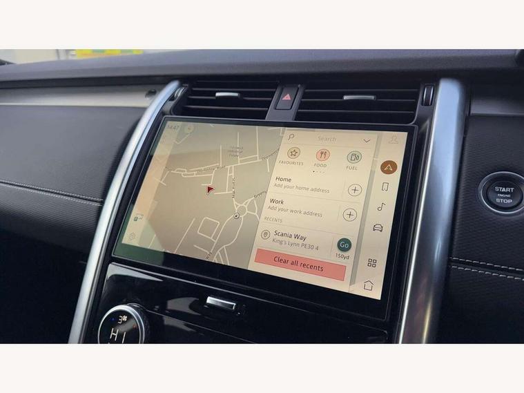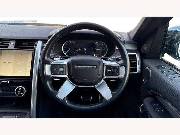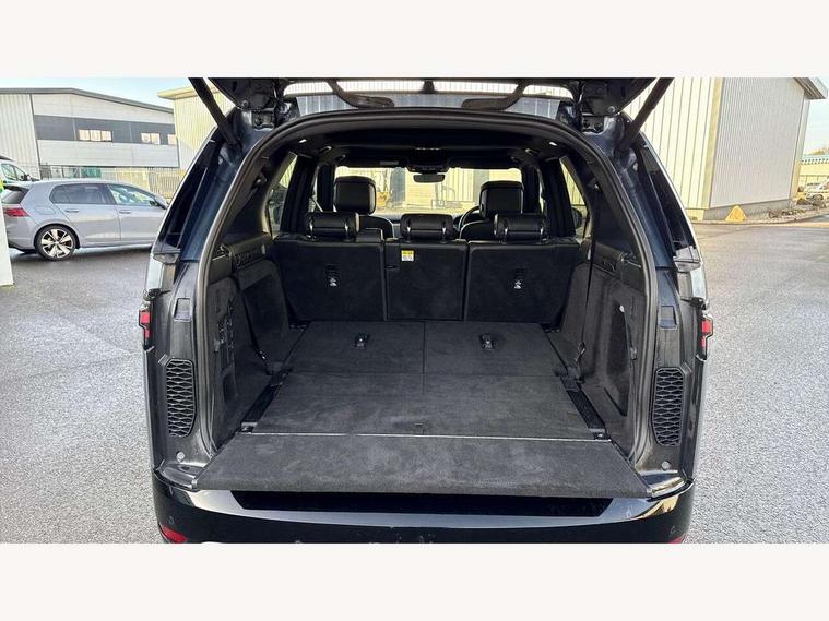 11.4" touchscreen, 3D surround camera, Adaptive cruise control, Android Auto, Apple car play, Blind spot assist, Driver condition monitor, Electric power assisted steering (EPAS), Emergency services call system, Front and rear parking aid, Lane keep assist, Power inner tailgate, Push button start, Rear collision monitor, Rear traffic monitor, Remote, Remote boot release, Service interval indicator, Speed proportional steering, Sportshift selector, Stop/start system, Traffic sign recognition with adaptive speed limiter, Trip computer, Wade Sensing, Adaptive dynamics, Dynamic stability control, Electronic air suspension, Front axle open differential, Digital Audio Broadcast radio-DAB, Dynamic volume control, Meridian surround sound system - 14 speaker + subwoofer, 18 channel amplifier, 700W, Pivi pro connected, USB/aux input socket, Acoustic laminated windscreen, Animated directional indicators, Auto dimming interior rear view mirror, Automatic headlight levelling, Automatic headlights, Body colour bumpers, Body colour door handles, Centre high mounted stop light, D300 badge, Electric heated/power fold memory door mirrors with approach lights and auto dimming driver side, Electric windows with one touch open/close and anti-trap, Heated rear window, Heated windscreen, LED darkend tail lights, Matrix LED headlights with signature DRL, Metal treadplates with R-Dynamic branding, Narvik black Discovery script, Privacy glass, Puddle lights, Rain sensing windscreen wipers, Rear fog lights, Rear side wing doors, Rear wash/wipe, Trailer stability assist, Variable intermittent wiper, 12V power sockets, 12V USB charging socket in loadspace, 2 seat bench in 3rd row, 3 seat bench in 2nd row, Central hinged twin lidded storage, Ebony morzine headlining, Electric adjustable steering column, First and second row door bins, Footwell lights, Front and rear 12V with front USB, Front passenger seat isofix location point, In-facia storage, Isofix child seat preparation for front passenger seat, Loadspace cover, Loadspace Hook, Loadspace light, Lockable glovebox, Lower centre console storage, Luggage tie downs in loadspace, Multi function steering wheel, Overhead lighting console, Premium cabin lighting, Premium carpet mats, Rear ISOFIX, Shopping bag hook, Single front passenger seat, Storage glovebox, Sunvisors with illuminated vanity mirrors, Third row storage, Twin front cupholders with cover, USB with 12V socket in centre console, Online pack with data plan - Discovery, R-Dynamic black exterior pack - Discovery, 3x3 point rear seatbelts, Anti-lock braking system (ABS), Brake pre-fill technology, Cornering brake control, Curtain airbags, Customer configurable autolock, Driver and passenger airbags, EBD - Electronic brakeforce distribution, Electronic traction control, Emergency brake assist, Emergency braking, ESP, Front side airbags, Gradient acceleration control, Hill descent control, Hill launch assist, Power operated child locks, Rear airbags, Roll stability control, Seat belt reminder, Torque vectoring brake, Tyre pressure monitoring system, Immobiliser, Intrusion sensor, Keyless entry, Locking wheel nuts, Remote central locking, All terrain tyres,
