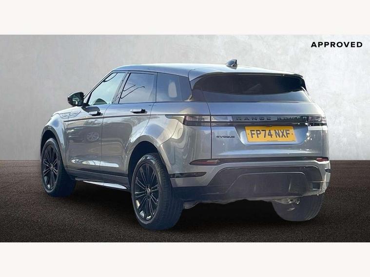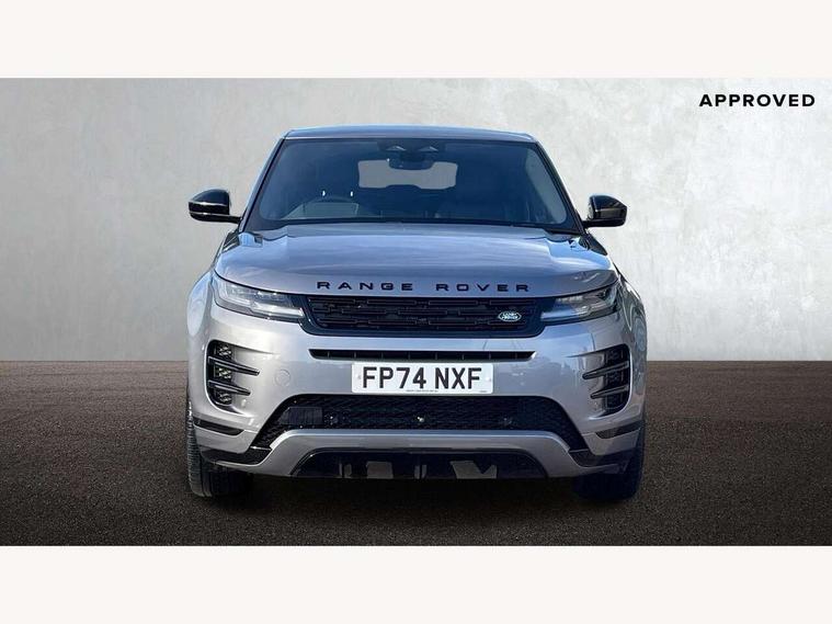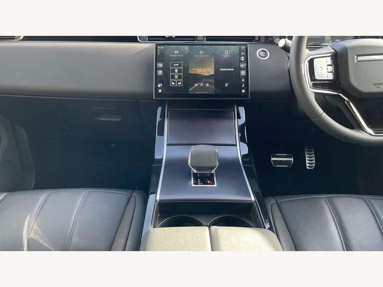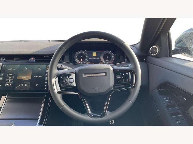 11.4" touch screen, 3D 360 degree surround camera with wade sensing, Adaptive cruise control, Android Auto, Apple car play, Blind spot assist, Bluetooth connectivity, Brake pad wear indicator warning light, Driver condition monitor, eCall emergency system, Eco mode, Electronic power assisted steering (EPAS), Front and rear parking aid, InControl remote, Interactive driver display, Land Rover InControl apps, Lane keep assist, Pivi pro connected includes diamond pivi variant, smart settings, connected navigation pro, nuance speech licence, Powered tailgate/boot lid, Rear collision monitor, Rear traffic monitor, Tailgate, Traffic sign recognition with adaptive speed limiter, Voice control system, Wireless device charging, All terrain progress control, Diesel exhaust fluid (DEF) large tank, Efficient Driveline, Large fuel tank, Terrain Response 2, Digital Audio Broadcast radio-DAB, Steering wheel mounted controls, Acoustic laminated windscreen, Auto headlights, Auto high beam assist, Automatic headlight levelling, Electric windows with one touch open/close and anti trap, Flush deployable exterior door handles, Front and rear recovery eyes, Heated rear window with timer, Heated washer jets, Heated windscreen, LED headlights with signature DRL and LED tail Lights, Power fold, auto-dimming, heated door mirrors with approach lights and auto dimming driver side, Rain sensing windscreen wipers, Rear animated directional indicators, Rear fog lights, Rear side wing doors, Rear wiper, Side repeater indicators in mirror, Tailgate spoiler, Third brake light, Winter wiper park position, 12 way driver memory and 10 way passenger electric front seats with 2 way manual headrest + 4 way lumbar support, 40:20:40 split folding rear seats with centre headrest and armrest, Ambient interior lighting, Bright metal pedals, Carpet mats, Chrome tread plates with range rover branding Includes stainless steel loadspace scuff plate with etched graphic, Customer configurable single point entry, Front and rear cupholders, Heated front seats, Heated steering wheel, Isofix system on outer rear seats, Manually adjustable steering column, Overhead lighting console, Overhead stowage for sunglasses, Passive front head restraints, Rear air vents, Rear head restraints, Satin chrome gearshift paddles, SE Grained leather upholstery, Single passenger seat, Standard steering wheel with Moonlight Bezel, Sunvisors with illuminated vanity mirrors, Twin sliding front centre armrest, Power socket pack 2 - Evoque, 3 rear 3 point seatbelts, Anti-lock braking system (ABS), Brake hold function, Customer configurable autolock, DSC - Dynamic Stability Control, Electronic brake force distribution, Electronic parking brake, Electronic traction control, Emergency braking, Front and rear seatbelt reminder, Hill descent control, Hill launch assist, Low traction launch, Occupant protection assist, Passenger seat occupant detector, Power operated child locks, Roll stability control, Six airbags - Driver and passenger airbags/driver knee airbag/front side airbag and curtain airbags, Torque vectoring brake, Tyre pressure monitoring system, Alarm, Immobiliser, Intrusion sensor, Keyless entry, Locking wheel nuts, All season tyres,