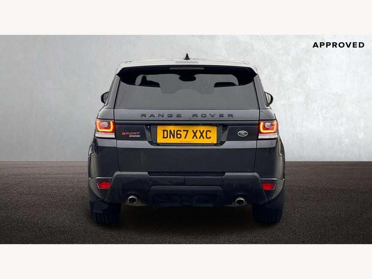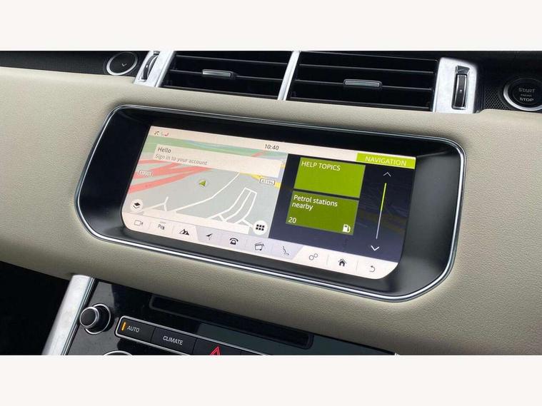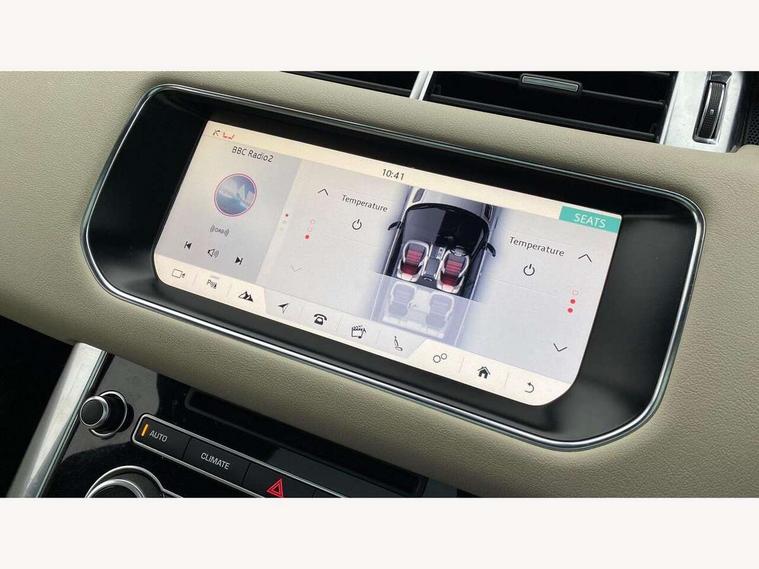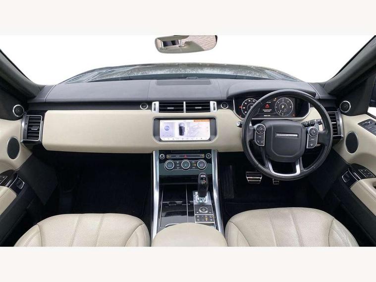 Bluetooth telephone connection, Dynamic response, Front parking aid with visual display, Gesture tailgate, HDD Premium navigation including voice control, TMC with touch screen and media storage, InControl secure, Mist sensor, Push button starter, Rear park distance control, Speed sensitive power steering, TFT Virtual Instrument Panel, Traffic sign recognition, Trip computer, Adaptive dynamics, All terrain progress control, Diesel particulate filter, Electronic air suspension, Terrain Response 2 Auto, Terrain Response 2 with dynamic program, Twin speed transfer box, Bluetooth audio streaming, DAB Digital radio, InControl protect, USB/aux input socket, Adaptive brake lights, Auto dimming rear view mirror, Daytime running lights, Door/quarter lights in toughened plate glass, Electric front/rear windows/one touch operation, Electric heated, adjustable, folding door mirrors with memory + approach lamp, Follow me home headlights, Front fog lights, Gloss black exterior trim, Headlight washers, Heated rear window, Heated washer jets, Heated windscreen, Illuminated aluminium treadplates with Range Rover lettering, Laminated front side windows, Laminated windscreen, LED rear lamps, Rain sensor windscreen wipers, Rear wash/wipe, Remote window closing, Trailer stability assist, Twin bright tailpipes, 2 way active front head restraints, 2 way rear head restraints, Auto air recirculation, Centre armrest with cubby box, Climate control memory, Driver's footrest, Front and rear cupholders, Front door storage bin, Front map lights, Front seat back map pockets, Front stowage pocket, Front/rear passenger grab handles, Glovebox, Isofix child seat preparation, Luggage compartment lighting, Multifunction steering wheel, Oxford perforated leather, Pollen filter, Premium Noble Plated Paddle Shift, Reach/rake electric adjustable steering column + entry/exit tilt away, Rear centre armrest, Roller blind loadspace cover, Sports pedals, Three 12V accessory power outlets, InControl connect Pack - Range Rover Sport, 3 point seatbelts on all seats, ABS + EBD + EBA, Auto lock system when vehicle in motion, Auto locking differential, Autonomous emergency braking, Cornering brake control (CBC), Curtain airbags, DSC - Dynamic Stability Control, Dual stage driver/passenger airbags, Electric child locks, Electronic parking brake, Electronic traction control, Front seatbelt pretensioners, Front side airbags, Height adjustable front seatbelts, Hill descent control, Low traction launch, Roll stability control, Seatbelt warning, Torque vectoring brake, Tyre pressure monitoring system, Keyless entry, Locking wheel nuts, Perimetric and volumetric anti theft alarm, Remote locking,