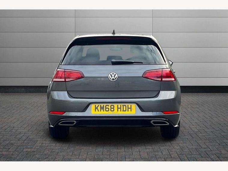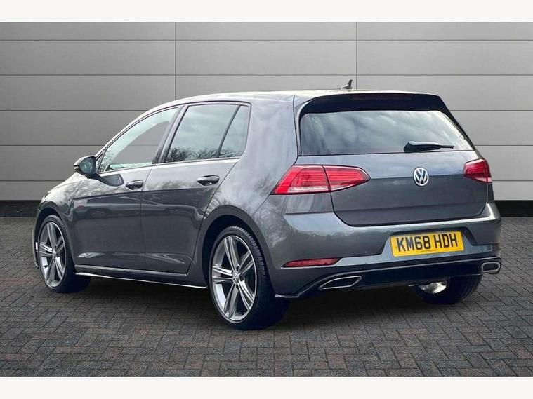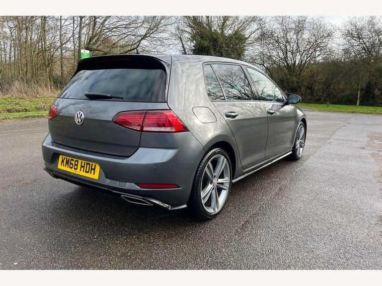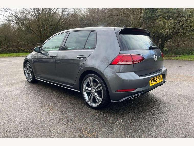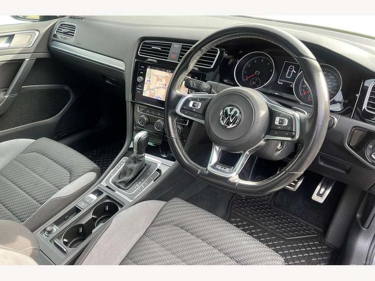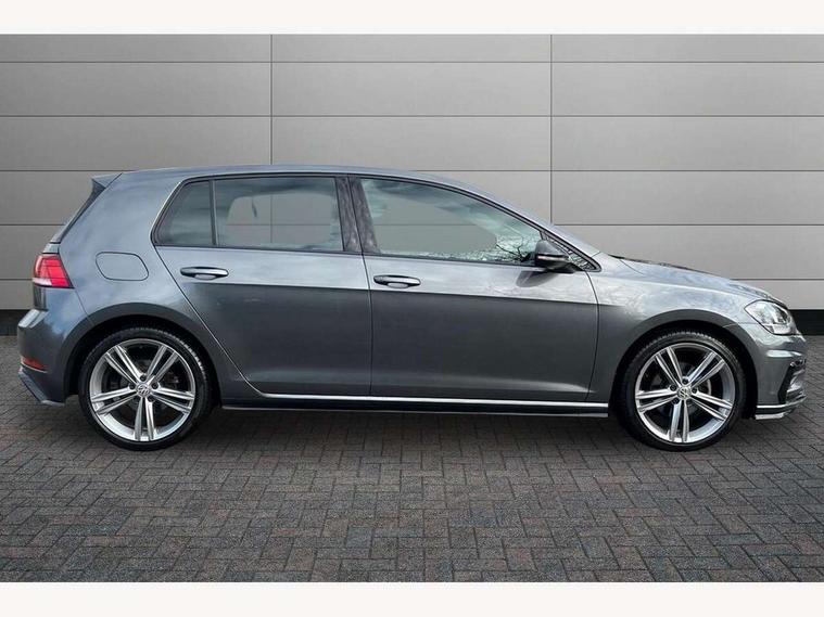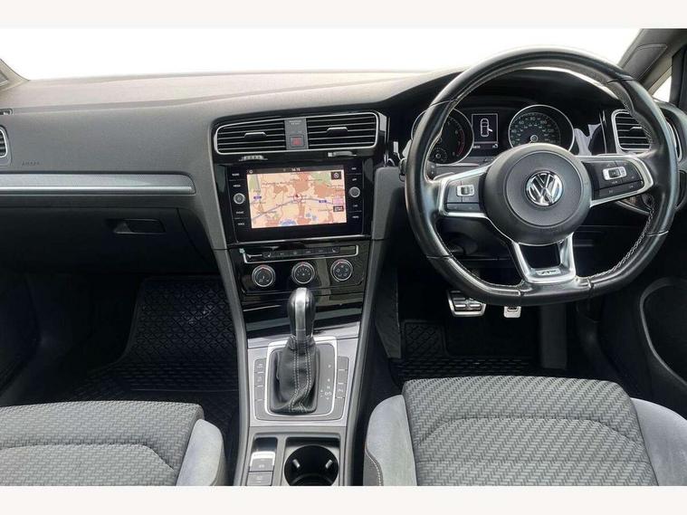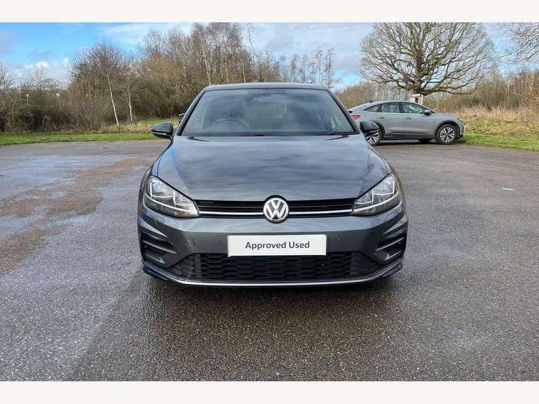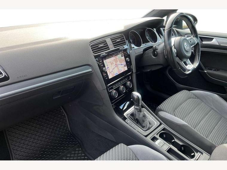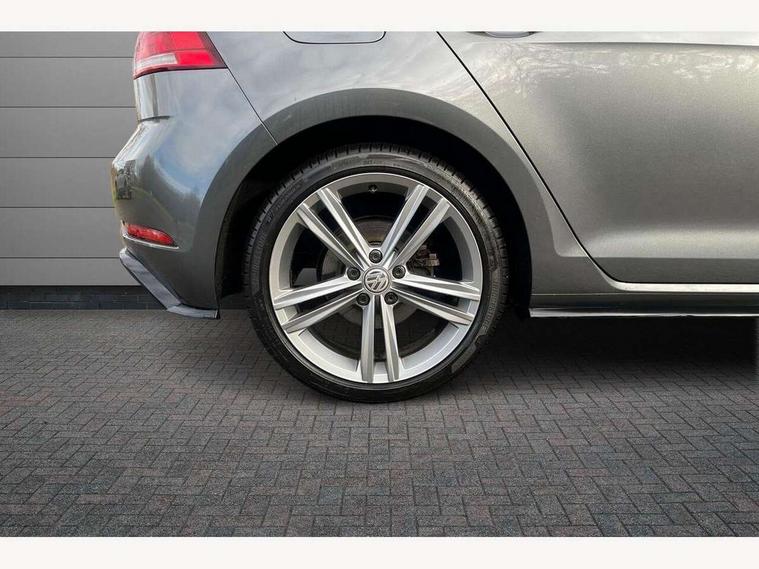 'Lights On' Reminder warning buzzer, 8" colour touch screen, ACC - Adaptive cruise control with front assist, forward collision warning, distance monitoring, city emergency brake and speed limiter, App-Connect, Bluetooth telephone and audio connection for compatible devices, Brake pad wear indicator warning light, Driver alert system, Driver profile selection, Driving Mode Selection with four preset modes - Eco, normal, sport or individual modes, Front assist, radar sensor controlled distance monitor, city emergency braking + predictive pedestrian protection, Front assistant collision mitigation, Instrument cluster in white, Multifunction computer with visual gear change recommendation for fuel consumption, Power assisted speed sensitive electro-mechanical steering, Speedo, rev counter, electronic odometer, trip, service interval display, exterior temperature and fuel gauge, Stop/start system, Ultrasonic front and rear optical and audible parking sensors, Warning buzzer and light for front seatbelts unfastened, Battery regeneration during braking, Lowered sports suspension, XDS electronic differential lock, 8 Speakers, CD/MP3/WMA, USB and SD card reader, aux-in, Composition media system, DAB Digital radio receiver, SMS Functionality, Automatic coming/leaving home lighting function, Automatic dimming rear view mirror/rain sensor, Black front air intake and radiator grille with chrome insert, Black sports rear diffuser, Body colour bumpers, Body colour door handles, Body colour door mirrors with integrated indicators, Chrome grille surround, Chrome trimmed front air intake surrounds, Electric front windows, Electric rear windows, Electrically adjustable and heated door mirrors, Glavanised body, Heated rear windscreen, High level 3rd brake light incorporating LED Technology, Left and right chrome effect trapezoid dummy exhaust tailpipe surrounds, Range adjustable headlights via infotainment system with LED daytime running lights, Rear number plate lights incorporating LED technology, Rear tinted glass 65% light absorbing from B pillar backwards, Rear window aerial, Rear window wash/wipe with intermittent wipe, Reflectors in all doors, Remote electrically foldable door mirrors, door mirror puddle lights and reverse activated kerb-view adjustment on passengers door mirror, Stainless steel door sill protection, Windscreen wipers/ intermittent wipe + 4 position delay, 12V socket in luggage compartment, 3 rear headrests, 4 load lashing points in luggage compartment, 60/40 split folding rear seat backrest, Bag hook in luggage compartment x 2, Black roof lining, Cooled glovebox, Dust/pollen filter, Front + rear carpet mats, Front centre armrest with storage compartment and two rear air vents, Front reading lights, Front seat back storage pockets, Grab handles front x 2, rear x 2 with integrated coat hooks, Height and reach adjustable steering wheel, Illuminated vanity mirrors, Instrument lighting white adjustable panel illumination, Interior light delay, Isofix preparation for 2 rear child seats, LED front and rear reading lights, Load through provision with rear centre armrest and cupholders x2, Luggage compartment light, Multifunction leather steering wheel with grey stitching leather trimmed gear knob including paddle shift, Multifunction leather steering wheel with leather trimmed gear knob including paddle shift, Overhead storage box, R Line badge, Stainless steel pedals, Storage box in luggage compartment, Storage compartment in roof console with cover, Storage compartments in front doors, Storage compartments in rear doors, Stowable luggage compartment cover, Sun visors, Three spoke multi-function leather trimmed steering wheel and gearknob, Variable boot floor, height adjustable and removable, Ambient lighting pack - Golf, Mirror pack - Golf, R Line Styling pack - Golf, 3 rear three point seatbelts, Airbags - Driver's and front passenger's, curtain airbag, Driver's knee, front side impact and passenger's airbag deactivation switch, Anti-lock Braking System (ABS) with Hydraulic Brake Assist (HBA), Automatic post collision braking system, Child locks on rear doors, Driver/Passenger optimised head restraints, Electronic parking brake with auto hold, Electronic stability control (ESC) including Electronic differential lock (EDL) and ASR (Traction control) with deactivation via infotainment system, Pre crash preventive occupant protection, Three point height adjustable front seatbelts with tensioners, Tyre pressure loss indicator, Alarm with interior protection, Electronic engine immobiliser, Remote central locking with 2 remote folding keys, Chrome plated air vent surround, Chrome plated electric mirror adjustment light switch surround, Dark Diamond decorative inserts in dash and door panels, Piano black centre console with aluminium inlay, Steel space saver spare wheel,