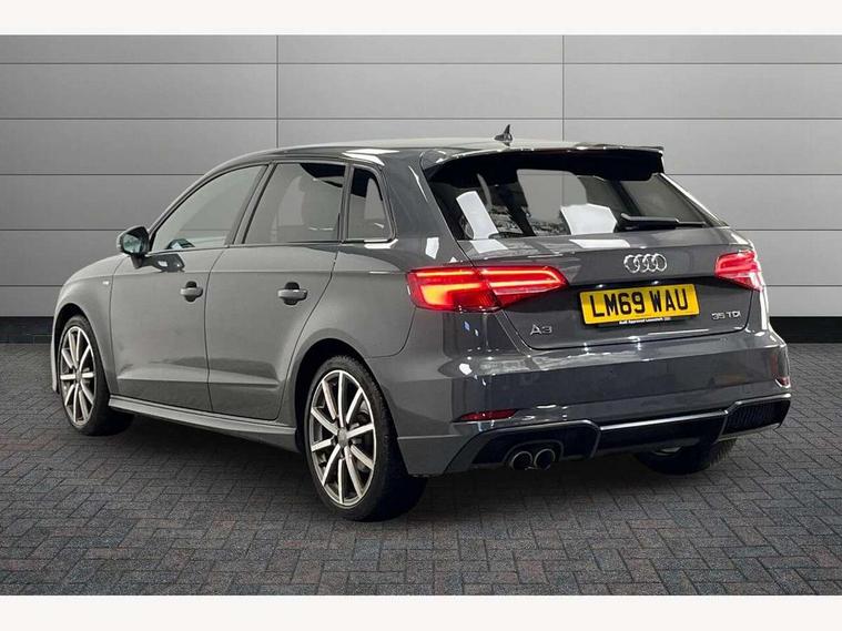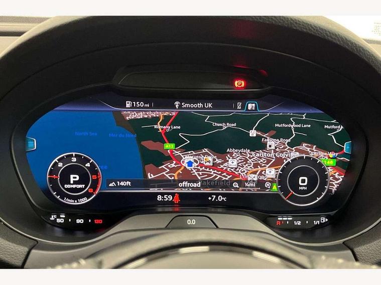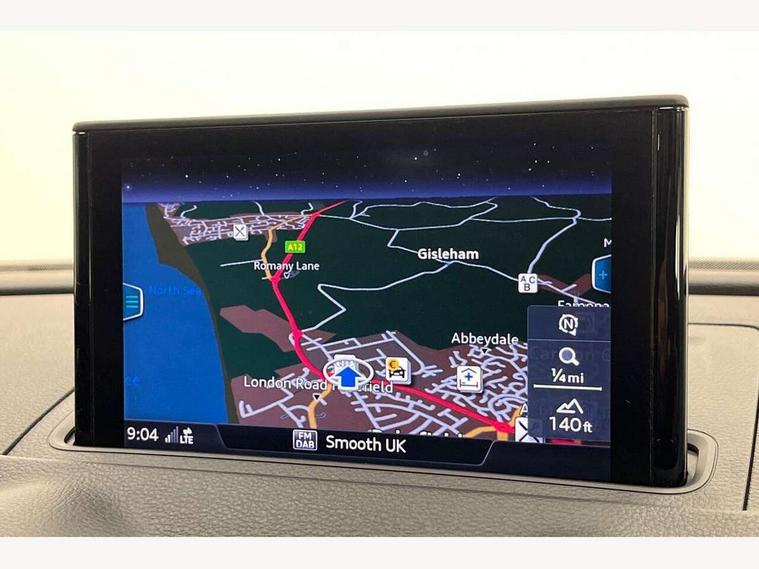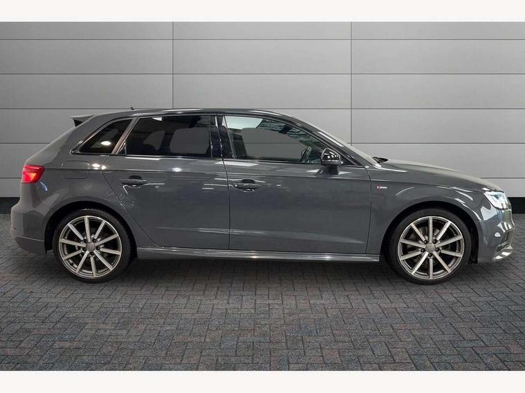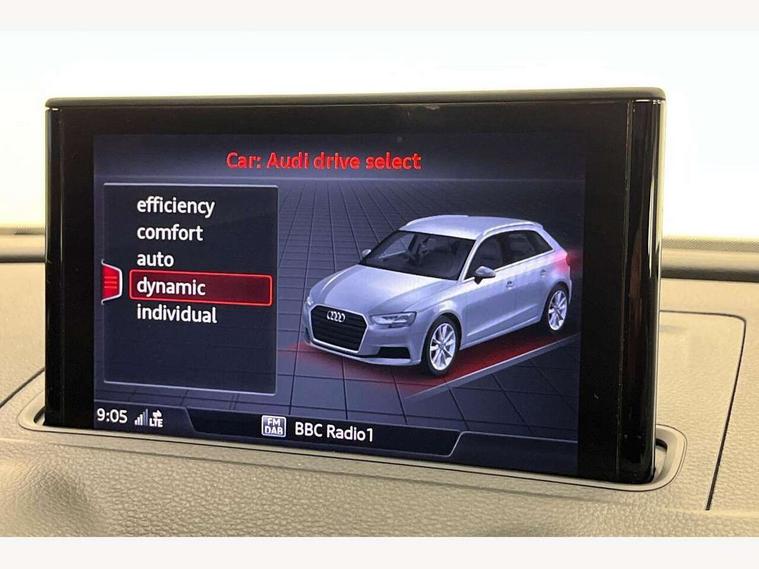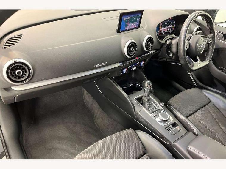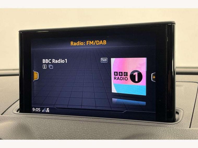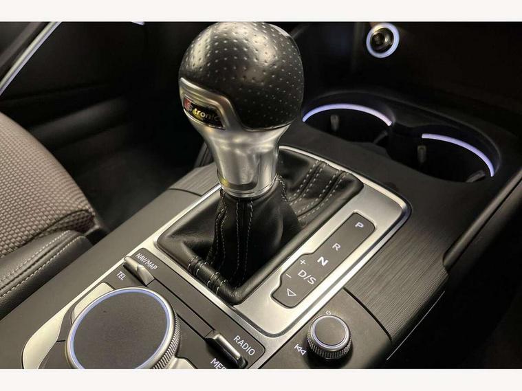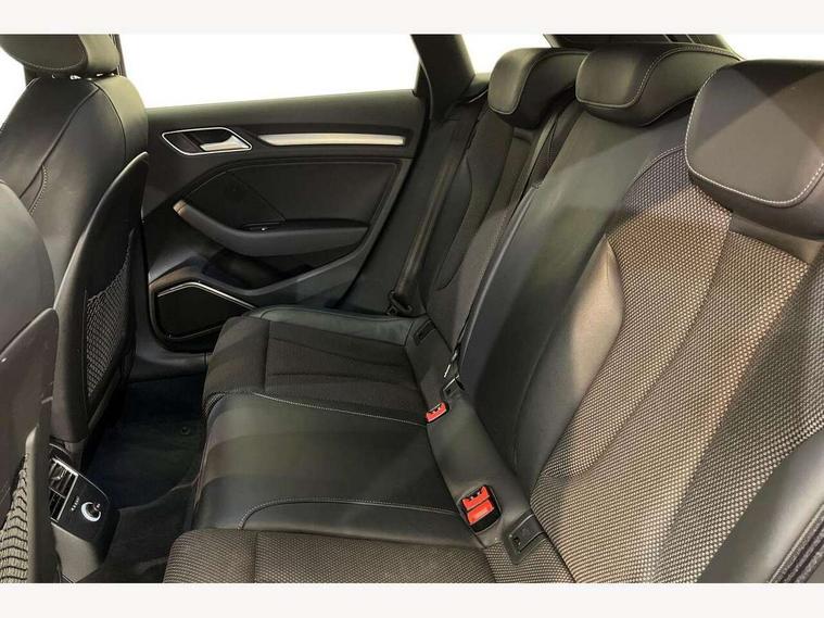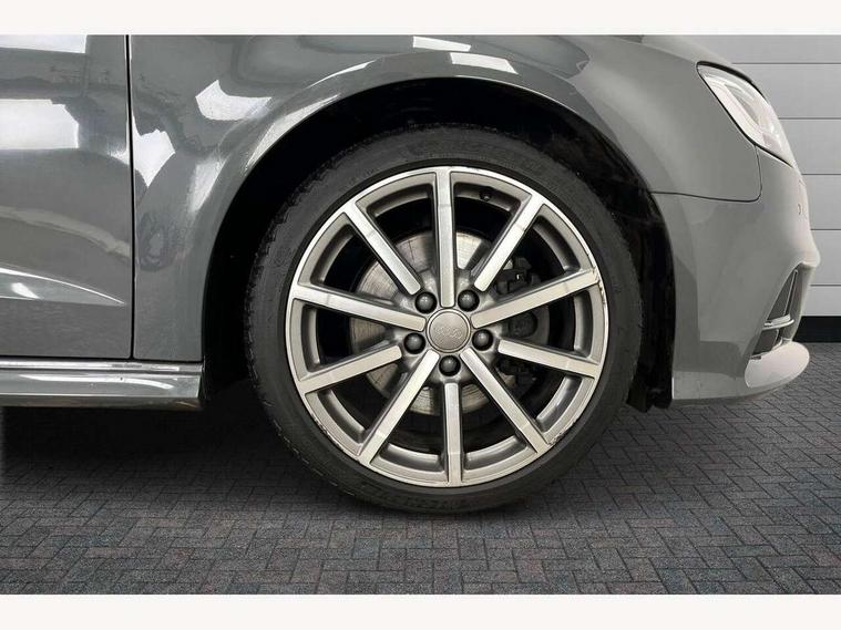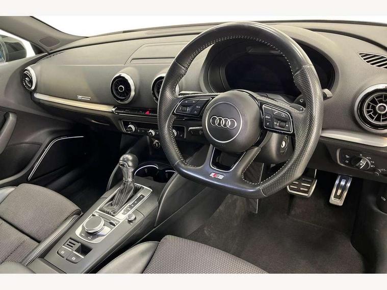 Audi drive select, Audi smartphone interface, Automatic start/stop system, Colour driver's information system display, Electro - mechanical power assisted steering, Mobile telephone preparation - bluetooth interface, SD card based MMI navigation, Service interval indicator, Speed limit display, Voice control system, Voice recognition for navigation system, Diesel particulate filter, Sports suspension, 2 USB interfaces and Aux-In jack, Audi music interface, CD player, DAB Digital radio, MMI radio plus with 7" colour MMI screen and MMI controller, Online entertainment, Auto dimming interior rear view mirror, Body colour roof spoiler with aerodynamic inserts in high gloss black, Chrome exhaust tailpipes, Electric front windows, Electric rear windows, Electrically adjustable and heated door mirrors with integrated LED side indicators, Heated windscreen washer jets, LED daytime running lights, Light and rain sensors, Privacy glass - dark tinted rear and rear side windows from B-pillar backwards, Rear wiper, Sport specific side air inlet grille and diffuser insert, 3 adjustable rear headrests, 3 spoke leather multifunction sports steering wheel with paddle shift gear change controls, 60/40 split folding rear seat, Adjustable front centre armrest, Black cloth headlining, Dual zone electronic climate control, Front and rear interior lights with delay, Front/rear floor mats, Height and reach adjustable steering wheel, Illuminated door sill trims with S logo, Isofix child seat preparation for front passenger/outer rear seats inc passenger airbag deactivation including top tether, Lashing point in luggage compartment, Manual height adjustable front seats, Stainless steel pedals, Storage compartments in doors side trims, centre console and under front drivers seat, Tool kit, Black styling pack - A3/S3, LED interior light pack - A3/RS3, Non smoking pack - A3, Storage and luggage pack - A3/RS3, 3 point seatbelts on all seats, ABS/EBD, Active bonnet, Active front headrests, Airbags - front driver/passenger, front & rear side, curtain, drivers knee, ASR, EDL, Electromechanical parking brake, ESC - Electronic Stability Control + traction control, Front passenger airbag deactivation, Hill hold assist, Manual rear child locks, Multi-Collision braking, Seatbelt warning, Tyre pressure warning, Warning triangle and first aid kit, Anti theft alarm, Anti-theft wheel bolts, Remote control central locking, Thatcham category 1 alarm + immobiliser, Aluminium air vent surrounds, Aluminium trim elements, Matt brushed aluminium inlays, 18" 10 spoke design alloy wheels in matt titanium look with diamond cut finish, Tyre repair kit,