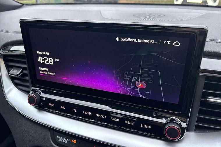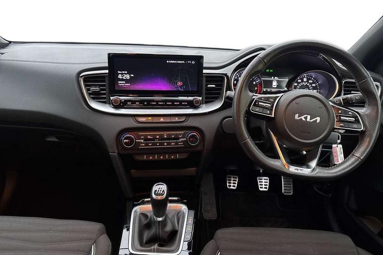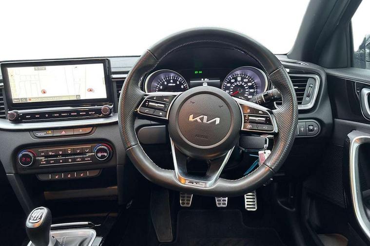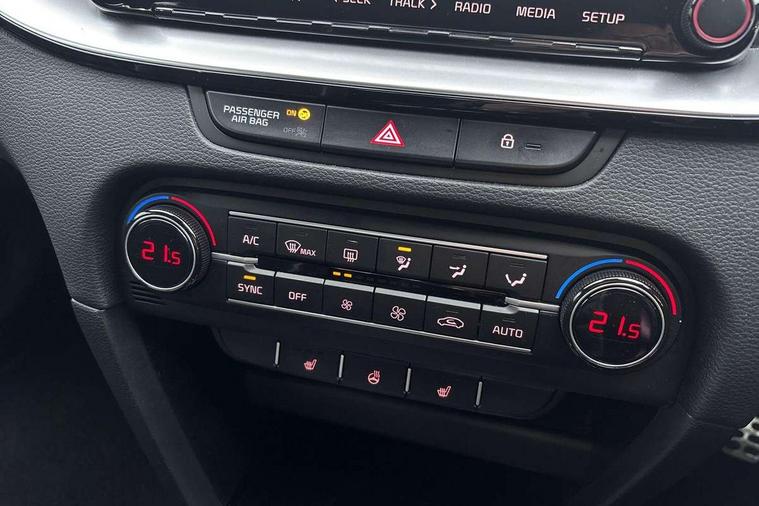 10.25" touchscreen satellite navigation, 4.2" supervision colour cluster display, Apple car play/Android Auto with voice control, Bluetooth with Voice Recognition & Music Streaming, Cruise control + speed limiter, Driver Attention Warning (DAW), Emergency call service, Emergency stop signalling system, Forward Collision-Avoidance Assist (FCA) - City/Pedestrian/Cyclist, Kia connect UVO, Lane Following Assist (LFA), Lane keep assist, Manual speed limit assist, Motor driven power steering, Rear parking sensor, Reversing camera system with dynamic guidelines (Integrated into centre fascia screen), Trip computer, Intelligent Stop and Go, 6 speaker audio system, DAB Radio with MP3, Illuminated USB ports, Steering wheel mounted controls, USB Fast Charger in Front Centre Console, USB port for connection of a media device, All-round Electric Windows with Front Auto Up & Down Function, Auto dimming rear view mirror, Automatic defog system, Automatic headlights control, Body colour bumpers, Body colour exterior door handles, Body coloured and dark chrome rear skid plate, Body coloured side sill mouldings, Dark chrome window surround, Electric adjustable/heated/folding door mirrors with LED Indicators, Heated rear window with timer, High beam assist, High gloss black and dark chrome radiator grille, High gloss black door mirrors, High Gloss Black rear spoiler, LED daytime running lights, LED front fog lights, LED Headlights, LED High-mounted Brake Light, LED honeycomb rear light, LED rear combination lights, LED rear fog light, Privacy glass (rear side windows and tailgate), Rain sensing front wipers, Rear side wing doors, Rear wash/wipe, Satin chrome dual exhaust trim, Tinted glass, Wide view drivers door mirror, Windscreen Washer Level Warning, 1 x Front 12V socket, 12V power socket in luggage compartment, 3 seat bench in 2nd row, 3 x passenger assist grips, 60/40 split folding rear seat, All-round height adjustable headrests, Aluminium pedals, Black headlining, Centre console storage box/armrest, Cloth/faux leather upholstery, Cupholders in centre console, Cupholders in rear armrest, Dash illumination dimmer switch, Door courtesy lamps, Driver & Front Passenger Sunvisors with Vanity Mirror Illumination & Ticket Holder, Driver + front passenger electric lumbar support, Driver's seat height adjuster, Dual Height Luggage Area Floor, Dual zone automatic air conditioning, Faux leather door centre trim, Front and rear door storage, Front cabin map light with sunglasses case, Front Passenger Seat Height Adjuster, Front seat back pockets, Gear shift indicator, Heated front seats, Heated steering wheel, Interior door lock/unlock function, ISOFIX Child seat top tethers and anchor fixings, Leather D-Cut steering wheel, Leather handbrake, Luggage area light, Luggage area parcel shelf, Luggage hooks, Rear centre armrest, Rear coat hooks, Satin chrome interior door handles, Single front passenger seat, Tilt/telescopic adjustable steering wheel, All round 3-point seatbelts, Anti-lock braking system (ABS), Brake assist system, Dual front side airbags, Dual horn, EBD - Electronic brakeforce distribution, Electronic parking brake, Electronic stability control (ESC) and vehicle stability management (VSM), Front passenger airbag cut-off switch, Height adjustable front seatbelts, Hill start assist control (HAC), Impact sensing auto door unlocking, Rear door child safety locks, Seatbelt reminder warning, Twin curtain airbags, Twin front airbags, Tyre pressure monitoring system, Alarm system, Engine Immobiliser & Deadlocks, Locking wheel nuts, Remote central door locking with fold away key, Speed sensitive auto door locking, Black high gloss front console garnish & door trim, Satin Chrome Fascia Trim, 17" GT-Line alloy wheels, Tyre mobility kit,