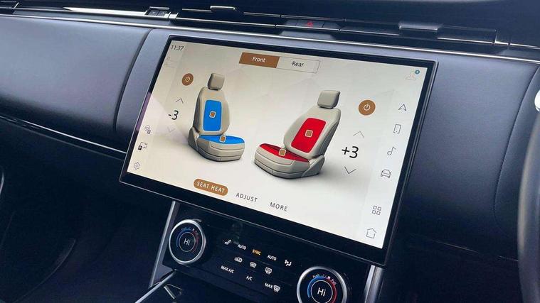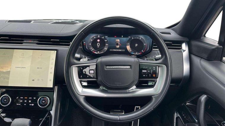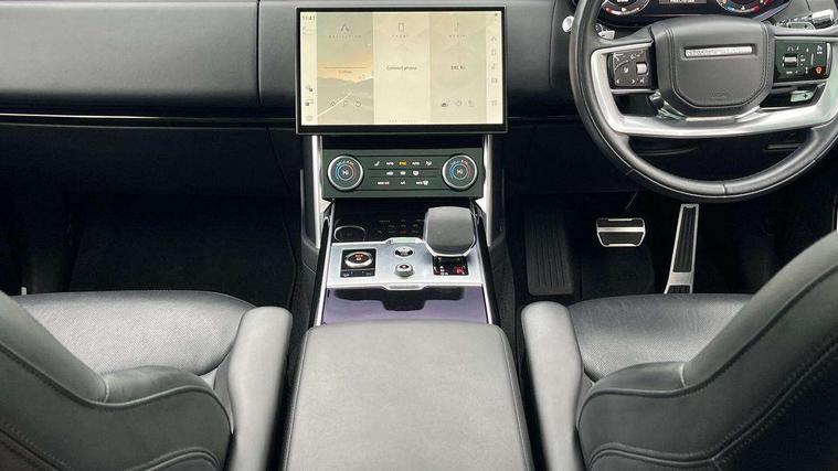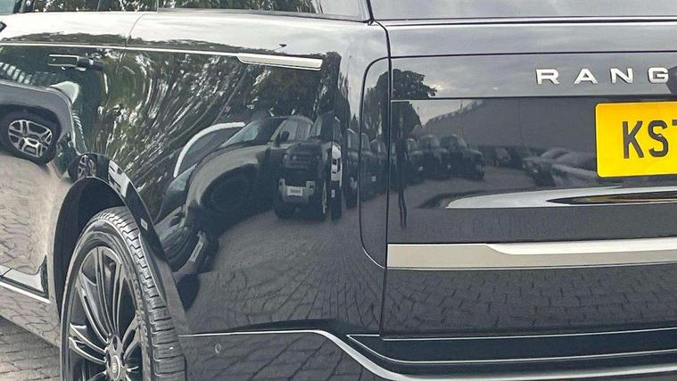 13.1" Touchscreen, 3D surround camera, Adaptive cruise control with steering assist, All Terrain Info Centre, All wheel steering, Android Auto, Apple car play, Blind spot assist, Bluetooth connectivity streaming, Driver condition response, Eco mode, Electric power assisted steering (EPAS), Front and rear parking aid, Head up Display, Interactive driver display, Lane keep assist, Park assist, Powered gesture tailgate/boot lid, Rear collision monitor, Rear traffic monitor, Remote, Traffic sign recognition with adaptive speed limiter, Wi-Fi Enabled with data plan, Wireless device charging with phone signal booster, 8 speed automatic transmission, Active damper technology system, Adaptive dynamics, All terrain progress control, All Wheel Drive (AWD), Automatic access height, Electronic active differential with torque vectoring by braking, Electronic air suspension with dynamic response, Terrain Response 2 Auto, Twin speed transfer box, Digital Audio Broadcast radio-DAB, Pivi pro system, USB socket, Acoustic laminated windscreen, Animated directional indicators, Automatic headlights, Automatic levelling headlights, Centre high mounted stop light, ClearSight interior rear view mirror, Digital LED headlights with signature DRL and image projection, Electric windows with one touch open/close and anti trap, Flush deployable exterior door handles, Front and rear recovery eyes, Front fog lights, Headlamp power wash, Heated rear window, Heated washer jets, LED tail lights, Power fold, auto-dimming, heated door mirrors with approach lights, Rain sensing windscreen wipers, Rear fog lights, Rear wash/wipe, Side repeater indicators in mirror, Trailer stability assist, Winter wiper park position, 12V power sockets, Air quality sensor, Bright metal pedals, Cabin air purification pro, Cabin lighting, Customer configurable single point entry, Driver and passenger front seat armrests, Easy boot loading, Ebony Carpet, Front and rear cupholders, Front and rear grab handles, Front head restraints, Gearshift paddles, Heated steering wheel, Hook in load space, Loadspace light, Luggage tie down in loadspace, Multifunction steering wheel, Rear centre armrest, Rear head restraints, Rear ISOFIX, Soft close doors, Twin blade sunvisors with Illuminated vanity mirrors, Upper and lower glovebox, Online pack with data plan - Range Rover, 3x3 point rear seat belts, Anti-lock braking system (ABS), Brake hold function, Cornering brake control (CBC), Customer configurable autolock, DSC - Dynamic Stability Control, Electronic brake force distribution, Electronic parking brake, Electronic traction control, Emergency brake assist, Emergency braking, Front airbags with passenger seat occupant detector, Front side airbags, Hill descent control, Hill launch assist, Illuminated seat belt buckles, Low traction launch, Occupant protection assist, Power operated child locks, Roll stability control, Tyre pressure monitoring system (TPMS), Immobiliser, Intrusion sensor and alarm, Keyless entry, Locking wheel nuts, Remote central locking, Noble chrome controls,