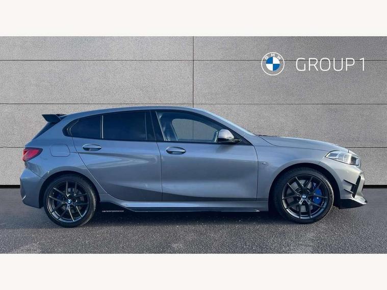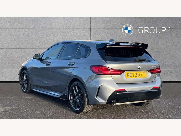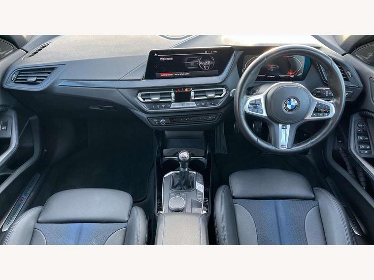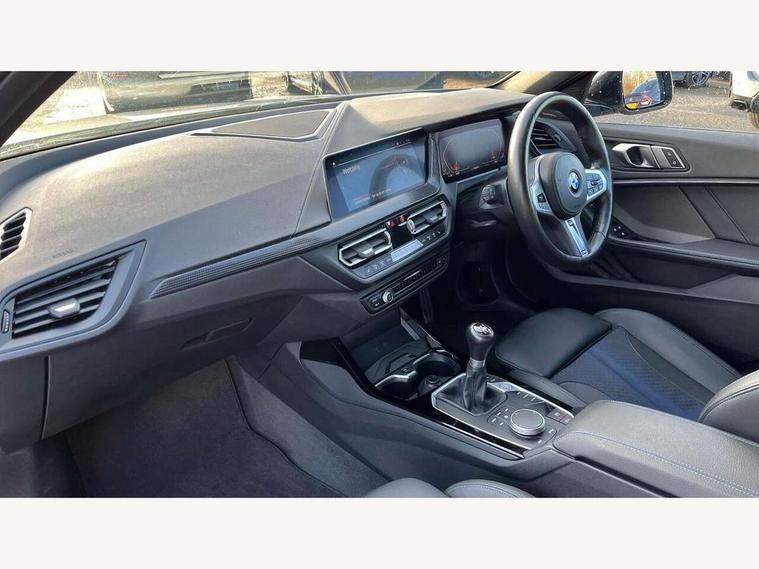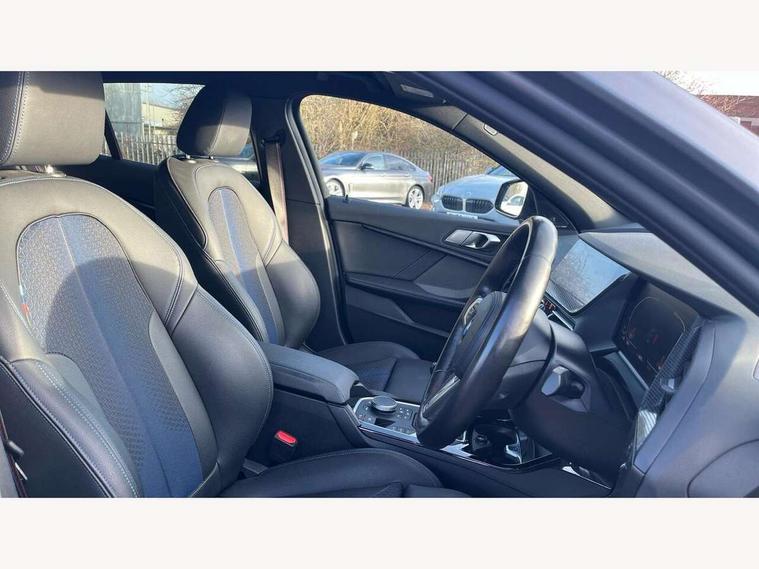 Active guard plus, Attentiveness assist, BMW Online services, BMW Teleservices, Check Control warning system for monitoring of lights and door/luggage compartment open warning, Connected eDrive Services, Cruise control with brake assist, Eco pro mode, Electric power steering, Front/rear Parking distance control, Integrated owners handbook, On board computer, Optimum shift indicator, Personal Profile, Pull away assistant, Speed limiter, Anti roll bar front and rear, Balancer shaft, Double VANOS, Drive Performance Control, Electronic differential lock, M sports suspension + self levelling, Petrol Particulate Filter, VALVETRONIC engine management, Bluetooth audio streaming, DAB Digital radio, Auto dimming rear view mirror, Body colour door handles, Body colour mirror caps, Chrome 'M' logo side designation, Chrome exhaust tailpipe in single, round (Exhaust tailpipe, stainless steel - single, round), Chrome kidney grille frame with Satin Aluminium struts, Direction indicator side lights in exterior mirrors, Electric folding and anti dazzle exterior mirrors, Fading support, Follow me home headlights, Front and rear electric windows with open and close fingertip control, anti trap facility and comfort closing, Front door sill finishers in black plastic with BMW designation, Green tinted heat protection glazing, Headlight beam throw control, High gloss shadow line exterior trim, High level third brake light, LED daytime running lights, LED front fog lights, Lightweight engineering, Matt black air guide grilles, Matt black roof moulding, B pillar finisher and wheel arch trim, Matt black window frame, Model designation on right side of tailgate, Nearside reverse light in rear light cluster, Rain sensor including auto headlights activation, Rear fog lights, Rear window wiper, Shark fin antenna, Visible VIN plate, Welcome lighting, Windscreen wipers with integrated washing jets, 12V power socket in centre console, 2 cupholders in front centre console, 3 rear seat head restraints, 3 Spoke M sports leather steering wheel, Anthracite headlining, Anthracite Velour floor mats, Bag hook in luggage compartment, Child seat ISOFIX attachment for two outer rear seats and front passenger seat with anchorage points, Conditioned based service, Dakota leather upholstery with perforation and contrast stitching, Driver and front passenger seat heating, Driver side folding compartment in instrument panel, Folding rear clothes hook, Folding rear seats, Four grab handles integrated in roof lining, Front and rear door pockets, Front and rear side armrest integrated into door trim, Front Armrest foldable with integrated storage compartment, Front sports seats with electric side bolster adjustment, Gearshift lever with M designation, Glove compartment, Height adjustable front head restraints, Manual adjust steering wheel, Multi-function controls for steering wheel, Rear seat backrest with manual 60:40 split folding with 3 top tether clips integrated on rear of seat panels, Storage compartment in centre console, Sun visors with vanity mirrors and insert tab, Two extra lashing eyes in luggage compartment, Two zone automatic air conditioning, Extended Lighting pack - 1 Series, Extended storage pack - 1 Series, Interior lights pack - 1 Series, Luggage compartment pack - 1 Series, M Sport exterior styling aerodynamics pack - 1 Series, 2 tone horn, 3 point seatbelts on all seats, front pyrotechnic belt tensioners, stopper and belt force limiters, rear coded belt buckles, Airbags - Front driver and passenger, front and rear head, front side, curtain head protection, Anti lock braking system (ABS) with brake assist, BMW emergency call, Brake drying, Braking readiness, Crash sensor activating central locking release, hazard warning lights, fuel cut off, interior lighting + activation of safety battery terminal clamp, Driver and front passenger seat belt security check, Dynamic stability control + (DSC+), Dynamic Traction Control - DTC, Electrically operated hand brake, Front passenger manual airbag deactivation, Rear child proof door locks, Seatbelt warning, Side impact protection, Tyre pressure monitoring system, Warning triangle and first aid kit, Automatic drive away locking facility, Central locking switch for all doors, fuel filler cap and luggage compartment, Deadlocking function system to all doors, Locking wheel bolts, Remote control with integrated key with High-gloss Black inlay and M designation and 1 button for open/ close lock, window, open luggage compartment, Start/stop button with comfort go keyless engine start and auto start stop deactivation button, Thatcham Cat.1 alarm and immobiliser, Contrast stitching on instrument panel, Reduced rolling resistance tyres,