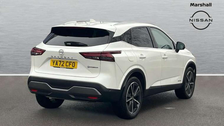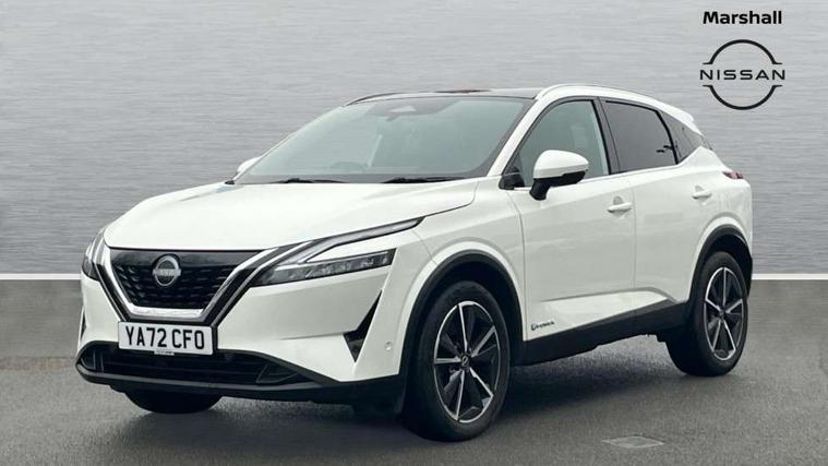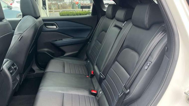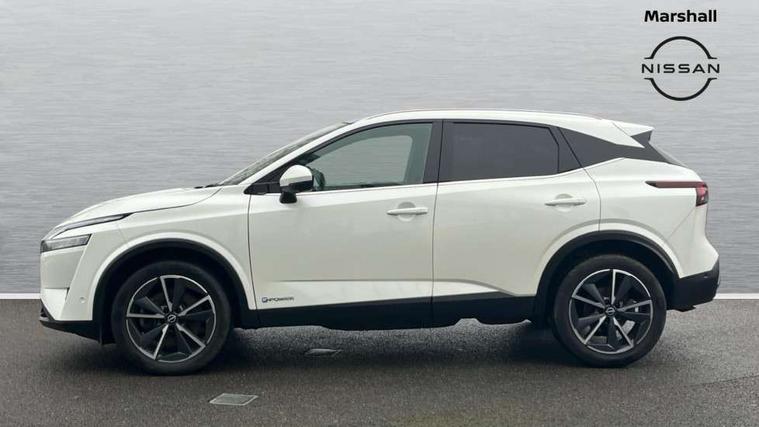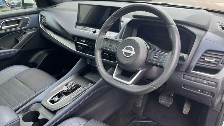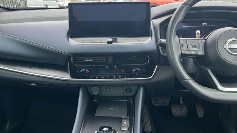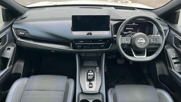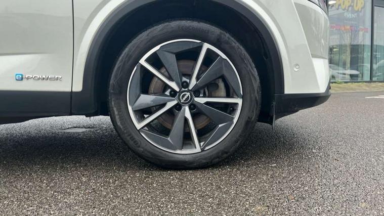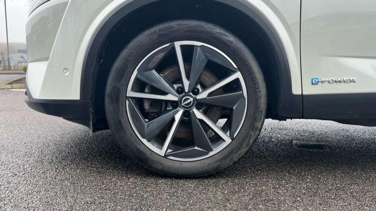 Advanced windscreen head up display, Android auto/Apple CarPlay (Wired), Blind spot warning, Drive modes (sport, normal, eco), Electric speed sensitive power steering, Emergency and breakdown call, Front and rear parking sensors, Full Digital 12.3" TFT Digital Combimeter, Google maps services - search, weather, 3D maps and Google street view, Hands free power tailgate, Idle stop/start system, Intelligent around view monitor, Intelligent Cruise control (ICC), Intelligent driver alert system, Intelligent forward collision warning, Intelligent lane intervention, Lane departure prevention, Lane departure warning system, Lane keep assist, Moving object detection, Nissan connect 12.3 inch touchscreen infotainment system, Nissan connect navigation, ProPILOT with Navi-Link, Push button starter, Rear cross traffic alert, Rear view camera, Remote control services - door locks, lights, horn and car locator, Telematics - notifications and connectivity services, TomTom live traffic services, Traffic sign recognition with legal speed adjustment, Trip computer, Virtual personal assistant and firmware over the air capability, Wireless apple carplay, Wireless charging pad, 6 speakers, AM/FM audio system with DAB, Bluetooth audio streaming, Front USB connections (Type-A and Type-C), Rear USB charging only ports (Type-A and Type-C), Auto dimming rear view mirror, Auto rear wiper when reversing, Automatic hazard signal with emergency stop signal, Body colour mirror caps, Body coloured door handles, Bodyside mouldings, Chrome side window finisher, Door handle with button, e-POWER badging, Electric auto folding door mirrors, Electrically adjustable and heated door mirrors with LED turn indicator, Follow me home headlights, Front and rear LED turning signals, Headlights auto levelling system, Intelligent auto headlights, LED daytime running lights, LED headlights with adaptive driving beam, LED rear lights, One touch front and rear electric windows with remote opening and closing, Partially body coloured bumpers, Privacy glass, Rear bumper with graphite insert, Rear reversing light (bulb lighting), Rear roof spoiler, Rear side wing doors, Rear styling plate, Shark fin antenna, Splash free rain sensing wipers, Super UV and infrared cut glass, Thermaclear heated windscreen, Three blink turn signal, 12v power socket in dashboard and luggage, 2x Rear coat hooks, 3 bench rear seats in 2nd row, 3 rear headrests, 4 folding assist grip, 6 Luggage hooks - 4 on floor, 2 on side, 60/40 split folding rear seat bench, Ambient lighting around centre console, Ambient lighting in front doors, Centre console storage tray, Chrome interior door handles, Cloth/syntech leather monoform upholstery, Dark black/blueish PVC wrapping, Dark headlining, Driver and front passenger sunvisors with illuminated vanity mirrors, Driver seat back pocket, Dual zone automatic climate control with pollen filter, e-POWER shifter, Electrically adjustable driver seat, Electrically adjustable lumbar support for driver, Front and rear door storage, Front centre console and armrest, Front cupholders x 2, Front door with bottle holders, Glovebox with light, Hard trunk cover, Heated front seats, Heated steering wheel, Height adjustable driver's seat, Height adjustable front headrests, Height adjustable passenger seat, Leather steering wheel, Luggage board system, Luggage space lighting, Manual lumbar support on passenger seat, Manually adjustable passenger (slide recline + lifter), Multifunction steering wheel, Passenger seat back pocket, Rear armrest with 2 cupholders, Rear door bottle holders, Single front passenger seat, Soft PVC kneepad, Steering wheel switches, Tilt/telescopic adjustable steering wheel, Two rear isofix child seat anchorage points with top tether, Welcome light and doors with console tray ambient lighting, Glass roof pack with roof rails - Qashqai, 3x3 point rear seatbelt pretensioners + load limiters, ABS with EBD and brake assist, Active brake limited slip, Auto hold function, Child locks on rear doors, Curtain and front side, far side airbags, Driver and passenger airbags, Driver, passenger and 2nd row rear seat belt reminder, Electronic parking brake, Front seatbelt pretensioners + load limiters, Height adjustable front seatbelts, Hill start assist, Intelligent blind spot intervention, Intelligent front emergency braking with pedestrian, cyclist recognition and junction assist, Intelligent rear automatic braking, Tyre pressure monitoring system, Vehicle dynamic control, Capless fuel filler, Engine immobiliser, Intelligent Key, Remote central door locking with deadlocking, Thatcham Cat.1 alarm, Interior instrumental panel C finisher, 19" Diamond cut alloy wheels, Tyre puncture repair kit,