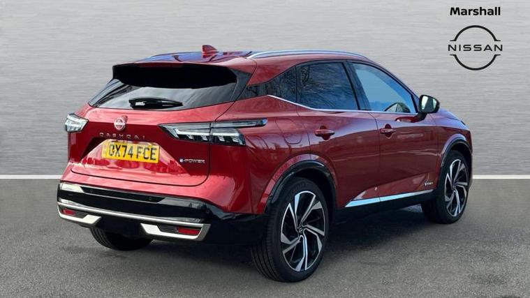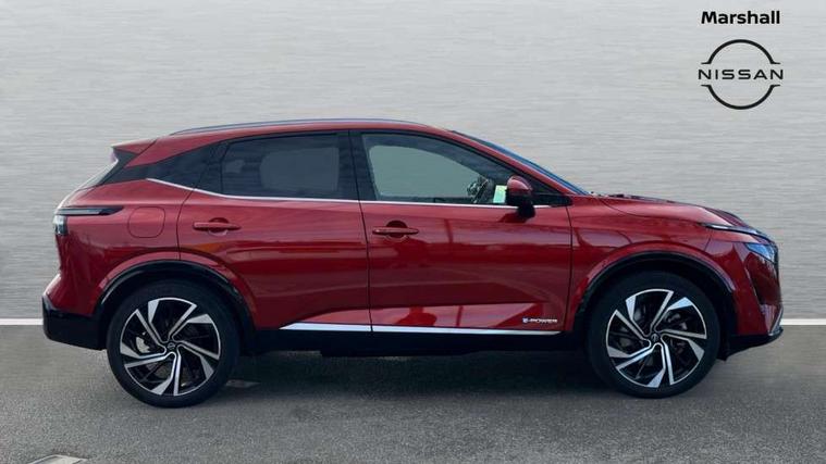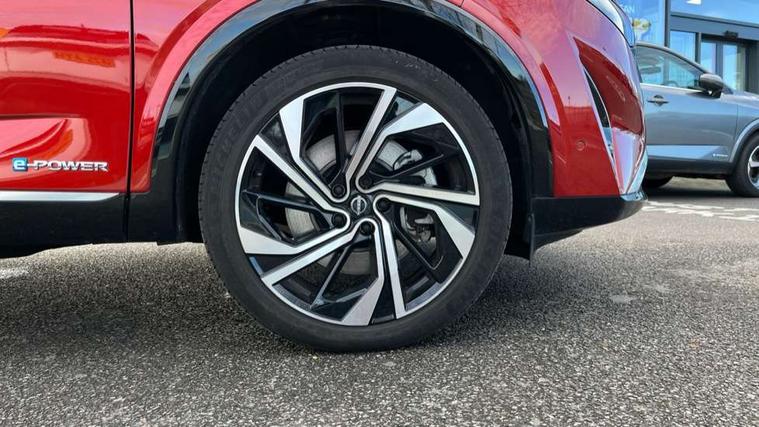 2 front USB-C ports, 2 rear USB-C ports, 360 degree Intelligent around view monitor with moving object detection, Advanced windscreen head up display, Blind spot intervention, Blind spot warning, Drive assist custom mode, Drive modes (sport, normal, eco), Driver drowsiness and attention warning, e-Pedal step, Electric speed sensitive power steering, Emergency and breakdown call, Emergency lane keep assist, Emergency Stop Signal (ESS), Engine start/stop button, EV mode switch, Event data recorder, Front and rear parking sensors, Full Digital 12.3" TFT Digital Combimeter, Google virtual personal assistance, Hands free power tailgate, Idle stop/start system, In-car WIFI hotspot, Intelligent Cruise control (ICC), Intelligent forward collision warning, Intelligent speed assist, Lane departure warning system, Nissan connect 12.3 inch touchscreen infotainment system, Nissan connect navigation with google maps, Nissan connect services 2.0 (Google Automotive System), Outside temperature sensor, Rear cross traffic alert, Reversing detection, Traffic jam pilot, Wireless Apple CarPlay/Android Auto, Wireless charging pad, Limited slip differential, Multi link suspension, 10 Bose speakers - 2 tweeters, 6 high and medium frequency door speakers and 2 in subwoofer, AM/FM audio system with DAB, Bluetooth audio streaming, Bose acoustimass bass box, Auto dimming frameless rear view mirror, Auto rear wiper when reversing, Body colour mirror caps, Body coloured bumpers, Body coloured door handles, Bodyside mouldings, Chrome side window finisher, e-POWER badging, Electric auto folding door mirrors, Electrically adjustable and heated door mirrors with LED turn indicator, Follow me home headlights, Glossy black bumper inserts and fenders, High beam assist, Intelligent auto headlights, LED 3rd brake light, LED daytime running lights, LED headlights with adaptive driving beam, LED rear lights, LED sequential turn lights, One touch front and rear electric windows with remote opening and closing, One touch passenger window, Rear privacy glass, Rear roof spoiler, Rear side wing doors, Rear styling plate, Reverse tilting door mirrors, Shark fin antenna, Silver roof rails, Splash free rain sensing wipers, Super RED rear LED lights, Super UV and infrared cut glass, Thermaclear heated windscreen, 3 bench rear seats in 2nd row, 3 rear headrests, 60/40 split folding rear seat bench, Chrome interior door handles, Dark headlining, Driver seat back pocket, Dual zone automatic climate control with pollen filter, e-POWER shifter, Fixed Glass roof with electric sunshade, Front door with bottle holders, Heated front seats, Heated steering wheel, Height adjustable front headrests, Luggage board system, Luggage space lighting, Multifunction steering wheel, Passenger seat back pocket, Quilted premium leather upholstery, Rear door bottle holders, RGB ambient light (Full area coverage), Single front passenger seat, Smooth leather steering wheel, Tilt/telescopic adjustable steering wheel, Two rear isofix child seat anchorage points with top tether, 3x3 point rear seatbelt pretensioners + load limiters, Autonomous emergency braking, Child locks on rear doors, Curtain and front side, far side airbags, Driver and passenger airbags, Driver, passenger and 2nd row rear seat belt reminder, Electric handbrake with auto hold function, Front seatbelt pretensioners + load limiters, Height adjustable front seatbelts, Hill start assist, intelligent front emergency braking, Rear automatic braking, Tyre pressure monitoring system, Vehicle dynamic control, Engine immobiliser, Intelligent key with walk away lock and approach unlock functions, Remote central door locking with deadlocking, Thatcham alarm, 20" Diamond cut alloy wheels, Tyre puncture repair kit,