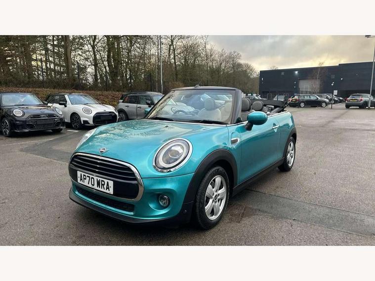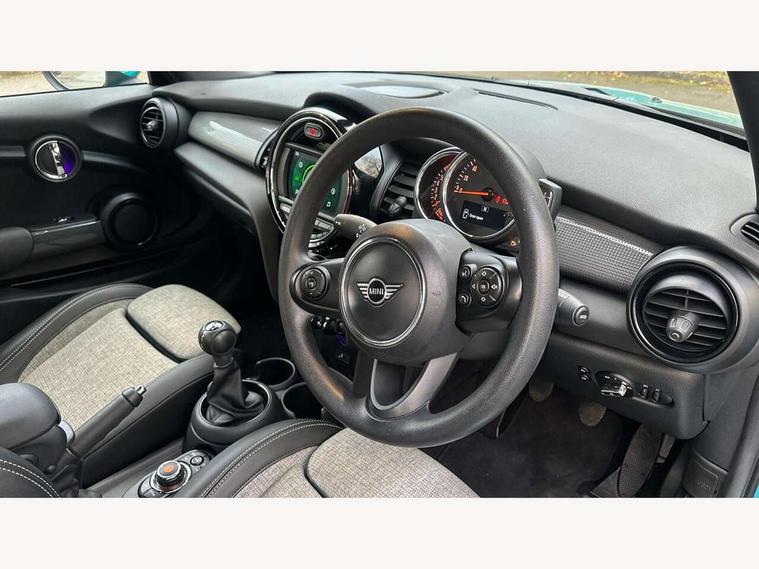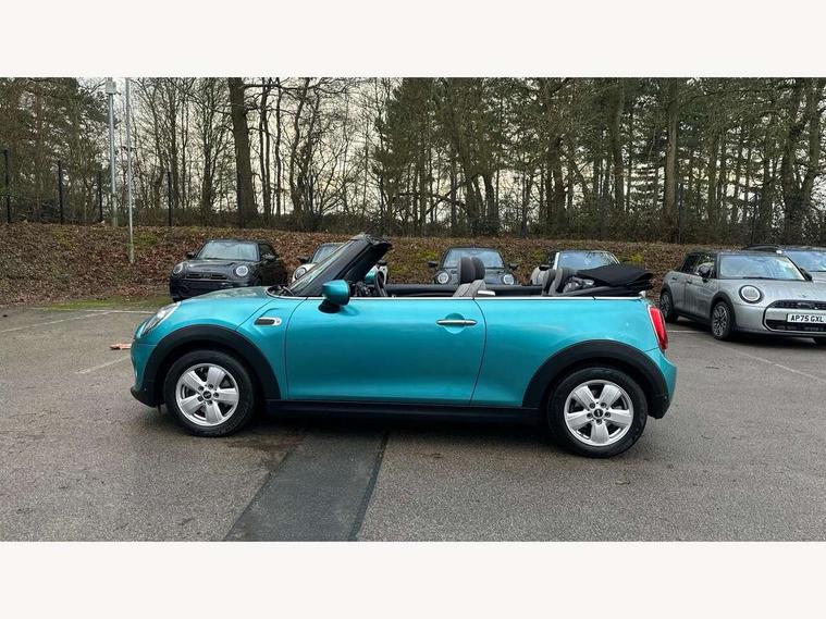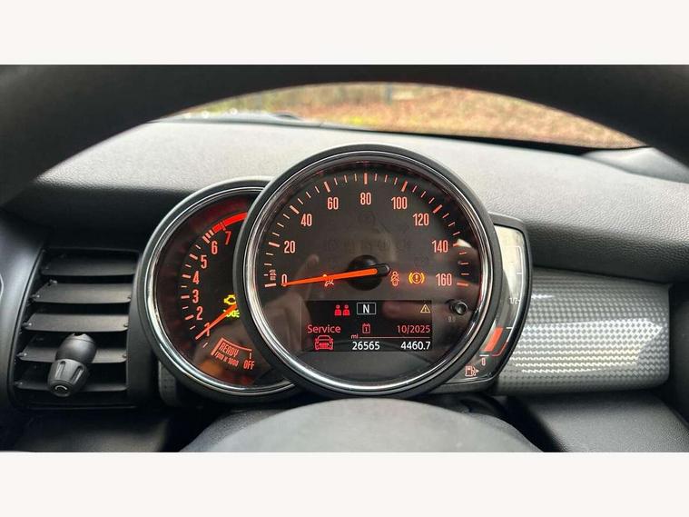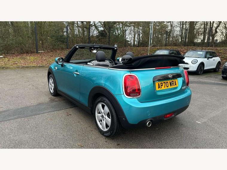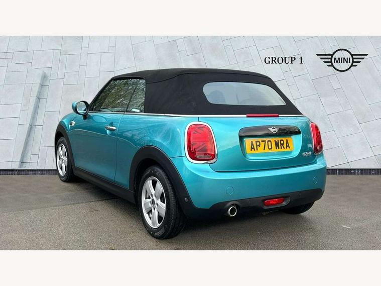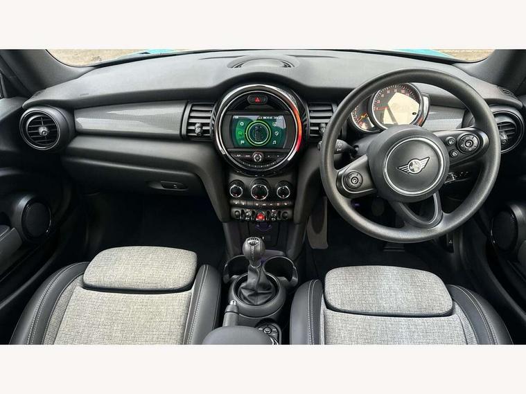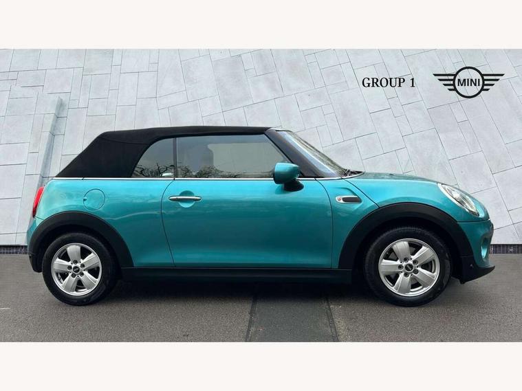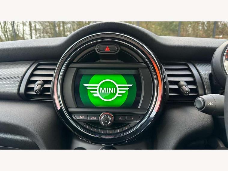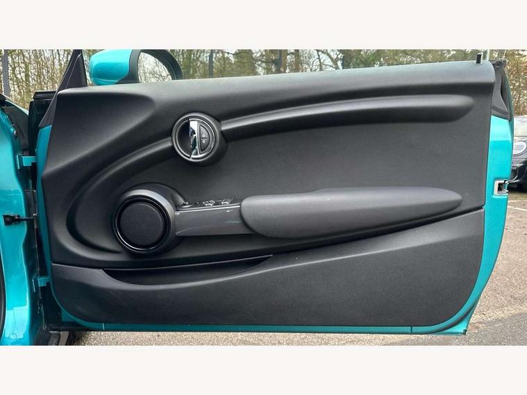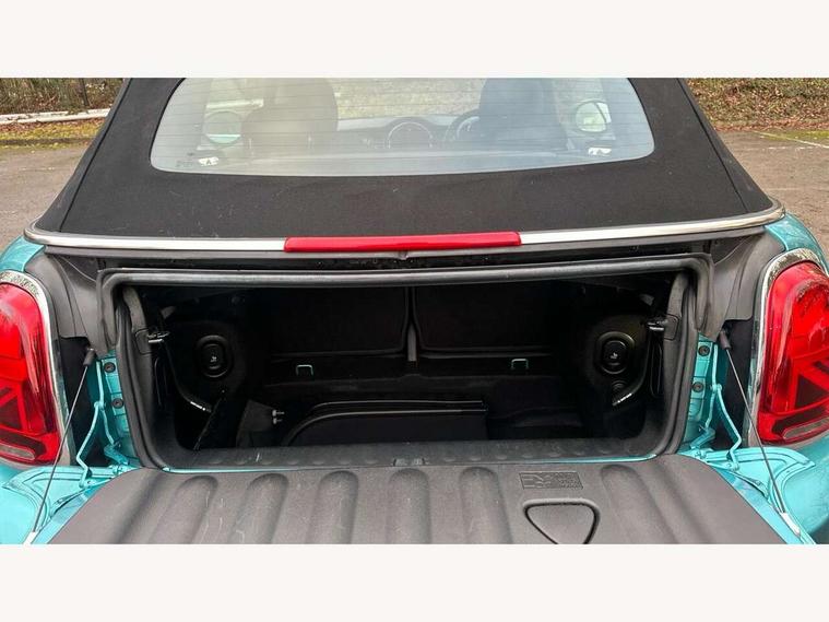 Automatic start/stop function with brake energy recuperation, Compatible mobile phone bluetooth with audio streaming, Electro-mechanical speed dependant steering assistance, Gear change indicator, Instrument cluster, Mini E-call, MINI TeleServices, On board computer, Rear park distance control, Service interval indicator, Double Vanos system, Fully variable valve control, High precision injection, 6.5" touchscreen with LED ring, FM tuner and DAB digital radio, Automatic headlight activation switch, Body colour fuel filler cap, Chrome border high gloss black slats radiator grille, Dynamic brake lights, Electric windows, Fully electric black softtop with integrated sunroof functionality, Heated rear window, Heated windscreen washer jets, LED headlight with closed ring and daytime driving lights, Left exhaust tailpipe with chrome finisher, Metal door sill strips with MINI imprint, Model logo Cooper on right of tailgate, Rain sensor window wipers, Rear fog lights, Rear LED lights with union jack design, Side scuttle panel with integrated indicator, Sun/heat protection glass, White indicator lenses, 12V Accessory socket in centre console, 4 lashing eyes in luggage compartment, 50/50 split folding rear seats, Chrome interior highlights, Colour line - Carbon black, Cupholders, Easy Load boot handles, Front and rear head restraints, Front and rear isofix with front passenger airbag deactivation, Glove compartment, Height and length steering column adjustment, Interior lighting with 12 basic colours selectable via toggle switch in roof, Leather gearshift lever and handbrake gaiters, LED reading lights, vanity mirror lights, front foot well light and spotlight on front seats, Manual air conditioning, Mechanical seat adjustment, driver seat height adjust, forward/back and front seats backrest, Mini logo projection on floor from drivers exterior mirror, Multifunction steering wheel, Storage compartments in doors, Sunvisors with vanity mirrors, Convertible pack with comfort access - Mini Convertible, 3 point seatbelts on all four seats, 6 Airbags - front, side and seat belt tensioners, Active rollover protection, Anti-lock braking system (ABS), DSC - Dynamic Stability Control, Front and rear disc brakes, Hill start assist, Single tone fanfare horn, Tyre pressure monitoring system, Alarm system with tilt sensor, monitoring doors, bonnet interior and tailgate, Electronic vehicle immobiliser, Keyless Go, Tool kit, Tyre repair kit,