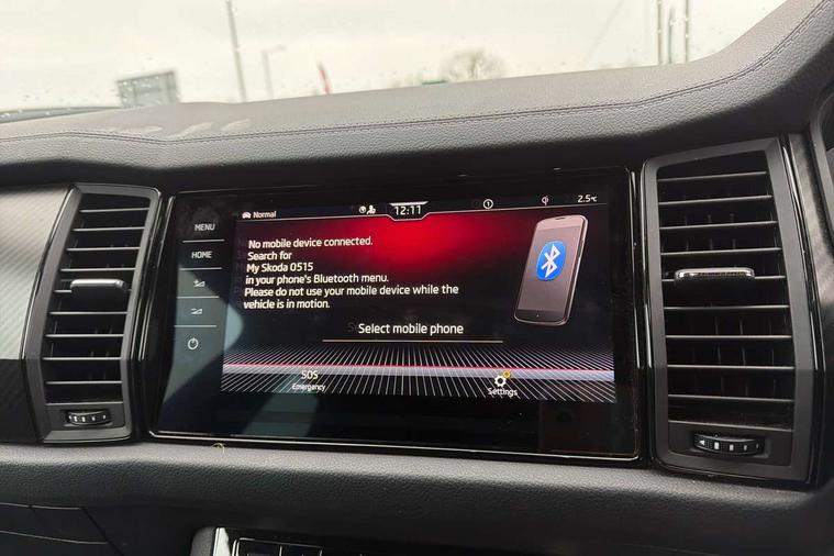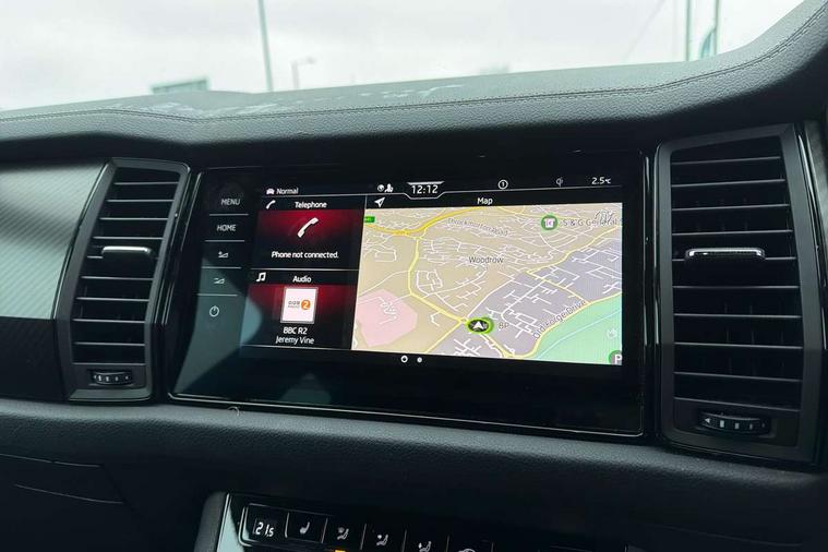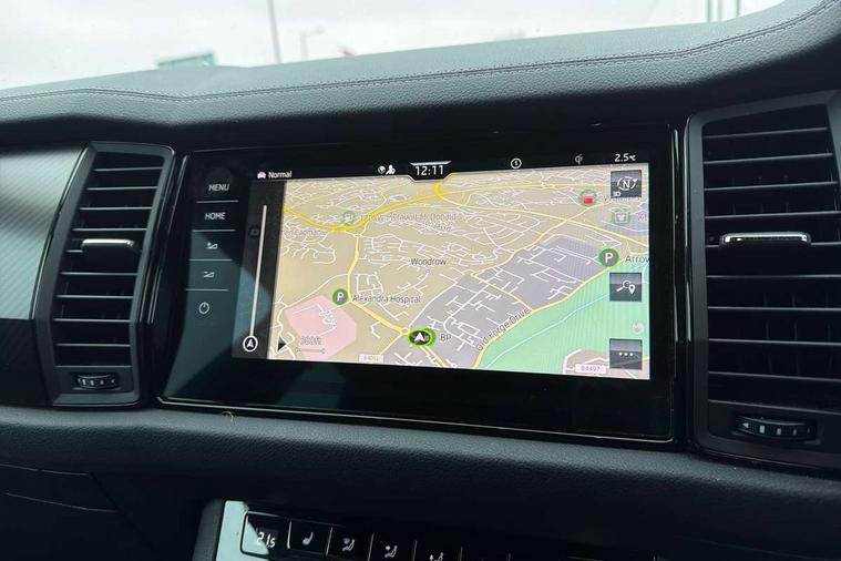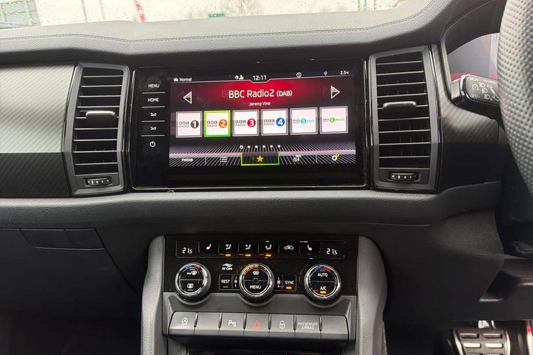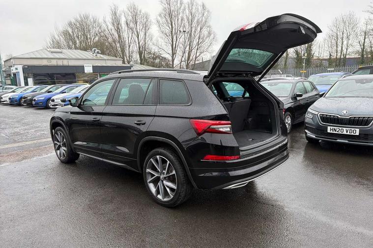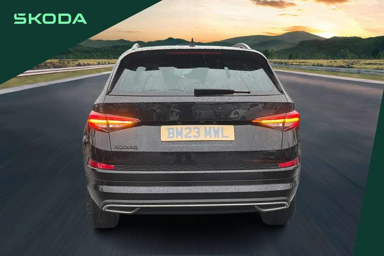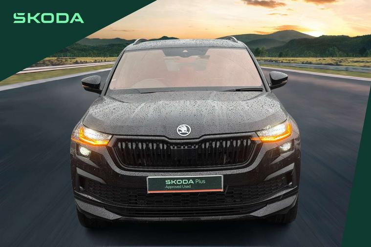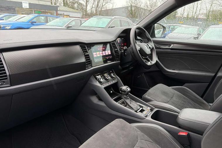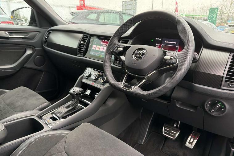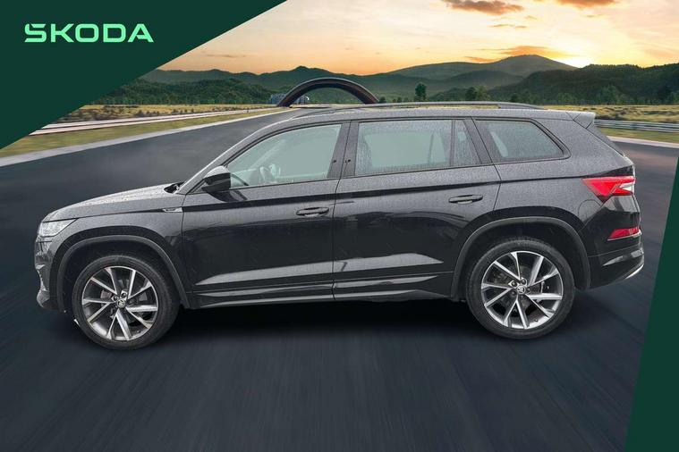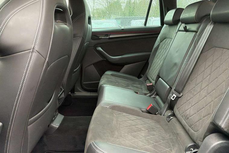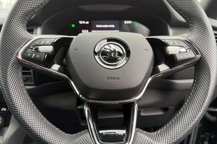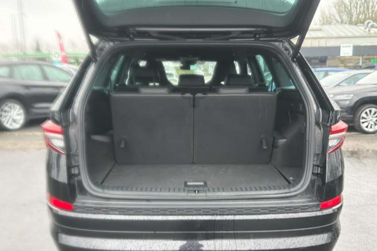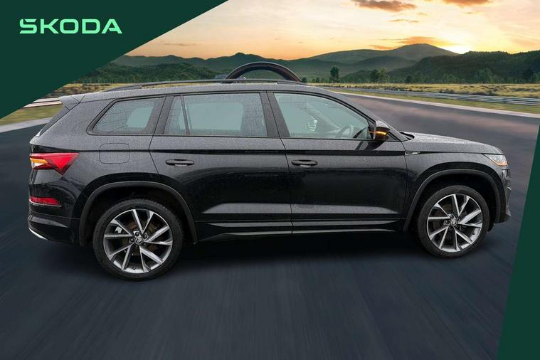 Bluetooth system, Columbus satellite navigation with 9.2" touchscreen, integrated Wi-Fi, web radio, Digital voice enhancement, e call+, ECO Stop/start function, Exterior temperature indicator, Progressive steering, Rear view camera, Smartlink wireless for apple carplay and wired for android auto, Speed limiter, Tailgate unlocking from outside, USB C Port x 2 in front centre console, Virtual Cockpit - 10.25" digital display with additional sports design, Wireless charging, 8 Speakers, DAB Digital radio, Aero front windscreen wipers with intermittent function, Aero rear window wiper, Auto dimming rear view mirror, Black roof rails, Black sports styling including front grille and window surrounds, Black wheel arch surrounds, Body colour bumpers, Body colour door handles, Electric adjustable/heated/folding door mirrors, driver side auto dimming with boarding sports and memory function, Electric front and rear windows, Extended rear spoiler with finlets in gloss black, Front fog lights, Full LED matrix headlights with AFS (adaptive front light system), cornering function and AWL (all weather lighting system), Gloss black door mirrors, Headlight washers, Heated rear window, Invisible tailpipe, LED daytime running lights, LED rear fog light, LED third brake light in rear spoiler, Light assistant (coming/leaving home/tunnel light), Off-road style lower front bumper element, Privacy glass, Rain and light sensors, Rear diffuser, Rear LED lights (high functionality) with welcome effect and dynamic indicators, Rear side wing doors, Safety reflectors on front and rear doors, Sportline badge on front fender, Sports front and rear bumpers including lower rear chrome strip, Tailgate lettering in Black, Window control switches with black trim, 12V socket in boot, 2 rails with 2 hooks, 2 seat bench in 3rd row, 3 seat bench in 2nd row, 4 foldable roof handles with rear coat hooks, 60:40 foldable rear seat with sliding adjustment and backrest angle adjustment, Aluminium pedals, Black roof headlining, Bottle holders in door panel in the 1.5 litre front and 1 litre rear, Cargo storage compartments, Chrome headlight control button, Chrome interior door handles, Coat hooks on B pillar, Covered storage compartment on driver side, Decorative door sill covers, Front and rear door armrest with black adductor trim, Front centre armrest with storage compartment, cup holder and 12V socket, Front courtesy lights, Gear shift lever with chrome frame and black gloss insert, Grey stitching in front and rear armrests and door armrests + door inserts, Height adjustable front headrests, Illuminated and cooled glovebox, Illuminated luggage compartment, Isofix child seat fittings in outer rear seats with top tether, Manually adjustable steering column, Microsuede door panels, Net programme in boot (1x horizontal Net, 2x vertical Nets), Overhead glasses storage compartment, Pollen filter, Rear centre armrest with cupholders, Single front passenger seat, Sliding trunk cover, Small Bags on the inner sides of the front backrests, Sports seats, Sunvisors with illuminated vanity mirrors, Three rear height adjustable headrests, Ticket holder on A Pillar, Umbrella in door panel, Variable boot floor, LED Interior light pack - Kodiaq, Auto door release and activation of warning lights in the event of an accident, Child locks on rear doors, Driver and front passenger airbag with knee airbag and front passenger airbag deactivation, Electronic parking brake with hill start assist, Emergency rear braking signal, ESC (incl. ABS+MSR+ASR+EDS+HBA+DSR+RBS+MKB), Front assist with autonomous emergency braking, Front side airbags with curtain airbags, Fuel cut off safety device, Height adjustable front 3 point seatbelts + pretensioners, Hill hold control, Rear disc brakes, Safety vest holder in door, Seat belt reminder for all seats, Three point rear seat belts, Two tone horn, Tyre pressure monitor, Alarm with interior monitoring and tilt sensor with safe function, Anti-theft wheel bolts, Immobiliser, Keyless entry and start system (KESSY), Remote central locking with 2 keys, Black air vent surround, Carbon finish dashboard and door inserts, Grey stitching in dashboard, 20" Vega Anthracite alloy wheels, Temporary spare wheel (space saver),