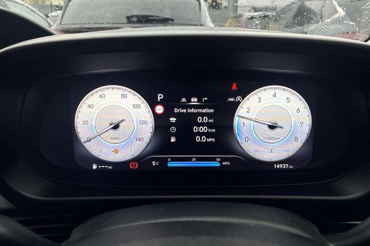 10.25" touchscreen + navigation, 2nd Gen eCall, 8" Touchscreen DAB Radio with android auto and apple carplay, Cruise control + speed limiter, Forward collision assist with car, pedestrian and cycle detection, Intelligent speed assist, Intelligent speed limit warning, Lane follow assist, Lane keep assist, PAS, Rear parking sensor, Rear view camera with dynamic guidelines, USB C port front, Automatic headlights with dusk sensor, Electric adjustable heated door mirrors, Front grille mesh pattern design, High beam assist, LED 3rd brake light, LED daytime running lights, LED Headlights, LED taillights, Rain sensor, Rear side wing doors, Rear wiper, Repositioned flat metal hyundai emblem, Trailer wiring, 3 seat bench in 2nd row, Adjustable head restraints, Air conditioning, Cloth upholstery, Floor mats, Leather steering wheel, Single front passenger seat, 3x3 point rear seatbelts, ABS with front and rear diagonally split, Autonomous emergency braking, Child locks on rear doors, Front ventilated disc brakes, Rear solid disc brakes, Tyre pressure monitoring system, 16" alloy wheels, Tyre repair kit,
