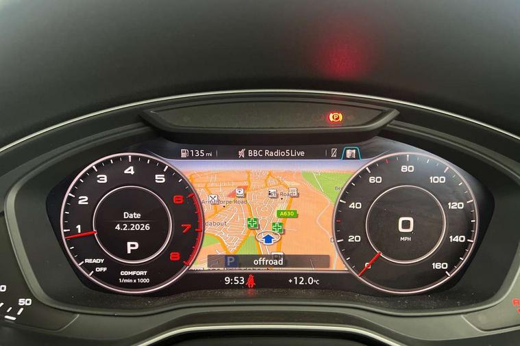 Audi drive select, Audi parking system plus with front and rear sensors, Audi smartphone interface, Colour driver's information system display, Electric tailgate release, Electro-mechanical PAS, Mobile telephone preparation - bluetooth interface, SD card based satellite navigation system, Service interval indicator, Voice control system, 2 x USB charging port with aux input socket, CD player, DAB Digital radio, MMI radio plus with 7" colour MMI screen and MMI controller, Two SDXC card slots, Air inlets in titanium black, Auto dimming rear view mirror with acoustic windscreen, Body colour bumpers, Body coloured door mirrors, Chrome exhaust tailpipes, Electric adjustable heated door mirrors, Electric front windows, Front fog lights, Heat insulated glass, Rain and light sensors, S Line body styling, S line sill plates, Twilight grey matt radiator grille in matt aluminium inlay, Twilight grey matt rear diffuser, 3 seat rear bench, Adjustable steering column, Automatic tri-zone climate control, Black headlining, Boot mat, Centre console with cupholders, Front centre armrest, Front head restraints, Front sports seats including electric lumbar support, Front/rear floor mats, Illuminated door sills, Isofix front passenger and rear seat preparation, Jack and tool kit, Perforated leather gearknob, Rear headrests, Split folding rear seat, Stainless steel pedals and foot rest, Top tether anchor plate for isofix child seat, Non Smokers pack, 3x3 point rear seatbelts, ABS, ASR, Driver/Front Passenger airbags, Electromechanical parking brake, ESP + traction control, First aid kit, Front and rear curtain airbags, Front passenger airbag deactivation, Height adjustable front seatbelts, Multi-Collision braking, Pre-sense city emergency braking system, Seatbelt warning, Side airbags, Tyre pressure monitor, Warning triangle, Anti theft system, Immobiliser, Keyless start, Locking wheel bolts, Remote central locking, Contrast stitching, Space saver spare wheel,