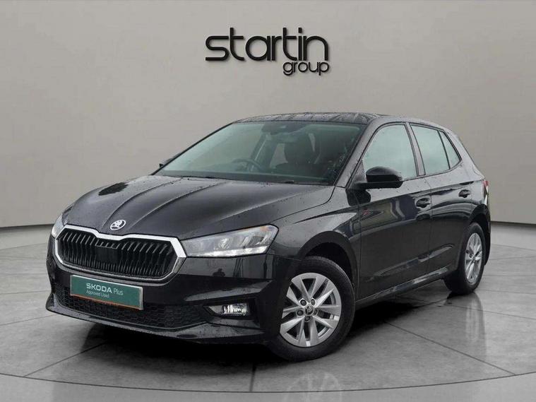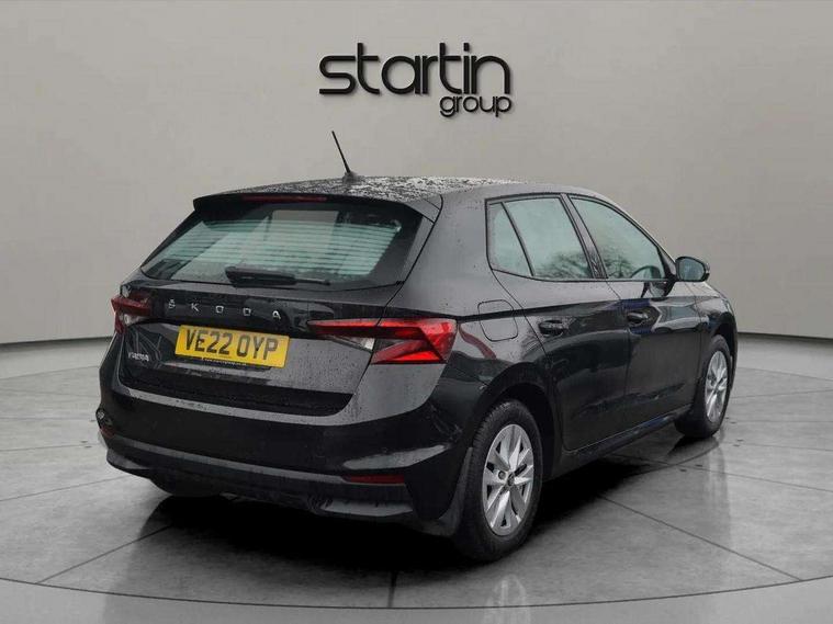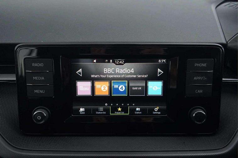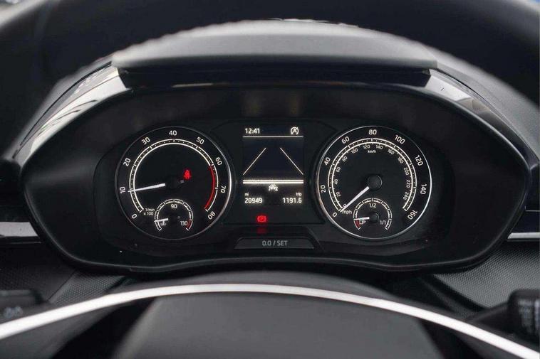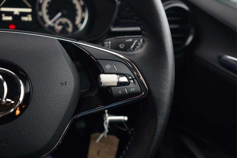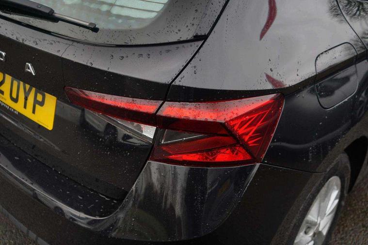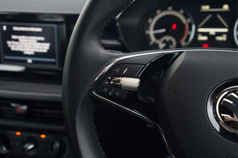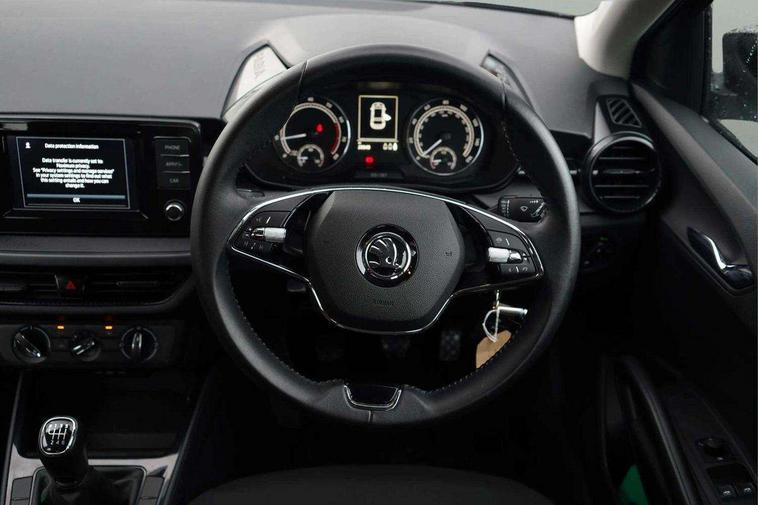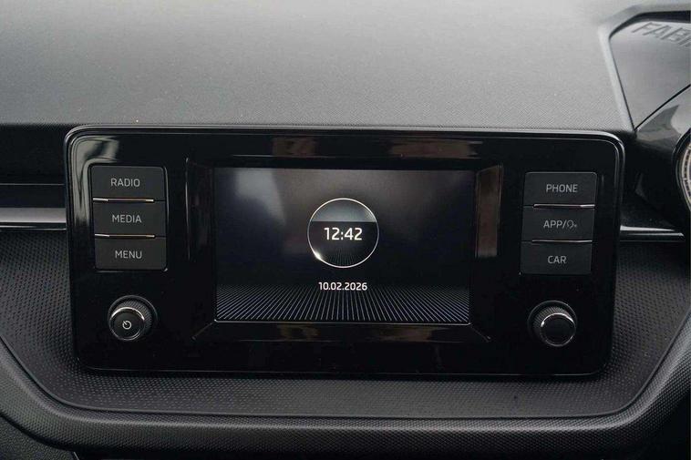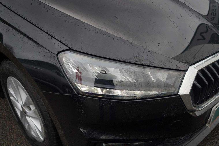 Bluetooth connection, Driver alert system - DAS, Electromechanical power steering, Exterior temperature gauge, Lane assist including road edge detection, Multifunction trip computer in black and white, Service interval indicator, SmartLink, Speed limiter, 2x USB-C in the front (for data transmission and charging), 4 speakers in front, Auxiliary socket for external MP3 player, DAB digital radio reception, Radio Swing with 6.5" colour display, Basic LED Headlights, Basic rear light, Body colour door mirrors, Body coloured bumpers, Dimming rear view mirror with black frame, Door mirror integrated indicators, Electrically adjustable and heated door mirrors, Electrically adjustable front windows with function auto up/down, Front fog lights, Front window wiper intermittent control, Headlight range control - Automatic, Ice scraper in fuel cap, LED daytime running lights with coming and leaving home feature, Mechanical adjustable rear windows, Rain sensor, Rear LED fog light, Rear side wing doors, Rear window wiper with washing nozzles, Roof mounted spoiler, SKODA tailgate lettering in chrome, Third brake light, 2 reading lights in front and 2 reading lights in rear, 2 spoke leather multifunction steering wheel, 3 rear headrests, Backrest split and folding, Central console with fixed cup holder and storage box, Chrome handbrake release button, Fabric upholstery, Gearshift knob/handle in leather, Grain satin black interior door handles, Hand brake lever handle in leather, Height adjustable front headrests, Height adjustable front seats, Height adjustable steering wheel, ISOFIX and TopTether anchorage points to the outer rear seats, ISOFIX and TopTether on the front passenger seat, Luggage compartment lighting, Manual air conditioning, Manually adjustable lumbar support in front seats, Pollen filter, Rear seat bench unsplit, Single front passenger seat, Storm grey headlining, Sun visors with mirror and airbag label on passenger side, Ticket holder, 3-point height adjustable front seats belts with pretensioner and force limiter, Automatic warning lights in case of crash, Driver and passengers airbag with switch off function, e-Call+, ESC including ABS, MSR, ASR, EDS, HBA and XDS, Front and rear seat belt warning, FRONT ASSIST (AEB City and AEB Inter Urban), Front side airbags, Head airbags, One tone horn, Pedestrian protection, Three rear 3-points safety seat belts with pretensioner and force limiter including stop function for outer rear seat belts, Tyre pressure monitoring system, Anti-theft alarm system including immobiliser, interior monitoring, backup horn, and towing protection, Central locking with radio remote control, interior controls, SAFE function and 2 foldable keys, Black painted air vents, Glossy black decorative trim, Grain satin black central console cover, Grain satin black lower decorative trim, Satin black door and side trim panel in front, Anti-theft wheel bolts protection, Super-low rolling resistance tyres,
