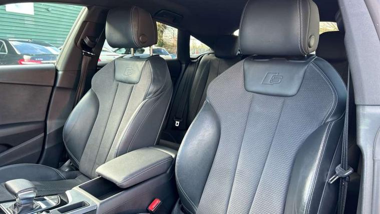 Audi connect safety and service (e-call), Audi connect with Amazon Alexa Integration, Audi drive select (Auto, Comfort, Dynamic and Individual), Audi parking system plus with front and rear sensors, Audi smartphone interface, Audi virtual cockpit - 12.3" full colour digital instrument cluster, vehicle/engine speed, Radio/media information+Driver assistance systems, Automatic start-stop system with coasting functionality and efficiency programme, Bluetooth interface, Electro-mechanical power steering, Email, calendar and text messages displayed via MMI, MMI nav+ with MMI touch - 10.1" high resolution MMI display, touch sensitive, 3D map, route/country info, dynamic route guide, personal route assist, Power operated tailgate, Rear view camera, Service interval indicator, Voice control system, Sports suspension lowered by 23mm, 8 passive loudspeakers, CD player, DAB digital radio reception, Two additional USB ports for rear passenger in rear centre console, Two SDXC card slots, Audi matrix LED headlights with LED rear lights + dynamic front and rear indicators, Auto dimming door mirrors, Auto dimming rear view mirror, Body colour bumpers, Body colour door handles, Body colour front spoiler lip, Body colour side sill trim, Body coloured door mirrors, Electric adjustable heated door mirrors, Electric folding door mirrors, Electric front windows, Front fog lights, Honeycomb structure radiator grille in grained matt black, Kerb-view function for passenger side, LED daytime running lights, LED side indicator lights integrated into door mirrors, LED third brake light, Matt aluminium silver tailpipe trim, Privacy glass, Rain and light sensors, Rear side wing doors, S line badges on front wings, S line front and rear bumpers with side skirts, S Line rear diffuser in matt titanium black with trim strip in matt aluminium silver, Side air inlets in grained matt black with matt aluminium silver inlay, Variable front intermittent wipers, Windscreen with acoustic glazing, 3 seat bench in 2nd row, 4 way electric lumbar support for driver and front passenger, 40/20/40 split folding 3 seater rear bench seat, Adjustable steering column, Black cloth headlining, Black perforated leather gearknob, Contrast stitching on seats, steering wheel and gear lever gaiter, Deluxe 3 zone electronic climate control, Front centre armrest, Front head restraints, Front/rear floor mats, Heated front seats, Illuminated door sill trim with S logo, ISOFIX child seat mounting and top tether, Luggage compartment mat, Manual seat adjustment, Rear centre armrest, Rear headrests, Single front passenger seat, Stainless steel pedals, Sunvisors with vanity mirrors, Tool kit, LED interior light pack - A5/RS5, 3x3 point rear seatbelts, 6 airbags - Driver, front passenger, curtain and side airbags, Electromechanical parking brake, Electronic Stabilisation Control (ESC) including ABS, ASR and EDL, Front passenger airbag deactivation, Height adjustable front seatbelts, Hill hold assist, Manual child lock in rear doors, Multi collision brake assist, Pop-up bonnet for pedestrian protection, Pre sense city, Seatbelt monitoring, Tyre pressure warning, Variable restraint system, Warning triangle and first aid kit, Anti theft alarm system, Anti theft wheel bolts, Immobiliser, Keyless Go, Remote central locking, Matt brushed aluminium inlays, Tyre repair kit,