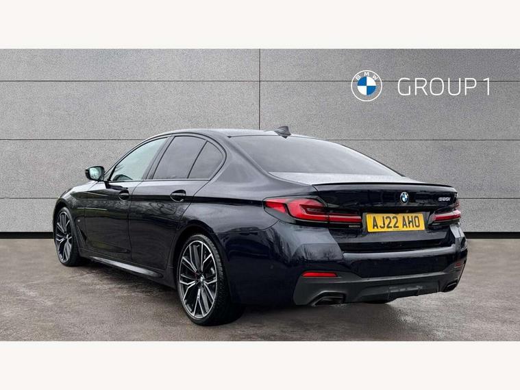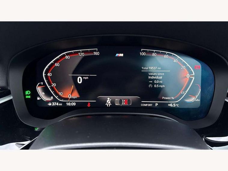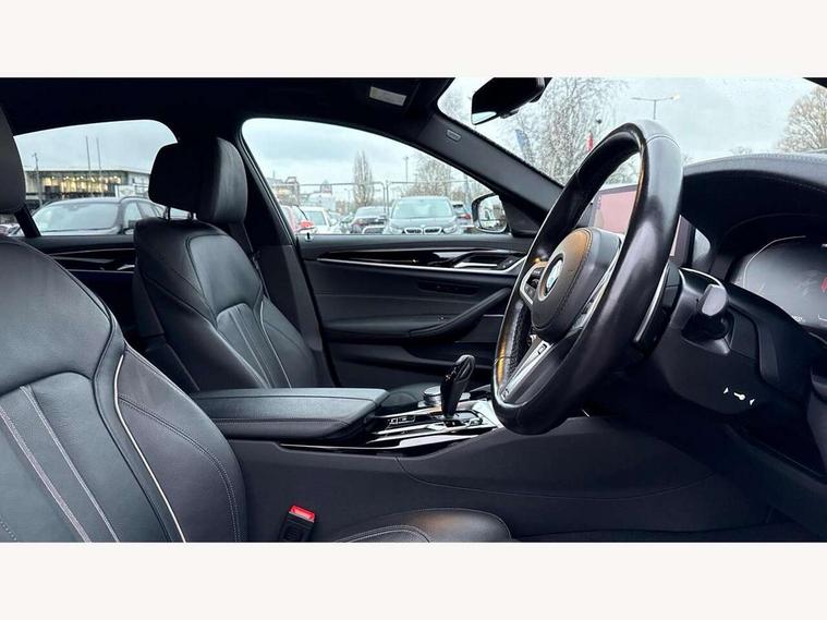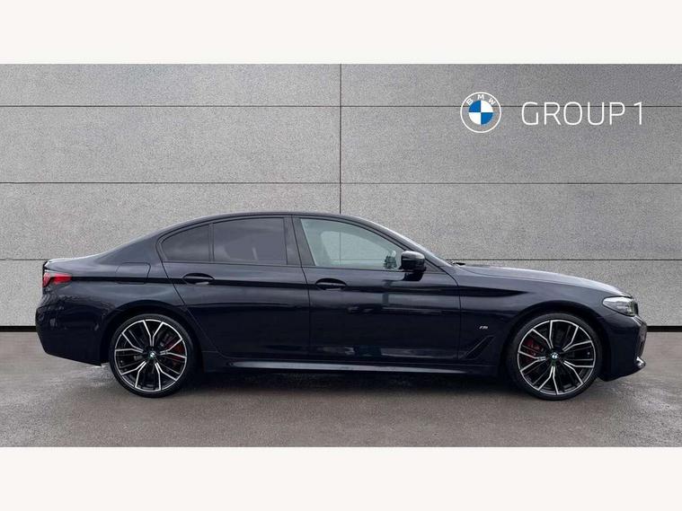 32GB hard disc drive (HDD) memory, Active Guard, Bluetooth connection, BMW ConnectedDrive online services, BMW Live Cockpit Professional sat nav system with 12.3" instrument display and high resolution control display, BMW Teleservices, Brake pad wear indicator, Cruise control with brake assist, Driving experience switch, eCall emergency call system, Electric Power Steering (EPS) with Servotronic, iDrive controller with shortcut buttons, Intelligent emergency call, Multifunctional instrument panel, Oil sensor for level and grade, On board computer inc. average speed, fuel consumption, liquid crystal Info display, journey computer, outside temperature display, personal profile, On-board diagnosis - OBD, Powered by Operating System 7.0, Service interval indicator, Speed limiting function, Stop/start button, 48V Mild hybrid technology, Drive performance control with ECO PRO comfort + sport mode, Engine cover with twin turbo designation, M sport suspension, Petrol Particulate Filter, Steptronic sport transmission with gearshift paddle switches on steering wheel, DAB Digital radio, Favourite buttons, Acoustic glazing, All round anti-corrosion system, Automatic windscreen wipers and automatic headlight, Automatically dimming rear view mirror, BMW Individual high gloss shadow line includes exterior mirror frame, window frame surround, B pillar finish, air breather in high gloss black, Body colour door handles, Body coloured bumpers, Door handle illumination, Dynamic brake lights with LED technology, Electric front and rear windows with fingertip open/close + anti-trap facility and comfort closing function, Electrically adjustable and heated exterior mirrors includes integrated direction indicators and automatic parking function, Folding exterior side mirror with auto- dimming, Follow me home headlight function, Heated windscreen washer jets, High gloss black active air stream kidney grille, LED daytime running lights, LED Headlights, LED third brake light, M designation on front side panels, left and right in chrome, M Sport exterior styling, Preparation for high beam assistant, Rear boot, Rear side wing doors, Trapezoidal visible exhaust tailpipes, 12V power socket in front and rear, 3 seat bench in 2nd row, Armrest - front and rear integrated door trim, centre console includes storage compartment, rear centre includes 2 cupholders, Child seat ISOFIX attachment with rear outer seats includes top tether, Cup holders (2 front and 2 rear), Front and rear footwell lights, Front reading lights, Height and length adjustable steering column and activation via lateral lever on the steering column, Lockable glove compartment with light, M door sill finishers, M specific pedals, M specific velour floor mats, Multifunction controls for leather steering wheel, Rear headrests, Single front passenger seat, Three spoke sport M leather steering wheel, Ambient lighting pack - 5 Series, Connected package professional - 5 Series, M Aerodynamic pack - 5 Series, Parking assistant pack - 5 Series, Airbags - driver/front passenger, rear and side, first and second row seats head airbags, front passenger seat airbag deactivation, Anti-lock braking system (ABS), Automatic Stability Control (ASC), Brake assist function, Brake energy regeneration, Cornering brake control (CBC), Crash sensor activating central locking release, hazard warning lights, fuel cut off and interior lighting, Deformation zones - front and rear with door reinforcements and bumpers up to 2.5 mph, DSC - Dynamic Stability Control, Dynamic brake control, Dynamic Traction Control - DTC, Electromechanical parking brake with automatic drive away release and auto hold function, Electronic brake force distribution, Engine drag torque control, Front and rear brake discs with interior ventilation, Front head restraints with anti-whiplash, Hill start assist, Mechanical child proof lock on rear doors, Passive protection for pedestrians, Rear door child safety locks, Side impact protection, Three point seat belts for all four seats, Two tone horn, Tyre pressure indicator, Warning triangle and first aid kit, Alarm system (Thatcham 1) with remote control and electronic engine immobiliser, Locking wheel bolts,