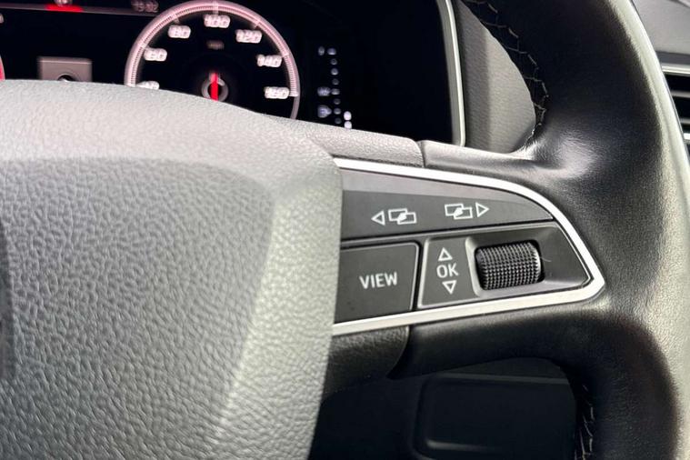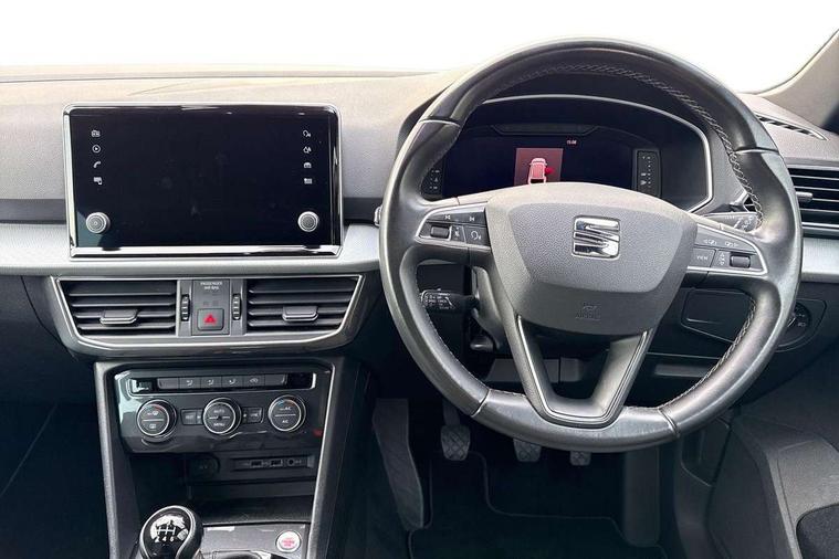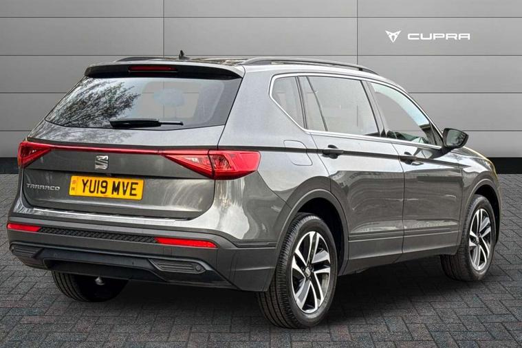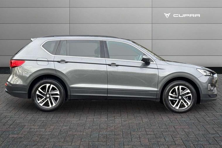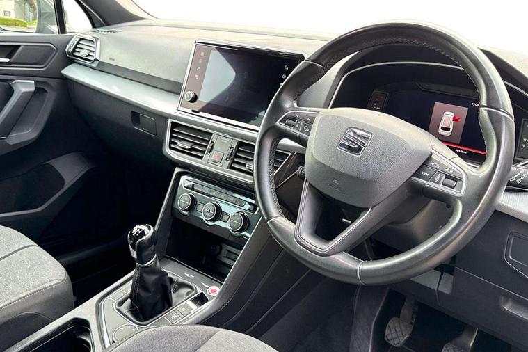 'Lights On' Reminder warning buzzer, Cruise control, Digital clock, Digital cockpit, e-Call (emergency call), Front assist city emergency braking and pedestrian protection, Full Link Smartphone Integration with Mirror Link, Apple Car Play, Google Android Auto, Gear recommendation indicator, Lane assist, Low fuel warning light, Outside temperature gauge, Rear parking sensor, Rear view camera, RPM counter, SEAT Drive profile - 4 different modes, progressive steering, 4Drive versions with off-road/snow, steering response, throttle response, gear shifts, Trip computer, Wash water level indicator, Wireless Smartphone charger, Comfort suspension, XDS electronic differential lock, Beats audio system, Navigation system with 8" colour touchscreen with proximity sensor, 3D Map display, DAB, AM/FM Radio, 3 USB, Aux-in, 8 speakers, SD card, Auto dimming rear view mirror, Auto headlights with automatic coming and leaving home function, Automatic headlight adjustment, Black bumpers, Black roof rails, Body colour door mirrors and handles, Chrome front grille frame, Dark tinted windows and white ambient light in front and rear door panels, Electric front/rear windows, Exterior black mouldings, Front halogen fog lights with cornering function, Fuel door linked to central locking, Hidden exhaust pipe, LED daytime running lights, LED headlights with lens and taillights, Power folding and adjustable door mirrors, Rain sensing wipers, Rear fog lights, Rear wash/wipe, 12V socket, 12v socket in front, 3 zone climate control, Ambient spot lighting and front footwell illumination, Black interior roof, Centre armrest in front with air outlet in rear, Chrome dashboard detailing, Cloth upholstery, Comfort front seats, Driver and passenger sunvisor with covered and illuminated mirror, Driver/passenger lumbar adjustment, Easy fold rear seat system - second and third row, Folding table on front seat breakrests, Forward and backward adjustable seats 2nd row, Four cargo rings in the boot, Front courtesy light with front reading lights, Front cupholders, Front seat back storage pockets, Height adjustable driver's seat, Height adjustable front headrests, Height adjustable passenger seat, Illuminated boot, Instrument lighting with brightness control, ISOFIX points in outer 2nd row seats and front passenger seat with top tether anchorage points, Leather gear knob, Leather steering wheel, Leather wrapped multifunction steering wheel, Luggage compartment floor with split function, Overhead storage compartment, Rear armrest and easy back seat release mechanism from boot, Rear reading lights, Sliding boot cover, Tool kit, Under front seats storage tray, Driving assistance and safety pack - Tarraco, Active front head restraints, Anti-lock brakes, Drivers knee airbag, Electronic parking brake with auto hold, Electronic stability control, Front passenger airbag deactivation, Front side airbags, Hill hold control, Seatbelt reminders for all seats, Tiredness recognition system, Traction control, Two curtain airbags, Tyre pressure monitoring system, Alarm, Keyless entry and go, Locking wheel bolts, Power locking and remote control with two foldable keys and opening boot selector, 18" Performance machined alloy wheels 37/1,