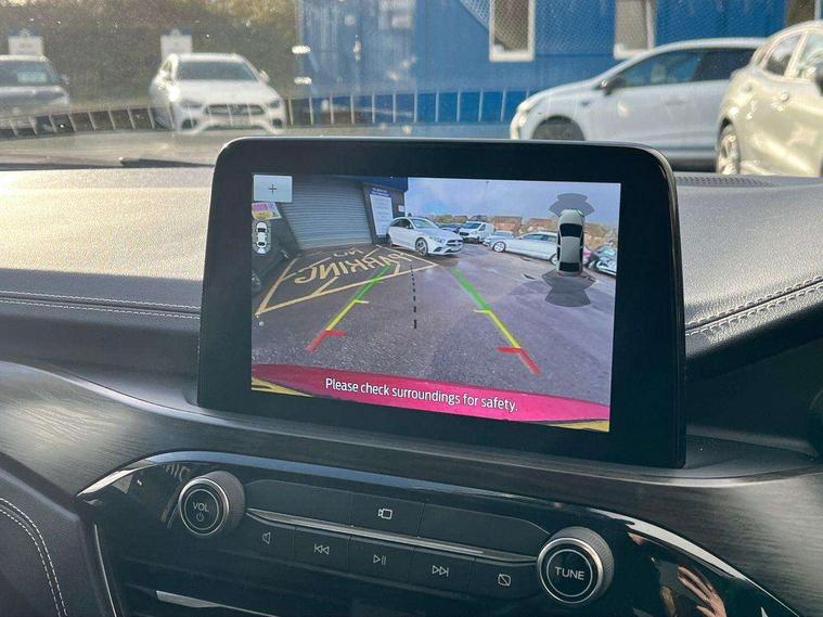 12.3" digital colour instrument cluster, Active noise cancellation, Ford easy fuel, Ford SYNC 3 with 8" TFT LCD touchscreen, App Link, andriod auto/apple carPlay, emergency assistance and navigation with Ford pass connect, Front and rear parking sensors, Geo awareness, Hands free power tailgate, Lane keeping aid with lane departure warning, Power assist steering, Rear view camera, Selectable drive modes, Service interval indicator, 3-Pin Home charge cable (230V/16A Domestic socket), 3.7 kW monophase on board charger, Standard suspension, Twist beam rear suspension, B&O premium audio system with 10 speakers and subwoofer, 2 USB ports, DAB radio/CD, Auto dimming rear view mirror, Auto headlamps with high and low beam, Auto wipers, Front and rear vignale fascia, Front LED fog lamps, LED daytime running lights, LED rear lights, Memory functionality with door mirrors, Power folding heated door mirrors with puddle lights, Power front/rear windows with global close, Privacy glass, Quickclear heated windscreen, Rear side wing doors, Rear spoiler, Rear wiper, Silver roof rails, Third brake light, Twin exhausts, Vignale body styling kit, Vignale front scuff plates, Vignale rear diffuser, 10 way power adjustable drivers seat with memory function, 2nd row sliding seats with 60:40 split, 8 way manual passenger seat including lumbar support and height adjust, Ambient lighting, Centre console with electronic parking brake, Dual electronic automatic temperature control, Front and rear head restraints, Heated passenger and driver seats, Heated rear seats, Heated steering wheel, Rear charging point, Single front passenger seat, Vignale front and rear mats, Vignale premium touch sensico steering wheel, Vignale seating with premium leather upholstery, 3x3 point rear seatbelts, Airbags - front driver/passenger, front and rear curtain, Drivers knee airbag, Electronic stability control (ESC) and ABS, Ford MyKey Gen 2 safety system, Manual child proof rear door locks, Post collision braking, Pre collision assist with autonomous emergency braking, Rear seat Occupancy alert, Tyre pressure monitoring system, Engine immobiliser, Keyless entry and Ford power start button (Keyless start), Locking wheel nuts, Remote powered central double locking doors, Thatcham category 1 alarm, Leather wrapped instrument panel, 19" 5x2 spoke luster nickel alloy wheels,