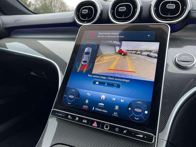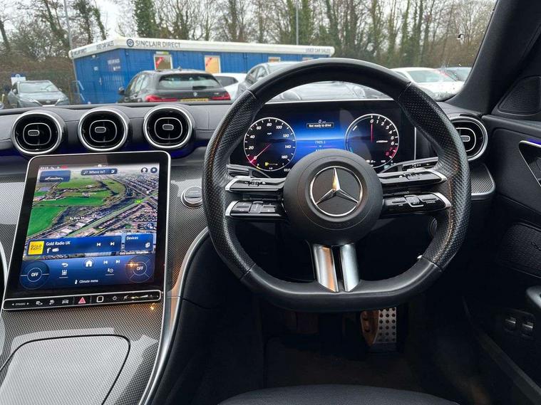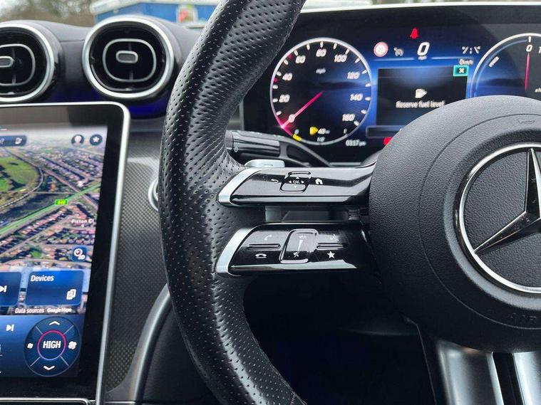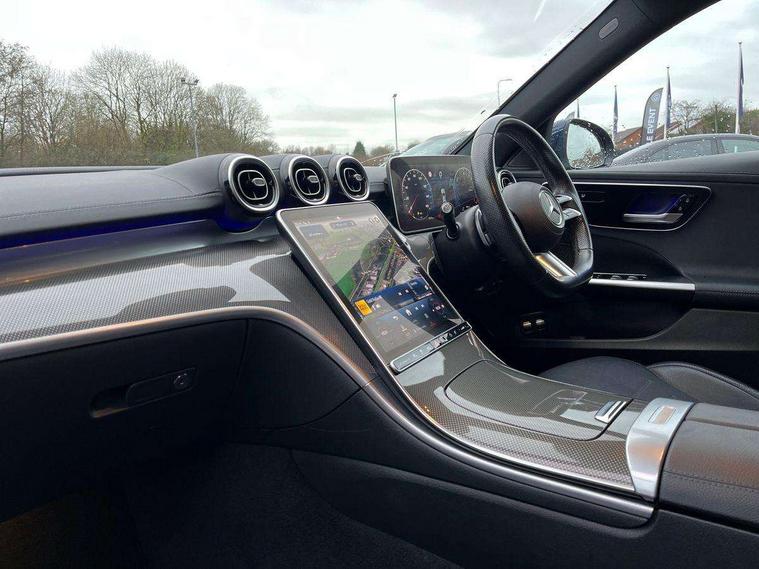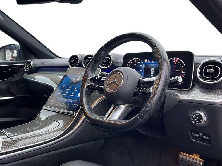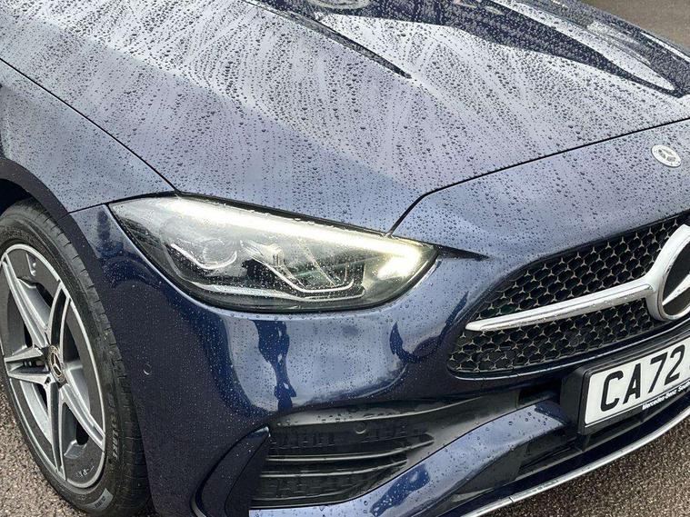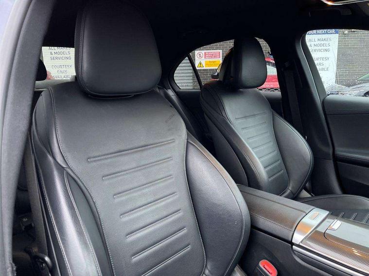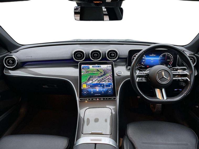 11.9" high resolution multimedia colour display, 12.3" digital instrument cluster display, Acoustic ambient protection, Active blind spot assist, Active brake assist plus, Active lane keeping assist, AMG DYNAMIC SELECT with a choice of driving modes (Slippery, Comfort, Sport, Sport+, Individual), Attention assist, Cruise control with speedtronic variable speed limiter, E-call, Extended MBUX functions, Finger print sensor, Fluorescent jacket for driver, MBUX navigation premium, MBUX voice control activated by keywords "Hey Mercedes", Mercedes connect me, Mercedes me remote services, Outside temperature gauge, Pre-installation for digital key transfer, Remote boot release, Service indicator (ASSYST), Smartphone integration, Sports direct steer speed sensitive steering, Status display for rear seat belts in instrument cluster, 11 kW AC onboard charger, 5m charging cable for household socket (mode 2), 5m charging cable for wall box/public charging stations(mode 3), 66l fuel tank with increased capacity, 9G TRONIC 9 speed automatic transmission, Agility control sports suspension and lowered by 15 mm, Petrol Particulate Filter, Sporty engine sound system, DAB Digital radio, MBUX multimedia system, Adaptive brake lights, Adaptive high beam assist, AMG body styling front apron, rear apron and side skirts, AMG front bumper with sporty air intakes and chrome elements, AMG rear bumper with high gloss chrome elements, AMG side skirts in vehicle colour, B-pillar trim in glossy black, Body coloured bumpers, Body coloured door mirrors, Chrome beltline trim, Daytime running lights, Electric windows with one touch opening/closing and obstruction sensors, Electrically adjustable and heated door mirrors, Green tinted glass, LED high performance headlamps, LED Indicators, LED tail lights, LED third brake light, Powerdomes on bonnet, Privacy glass, Radiator diamond grille with integrated Mercedes Benz star and louvre silver with chrome pins, Radio aerial integrated into rear window, Rain sensor with automatic windscreen wiper activation, Rear boot, Rear side wing doors, Side windows surround in polished aluminium, Two visible exhaust pipes integrated into rear bumper, 3 seat bench in 2nd row, 3 spoke flattened bottom AMG multifunction steering wheel in black nappa leather with chrome inserts and perforated leather in grip area, 40:20:40 split folding rear bench seat, AMG sports seats, Artico man-made leather upholstery, Audio and onboard settings control on multifunction steering wheel, Auto Mercedes-Benz child seat recognition sensor, Black air vents with silver chrome elements, Black floor mats with AMG lettering, Black roof liner, Door trim elements high gloss black with silver chrome surroundings and switches, Double cupholder in centre console, Folding rear seat backrest, Front and rear head restraints, Front centre armrest with storage compartment, Front door sills with Mercedes Benz lettering, Gearshift paddles on steering wheel, Heated front seats, Illuminated glove compartment stowage, Manually height and reach adjustable steering column, Overhead control unit in high gloss black, Rear top tether child seat ISOFIX attachment, Single front passenger seat, Sports pedals with stainless steel surfaces and rubber studs, Sunvisors with illuminated vanity mirrors, THERMATIC 2 zone automatic climate control, Interior lighting package - C Class, Mirror pack - C Class, Parking package with reversing camera - C Class, Seat comfort pack - C Class, Stowage space pack - C Class, USB package - C Class, 3 rear 3 point seatbelts, Active bonnet pedestrian safety measure which detects an impact and raises bonnet, Adaptive brake system with HOLD function and brake drying in the wet, Anti-lock braking system (ABS), Black seat belts, Brake calipers with Mercedes-Benz lettering + perforated front brake discs, Child proof door locks, Drivers knee airbag, Drivers pelvis airbag, Dual stage driver/passenger airbags, Electric parking brake, Electronic Stability Programme (ESP), Front centre airbag between driver and front passenger seats, Front side airbags, Larger brake discs on front axle, Rear seatbelt warning indicator, Sports braking system with perforated front disc brakes, Tyre pressure monitoring system, Warning triangle and first aid kit, Window airbags for driver, front passenger and rear passenger, Central locking with interior switch, automatic locking and crash sensor with emergency opening function, Chrome surround in electric key, URBAN GUARD vehicle protection (Thatcham Category 1) consisting of break-in, anti-theft alarm system (ATA), interior monitoring and tow-away protection, Artico man-made leather dashboard with contrast stitching, Centre console trim in metal weave, 18" AMG 5 spoke design aerodynamically optimised alloy wheels painted in tantalite grey with high sheen finish, Summer tyres, TIREFIT with tyre inflation compressor,
