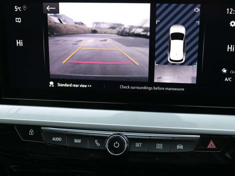 12" digital instrument cluster, Automatic adaptive cruise control, Central facia display with digital clock, outside air temperature and audio information, Driver drowsiness alert system, Engine start/stop button, Exterior temperature display, Front and rear parking distance sensors, Front camera system, Lane keep assist system (LAS) with Lane departure warning system (LDWS), Lights on audible warning, Multi function trip computer, Panoramic rear view camera, Power assisted speed sensitive steering, Side blind spot alert and flank guard, Smartphone integration compatible with Apple CarPlay and Android Auto, Speed sign recognition, Start/stop system, Vauxhall connect with e-Call, 6 speed manual transmission, Bluetooth A2DP audio streaming function (Advanced audio distribuition profile), Flexible Roof Mounted Radio Aerial, Front USB connection, Mobile phone portal - bluetooth connect, vehicle microphone, handsfree calls, SMS read out and reply, phone book access, Multimedia Navi pro infotainment with satellite nav, 10" colour touchscreen, 6 speakers, DAB radio, 12" instrument panel, Apple carplay/Android auto, Steering wheel mounted controls, Two rear USB sockets, Adaptive brake lights, Automatic lighting control with tunnel detection, Automatically dimming anti dazzle rear view mirror, Black door mirror housings, Black rear roof spoiler, Body colour door handles, Body colour front and rear bumpers, Chrome effect skid plates, Chrome effect upper window moulding, Electrically adjustable, heated and folding door mirrors, Electrically operated front and rear windows with safety auto reverse and one touch up/down facility, Hazard warning lights, Heated rear window+rear wash/wipe, High beam assist, LED 3rd brake light, LED daytime running lights, LED front fog lamps, LED side repeat indicators, LED tail lights, Manual headlamp level control, Rear foglight, Rear side wing doors, Reversing light, Solar heat absorbing windows, Solar heat absorbing windscreen and windows, Two speed rain-sensitive windscreen wipers with variable intermittent wipe, Variable front intermittent wipers, Windscreen and side window demist vents, 12V Accessory socket, 3 seat bench in 2nd row, 3 spoke flat bottomed leather steering wheel with satin chrome bezel, 4 speed fan with illuminated controls, 6 way manual adjustable driver fore/aft, up/down with reclining seatback, 6 way manual adjustable front passenger fore/aft, up/down with reclining seatback, Air recirculation system, Cabin particulate filter - removes dust, airborne particles and pollen, Centre console with two cup holders at front and one in rear, Chrome effect interior door handles, Door pockets with two litre capacity, Driver and passenger sun visors with vanity mirror, Electronic climate control (ECC), Fabric/Leather effect upholstery, Four adjustable facia vents, Four load restraint lashing eyes, Front centre armrest with storage, Front map reading lights, Front seat back storage pockets, Fully carpeted load area, Heated front seats, Heated steering wheel, Height adjustable front/rear head restraints, Illuminated load area, Interior courtesy light, Interior tailgate handle, Luggage compartment cover, Luggage compartment lighting, Reach + rake adjustable steering column, Single front passenger seat, Twin gas assisted tailgate struts, 2x Isofix child seat fitting on outer rear seats, 3x3 point rear seat belts, Anti-lock braking system (ABS), Automatic emergency city braking, Child proof locks on rear doors, Cornering brake control, Deactivation switch for front passenger front and side impact airbags, Drag torque control, Driver and front passenger airbags, front seat side impact airbags, full size curtain airbags, Electronic brake force distribution, Electronic Stability Programme (ESP), Emergency brake assist, Forward collision alert at all speed, Hill start assist, Inertia reel lap and diagonal seatbelts for all seats, Seatbelt unfastened audible warning and warning light, Straight line stability control, Traction control, Tyre pressure monitoring system, Electronically protected audio equipment, Freewheeling door locks, Immobiliser, Key left in ignition audible warning, Keyless entry and start, Locking wheel nuts, Remote control central locking, Remote control ultrasonic security alarm system, Visible vehicle identification number, Atlantis black trim inserts of front doors, Black facia with silver trim insert, Instrument panel bar in Light Gravel, 17" bi colour alloy wheels,