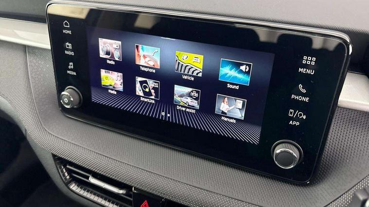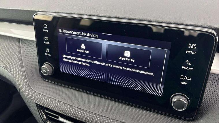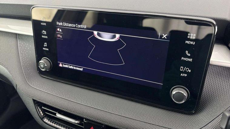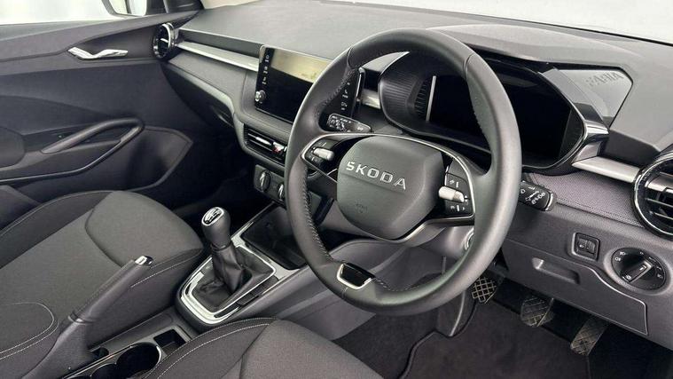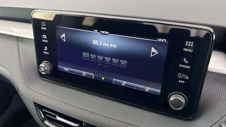 Advanced driver attention and drowsiness monitor, Bluetooth connection, Electromechanical power steering, Exterior temperature gauge, Service interval indicator, Traffic sign recognition, Virtual cockpit with 10.25" colour display, Wireless SmartLink for Apple CarPlay and Android Auto, 6 Speakers (4 in front and 2 in rear), Auxiliary socket for external MP3 player, DAB digital radio reception, Body coloured bumpers, Dimming rear view mirror with black frame, Door mirror integrated indicators, Front and rear electric windows, Front window wiper intermittent control, Headlight range control - Automatic, Ice scraper in fuel cap, LED daytime running lights with coming and leaving home feature, LED rear lights, Privacy glass, Rear LED fog light, Rear side wing doors, Rear window wiper with washing nozzles, Roof mounted spoiler, SKODA tailgate lettering in chrome, Third brake light, 2 reading lights in front and 2 reading lights in rear, 3 rear headrests, Backrest split and folding, Central console with removable cup holder and storage box, Chrome handbrake release button, Fabric upholstery, Front centre armrest, Gearshift knob/handle in leather, Grain satin black interior door handles, Hand brake lever handle in leather, Height adjustable front headrests, Height adjustable front seats, Height adjustable steering wheel, ISOFIX and TopTether anchorage points to the outer rear seats, ISOFIX and TopTether on the front passenger seat, Luggage compartment lighting, Manually adjustable lumbar support in front seats, Pollen filter, Rear seat bench unsplit, Single front passenger seat, Storm grey headlining, Sun visors with mirror and airbag label on passenger side, Textile floor mats, Ticket holder, Umbrella in drivers door, 3-point height adjustable front seats belts with pretensioner and force limiter, Automatic warning lights in case of crash, Driver and passengers airbag with switch off function, e-Call+, ESC including ABS, MSR, ASR, EDS, HBA and XDS, Front and rear seat belt warning, FRONT ASSIST (AEB City and AEB Inter Urban), Front side airbags, Head airbags, One tone horn, Pedestrian protection, Three rear 3-points safety seat belts with pretensioner and force limiter including stop function for outer rear seat belts, Tyre pressure monitoring system, Anti-theft alarm system including immobiliser, interior monitoring, backup horn, and towing protection, Central locking with radio remote control, interior controls, SAFE function and 2 foldable keys, Colour Edition air vents, Grain satin black central console cover, Metallic grey upper decorative trim, Satin black door and side trim panel in front, Textile Kota grey lower decorative inserts, Anti-theft wheel bolts protection, Super-low rolling resistance tyres,