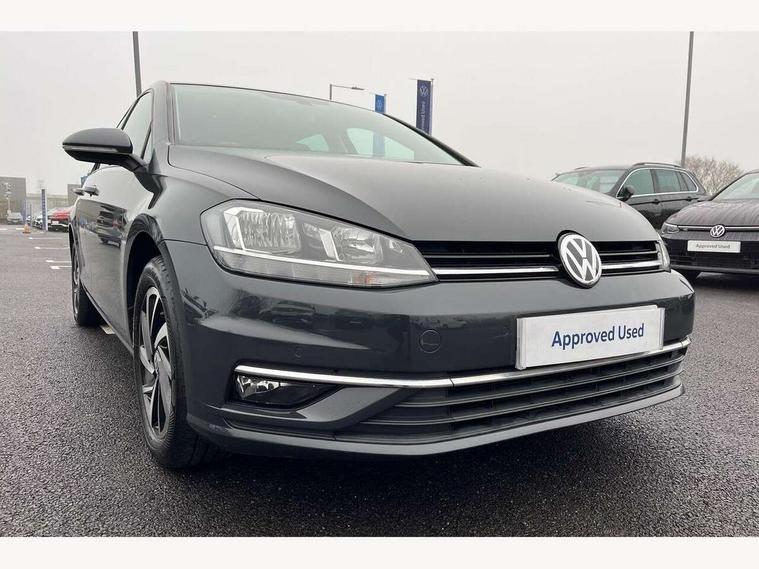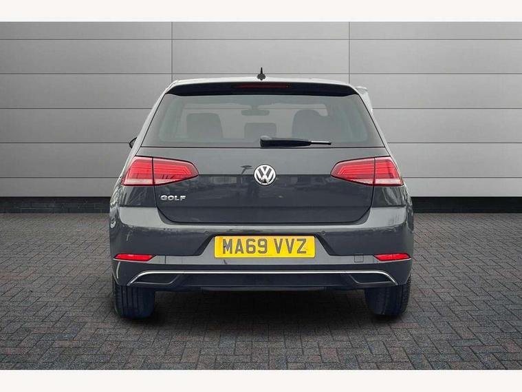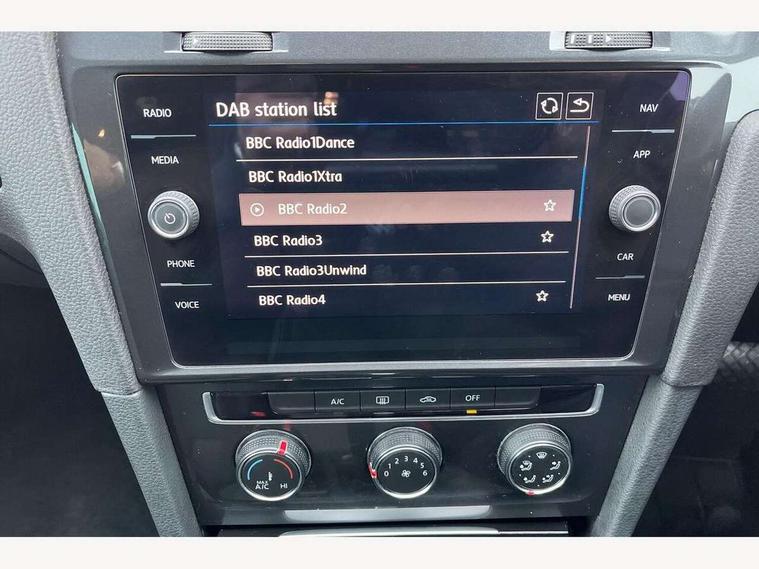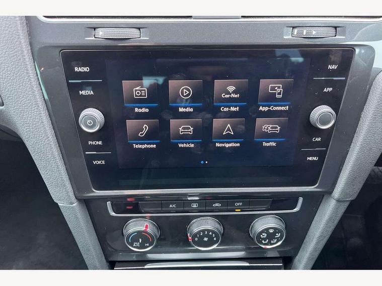 'Lights On' Reminder warning buzzer, ACC - Adaptive cruise control with front assist, forward collision warning, distance monitoring, city emergency brake and speed limiter, Bluetooth telephone and audio connection for compatible devices, Brake pad wear indicator warning light, Driver alert system, Driving Mode Selection with four preset modes - Eco, normal, sport or individual modes, Instrument cluster in white, Multifunction computer with visual gear change recommendation for fuel consumption, Power assisted speed sensitive electro-mechanical steering, Push tank flap, Speed limit display, Speedo, rev counter, electronic odometer, trip, service interval display, exterior temperature and fuel gauge, Stop/start system, Think blue trainer driver tips and journey analysis, Warning buzzer and light for front seatbelts unfastened, We Connect Go Dongle, Battery regeneration during braking, XDS electronic differential lock, Composition media system, DAB Digital radio receiver, Driver Personalisation profile selection, MP3/WMA compatability, Multi device interface (MDI) with USB connection, Personalisation 1.1 profile for media, Premium USB cable in choice of either Apple or Android smartphone compatibility, SMS Functionality, Title and cover art display, 4 X 20W output, USB connection and socket, USB and SD card connectivity, Auto dimming rear view mirror, Black front air intake and radiator grille with chrome insert, Black rear diffuser, Body colour bumpers, Body colour door handles, Body colour door mirrors with integrated indicators, Dusk sensor + automatic driving lights, Electric front windows, Electric rear windows, Electrically adjustable and heated door mirrors, Fully galvanised body, Heated rear windscreen, Hidden exhaust pipe, High level 3rd brake light incorporating LED Technology, LED front fog lights with static cornering light function, Range adjustable headlights via infotainment system with LED daytime running lights, Rear fog lamp, Rear number plate lights incorporating LED technology, Rear tinted glass 65% light absorbing from B pillar backwards, Rear window aerial, Rear window wash/wipe with intermittent wipe, Reflectors in all doors, Remote electrically foldable door mirrors, door mirror puddle lights and reverse activated kerb-view adjustment on passengers door mirror, Tailgate with integrated rear roof spoiler, Windscreen wipers/ intermittent wipe + 4 position delay, 12V socket in luggage compartment, 3 rear headrests, 4 load lashing points in luggage compartment, 60/40 split folding rear seat backrest, Auto fold down lever in rear seat backrest, Bag hook in luggage compartment x 2, Black decorative sleeve on gear handles, Cooled glovebox, Cover for storage compartment in centre, Cupholder cover, Dust/pollen filter, Front and rear reading lights X 2, Front centre armrest with storage compartment and two rear air vents, Front seat back storage pockets, Grab handles front x 2, rear x 2 with integrated coat hooks, Height and reach adjustable steering wheel, Illuminated vanity mirrors, Instrument lighting white adjustable panel illumination, Interior light delay, Isofix preparation for 2 rear child seats, Load through provision with rear centre armrest and cupholders x2, Luggage compartment lighting, Overhead storage box, Passenger underseat drawer, Pearl grey headlining, Storage box in luggage compartment, Storage compartment in roof console with cover, Storage compartments in centre console, Storage compartments in front doors, Storage compartments in rear doors, Stowable luggage compartment cover, Sun visors, Variable boot floor, height adjustable and removable, Convenience Pack - Golf, Light and Sight pack - Golf, Mirror pack - Golf, 3 rear three point seatbelts, Airbags - Driver's and front passenger's, curtain airbag, Driver's knee, front side impact and passenger's airbag deactivation switch, Anti-lock Braking System (ABS) with Hydraulic Brake Assist (HBA), Automatic post collision braking system, Child locks on rear doors, Driver/Passenger optimised head restraints, Electronic parking brake with auto hold, Electronic stability control (ESC) including Electronic differential lock (EDL) and ASR (Traction control) with deactivation via infotainment system, Front ventilated disc brakes and rear disc brakes, Pre crash preventive occupant protection, Three point height adjustable front seatbelts with tensioners, Tyre pressure loss indicator, Alarm with interior protection and deactivation via infotainment system, Electronic engine immobiliser, Brushed dark silver decorative inserts in dash and door panels, Chrome plated air vent surround, Chrome-plated light switch surround, Polar night black decorative inserts in centre console, Steel space saver spare wheel,