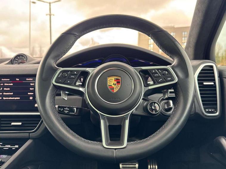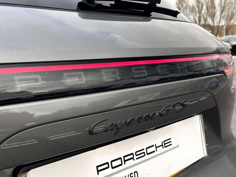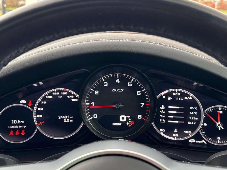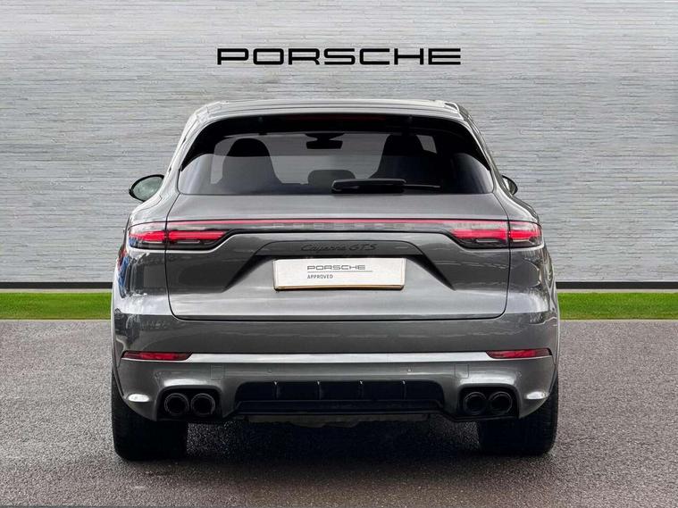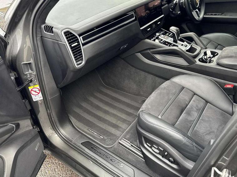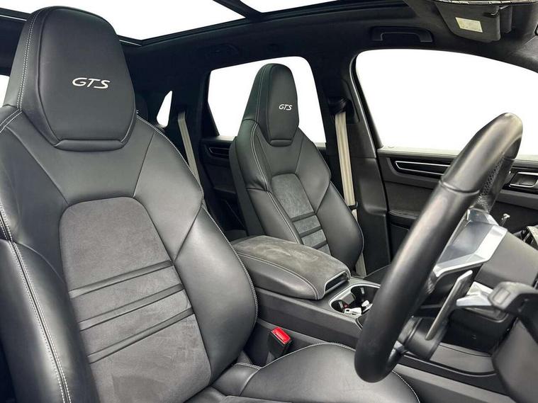 Android Auto, Apple car play, Brake pad wear indicator, Central analogue rev counter with black dial face and GTS logo, Driver personalisation for climate, audio and communication, assistance systems and other customisable car systems, Emergency call service, High resolution 12.3-inch touchscreen display in full HD resolution, Individual mode for individual selection of vehicle drive settings, Instrument cluster with two high-resolution displays, Mobile phone preparation with Bluetooth interface for telephone and music, Porsche Communication Management (PCM) including online navigation module, mobile phone preparation, audio interfaces and voice control system, Power tailgate, Vehicle electrical system recuperation, Warn and brake assist including pedestrian protection, 8 Speed Tiptronic S transmission with auto Start-Stop and coasting function, 90 litre fuel tank, Adaptive cylinder control, Aluminium cylinder heads and engine block, Direct fuel injection (DFI) with central injector position, Front and rear aluminium multi link axles, Gasoline particulate filter, Porsche Torque Vectoring Plus (PTV Plus), Sport mode, Twin turbo charged with twin scroll turbochargers, VarioCam, Water cooled with thermal management, AM radio, Digital radio, Two USB charge ports in rear compartment, Two USB charging and connectivity ports in the front centre console storage compartment, Active air intake flaps, Automatic headlight activation including welcome home functionality, Bumper system with high strength cross members and two deformation elements + Two receptacles with screw threads towing lug + onboard tool kit, Door lower cladding trim in exterior colour, Electric windows + anti trap protection + one touch open/close drivers side, Electrically adjustable, folding and heated exterior mirrors, aspherical on drivers side including courtesy lights, Exclusive tinted LED tail lights with three dimensional lighting graphic including light strip and integrated four point brake lights, Extensive aerodynamic underbody protection, Four point signature LED daytime running lights, Front end with integrated air intakes and airblades for the side air intakes, Front light modules including position lights and direction indicators in LED light guide technology, Front windscreen wipers with two speeds, intermittent wipe and rain sensor, Fully galvanised steel / aluminium hybrid lightweight bodyshell and Aluminium bonnet, tailgate, doors, side panels, roof and front wings, Gloss black side window trims, Heated rear window with automatic switch off, LED High level third brake light integrated into roof spoiler, Porsche logo and cayenne GTS model designation on tailgate in matt black, PORSCHE' lettering integrated in tailgate strip, Rear apron lower cladding painted in exterior colour, Rear side wing doors, Rear window wiper with intermittent function and washer jet, Sports exhaust system including sports tailpipes in black, Tailgate with integrated roof spoiler in exterior colour, Two twin exhaust tailpipes, left and right and brushed stainless steel finish, 3 seat bench in 2nd row, Alcantara roof lining, B-pillar clothes hooks on driver and passenger's side, Charge air cooling, Double sun visors for driver and front passenger, Driver/passenger sunvisors and vanity mirrors, Elevated centre console with handles, Five seats rear seat system with two comfort outer seats and a central seat, Front and rear bottle holders in door panels, Front centre armrest, GTS logo on door sills front, left and right in black, Integrated front headrests/2-way headrests rear, Isofix fastening system for child seats on outer rear seats, LED interior light with switchoff delay function, footwell + glove compartment light, ashtray + ignition lock illumination, front + rear reading light, Manual height adjust for driver and front passenger seat belt, Particle/pollen filter with active carbon filter, Rear seat split folding design 40:20:40, Fold out centre armrest with integrated cup holder, manual fore/after adjust and backrest angle adjust, Retractable roller luggage compartment cover in detachable cassette, Sideskirts in black plastic, Single front passenger seat, Stainless steel pedals, Storage compartments - Cooled glove compartment, front centre console, door and map pockets on front seat backrests + side luggage compartment, Three 12V power sockets - front below the glove compartment, centre console and at side of luggage compartment, Two integrated cup holders in front and rear with variable diameter, Sport design package - Cayenne, 3-point automatic seatbelts with front and outer rear seats pretensioners and front force limiter with 3-point automatic seatbelt for rear centre seat, 4 piston aluminium monobloc fixed caliper brakes at rear and internally vented brake discs, 6-piston aluminium monobloc fixed caliper brakes at front, internally vented brake discs, Active bonnet, Auto hold function, Brake discs with diameter 390mm at front 358mm at rear, Curtain airbags along roof frame and side glazing from the A-pillar to the C-pillar, Distance warning, Electronic parking brake, Front passenger airbag deactivation function for front seat mounting of child seat, Front side airbags integrated into seat, Full size driver and front passenger airbags, Knee driver and passenger airbags, Mounting points on passenger seat for ISOFIX child seat mounting system, Multi-Collision braking, Porsche hill control (PHC), PTM Porsche Traction Management active all-wheel drive with an electronically variable, map-controlled multi-plate clutch, ABD and anti-slip regulation, Rear door child safety locks, Rollover detection for activation of curtain airbags and seat belt pretensioners, Seat belt warning system for driver and front passenger and rear seat system, Side impact protection in doors, Tyre pressure monitoring system, Vehicle stability system, Porsche stability management (PSM) including ABS, ASR, ABD, MSR and trailer stability management, Alarm system