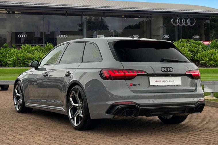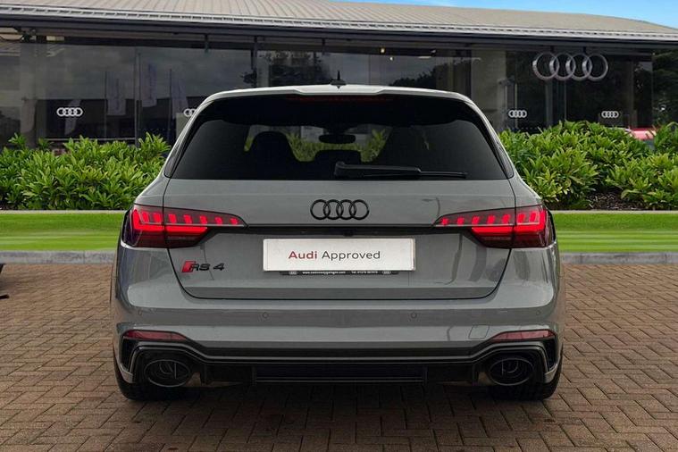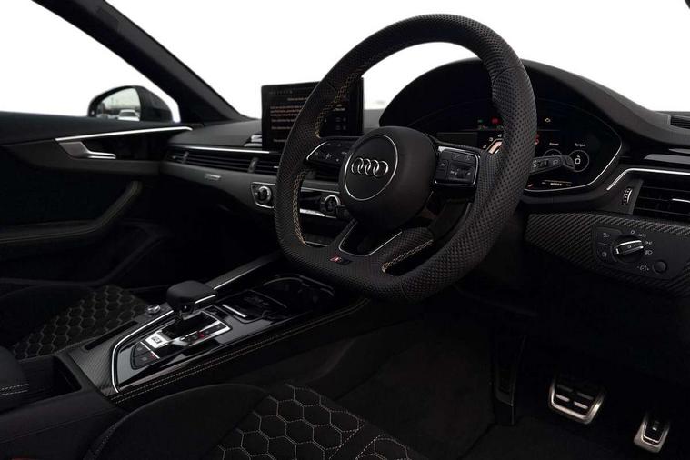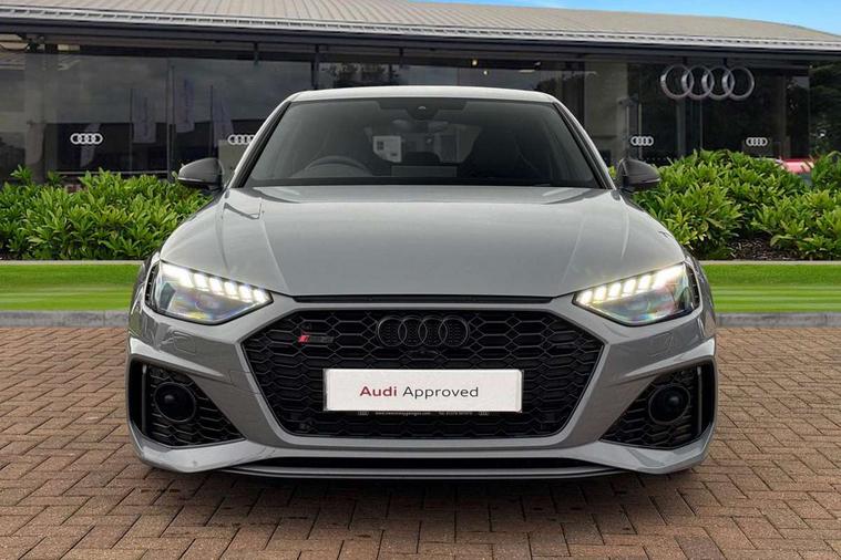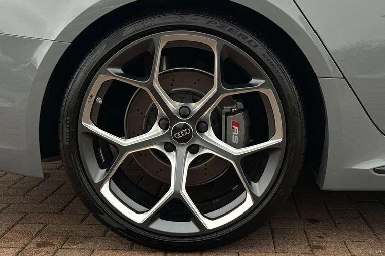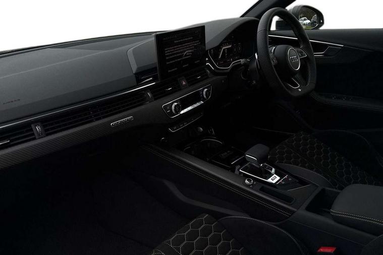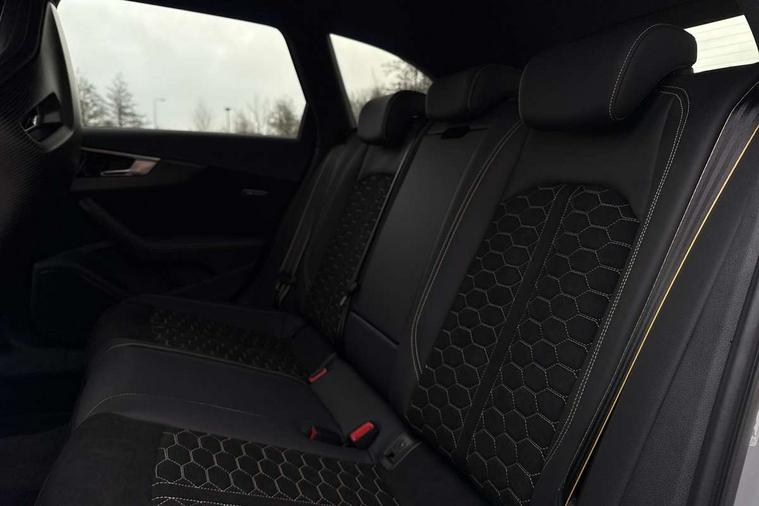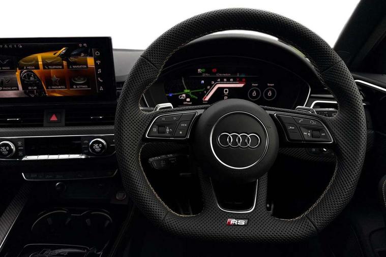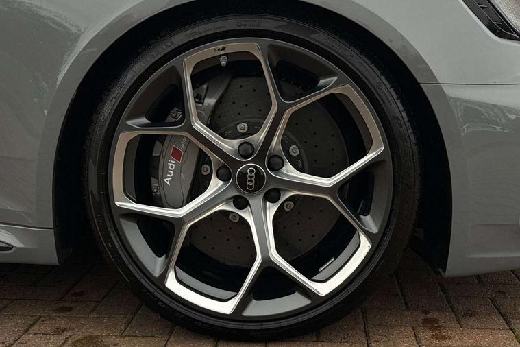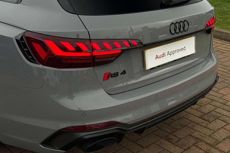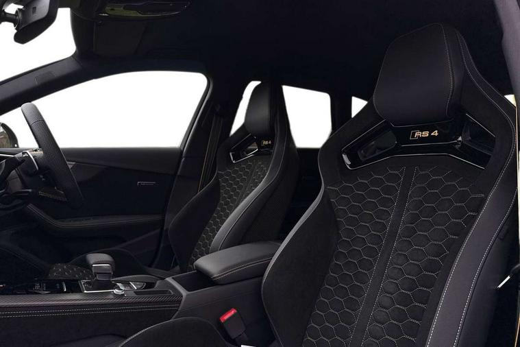 360 degree view camera, 7" Colour driver information system, Adaptive cruise control, Advanced key with electric hands free boot opening system, Audi connect safety and service (e-call), Audi parking system plus with front and rear sensors, Audi phone box light with wireless charging, Audi side assist, Audi smartphone interface, Audi virtual cockpit plus with additional RS layout and white dials, Automatic start-stop system with coasting functionality and efficiency programme, Bluetooth interface, Camera based traffic sign recognition, Email, calendar and text messages displayed via MMI, Lane departure warning, MMI Navigation plus with MMI touch includes 10.1" high resolution colour MMI display, 3D map, Power opening/closing tailgate, Progressive steering, RS Audi drive select, Service interval indicator, Voice control system, 58 Litre fuel tank, RS sport suspension pro - coilover suspension, Top speed restriction increase to 186mph, Updated centre (Torsen) differential with carbon friction discs and with rear torque bias, 2 USB charging ports, Bang + Olufsen 3D sound system, DAB digital radio module, Side part of centre console in alcantara with stitching in calendula yellow, Two additional USB ports for rear passenger in rear centre console, 3rd brake light, Audi Beam uses LEDs to project the RS 4 logo onto ground as you exit your vehicle, Audi Beam uses LEDs to project the RS logo onto ground as you exit your RS4, Audi matrix LED headlights with LED rear lights + dynamic front and rear indicators, Auto dimming rear view mirror, Automatic headlights + automatic windscreen wipers, Blue tinted glass, Body colour door handles, Electric front windows, Electric rear windows, Electrically folding auto dimming/adjustable/heated door mirrors with memory function, LED side indicators and kerb view function for passenger side, Exterior mirror housings in carbon matte, Flared front and rear wheel arches, Front bumper with enlarged air inlets, Headlight range control, High beam assistant, High gloss black triangular aperture at rear door, Honeycomb design grille with quattro logo, Lateral air inlets next to front headlights, LED daytime running lights, LED indicators in door mirrors, Panoramic glass sunroof, Privacy glass (tinted rear window and tinted rear door and side windows), Rain and light sensors, Rear side wing doors, Rear wiper, Roof spoiler, RS 4 badges on grille and rear, RS sport exhaust system plus with matte black tailpipes, RS4 dual branch chrome tailpipes with left and right oval pipes, Side sill extensions in body colour with high gloss black inserts, Towbar preparation, Windscreen with heat insulating and acoustic glazing, 3 seat bench in 2nd row, 3 spoke flat bottomed Sport contour leather multifunction plus steering wheel with calendula yellow stitching, 40/20/40 split folding rear seats with rear centre armrest, Black cloth headlining, Deluxe 3 zone electronic climate control, Dinamica leather upholstery with stitching in calendula yellow and honeycomb design + RS front bucket seats with RS 4 logo. Backrest cover in carbon, Door inserts in black Dinamica microfibre door armrests in black leather with stitching in calendula yellow, Electric load area cover, Front and rear floor mats in black (front floor mats with RS 4 logo, edging and stitching in calendula yellow), Front centre armrest in black leather with stitching in calendula yellow, Front headrests, Gear-lever knob in perforated leather gaiter in Dinamica microfibre with contrasting stitching in calendula yellow, Heated front seats, Heated steering wheel, Height and reach adjustable steering wheel with full size airbag, Illuminated door sill trims with RS4 logo, ISOFIX child seat mounting and top tether, Luggage compartment carpet, Manually adjustable front seats, Rear headrests, Retractable load area cover, Single front passenger seat, Stainless steel pedals, Sunvisors with vanity mirrors, Black styling plus pack - RS4, Carbon matte optics pack - RS4, Edition 25 years design pack - RS4, Extended LED Interior multi-coloured lighting pack - RS4, LED Interior light pack - RS4, Non Smokers pack, 3 point seatbelts on all rear seats, Adaptive driver and front passenger airbags, Attention and drowsiness assist, Audi pre sense basic and rear, Brake calipers painted in gloss anthracite grey, Electric child safety locks, Electromechanical parking brake, Electronic stabilisation control including ABS, ASR and EDL, Enhanced braking system, Front head airbags, Front seatbelt pretensioners + load limiters, Front side airbags, Hill hold assist, Multi-Collision braking, Pop-up bonnet for pedestrian protection, Pre sense city, Rear side airbags, RS ceramic brakes (high-performance brake system with carbon fibre reinforced ceramic brake discs at the front axle), Seatbelt monitoring, Traction control, Tyre pressure warning, Variable restraint system, Warning triangle and first aid kit, Anti theft alarm, Anti-theft wheel bolts, Immobiliser, Keyless Go, Remote central locking, Remote control key with RS emblem, Inlays in matt carbon twill, Tool kit, Tyre repair kit,