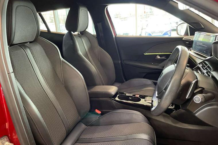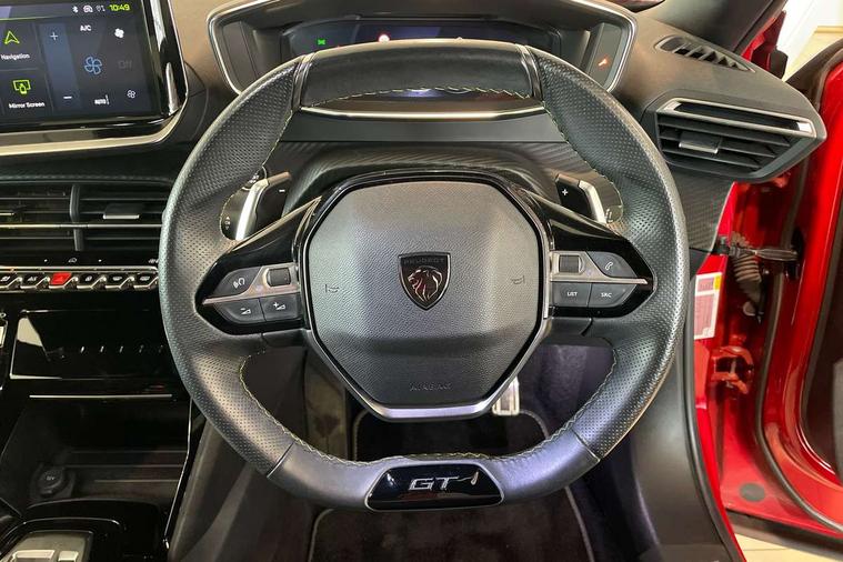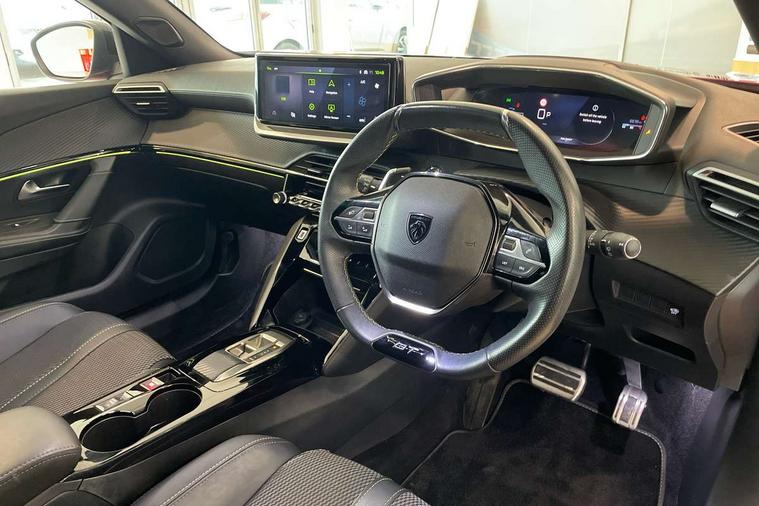 Bluetooth telephone facility, Driver attention warning, E-call, Exterior temperature indicator with ice warning, Multi function trip computer, PEUGEOT i-Cockpit with compact steering wheel, PEUGEOT i-Cockpit with configurable 3D headup instrument panel, PEUGEOT SOS and assistance, Smartphone charging plate, Speed limit recognition and recommendation, Wireless mirror screen with mirror link, apple carplay and android auto, Petrol Particulate Filter, 1x USB-C socket in rear and 1x USB-A socket in rear, 2 USB-C ports in the front, 6 speakers radio with mp3 compatible, DAB Radio (Digital Audio Broadcasting), Voice recognition for radio, navigation and telephony features, 2 X Rear number plate lights, Aluminium door sill scuff plates with peugeot lettering, Automatic hazard light activation upon heavy brake application, Black diamond roof, Black front wing trim with gloss black detail and GT badging, Body coloured exterior door handles, Dark tinted rear side and tailgate windows, Diamond black mirror shells, Diamond black rear roof spoiler, Electric, heated, and power folding door mirrors, Frameless electrochrome interior rear view mirror, Front bumper - Meteor grey lower trim, Full LED headlights with smartbeam assist with auto height adjustment, Gloss black finish on B pillar, Gloss black rear cluster connecting strip, Gloss black roof bars, Gloss black window surround, GT model designation badging on tailgate, Headlights left on audible warning, LED daytime running lights with distinctive 3 claw signature, LED side indicator lights integrated into door mirrors, LED third brake light, Model designation badges front and rear, One touch electric front/rear windows with pinch protection, Radiator grille - body coloured vertical chequered grille, Radiator grille - gloss black top edge trim, Rear full LED 3D peugeot signature claw effect lights with daylight function, Rear reversing lights, Rear side wing doors, Rear windscreen wiper triggered automatically in reverse gear, Tailgate with heated rear windscreen and wiper blade, Twin chromed exhaust pipes, Wheel arch extensions, 1/3 to 2/3 split folding rear seats, 12V socket, 3 seat bench in 2nd row, 8 Colour personalisable ambient lighting, Automatic air conditioning with pollen and active carbon filter, Central front armrest with storage compartment, Driver and front passenger sport seats, Electric power steering with reach and rake adjustable steering column, Front and rear carpet mats in black, Front LED interior light with 2 reading spotlights and rear interior light with timer, Front passenger seat manual adjustment - height, longitudinal and back rest angle, High centre console, ISOFIX child seat mounting points on passenger seat, Mistral full-grain perforated leather steering wheel with Lime Green stitch detail and satin chrome 'GT' emblem, Multifunction steering wheel, Piano keys: Gloss black and chrome toggle switches to access main functions of the vehicle and touchscreen functions, Roof lining - Mistral black, Seatbelt unfastened on the move audible and visual alert for front and rear seats, Single front passenger seat, Two position modular boot floor, Visibility pack - 2008, 2x 2nd row ISOFIX child seat mountings, ABS (Anti-lock Braking System) with EBD (Electronic Brakeforce Distribution) and EBA (Emergency Braking Assistance), Active safety brake with night function/cyclists/pedestrians, Adaptive driver and front passenger airbags with passenger airbag deactivation function, Child locking functionality on rear doors, Driver/front passenger side airbags, Electric parking brake, ESP (Electronic Stability Program) + Hill Start Assist, Front and rear curtain airbags, Front and rear disc brakes, Front and rear three-point retractable seatbelts, with force limiters, Front optimised safety headrests and rear retractable headrests (x3), height adjustable, Tyre pressure sensor, Automatic door locking when moving off, Deadlocks, Electronic code immobiliser, Peugeot Open and Go (keyless entry and push button start), Thatcham category 1 alarm, Carbon effect Dashboard, front and rear door panel finish,