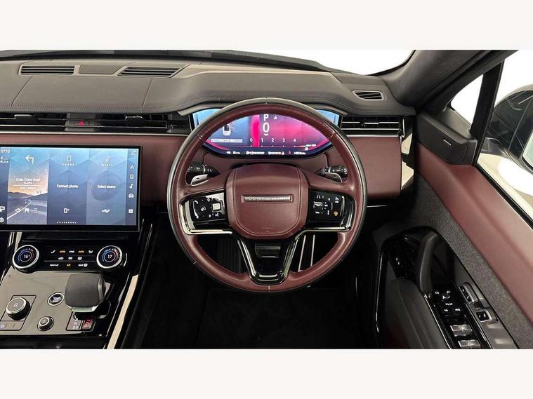 13.1" Touchscreen, 3D 360 degree surround camera with wade sensing, Adaptive cruise control with steering assist, Android Auto, Apple car play, Blind spot assist, Bluetooth connectivity streaming, Driver condition response, Eco mode, Electric power assisted steering (EPAS), Interactive Driver display instrument cluster, Lane departure warning system, Lane keep assist, Push button start, Rear collision monitor, Rear traffic monitor, Remote, Traffic sign recognition with adaptive speed limiter, Trip computer, Wireless device charging with phone signal booster, 8 speed automatic transmission, Adaptive dynamics, All wheel drive system, Automatic access height, Terrain Response 2, DAB Radio (Digital Audio Broadcasting), Incontrol protect - SOS emergency call with automatic collision detection, optimised assistance call and Incontrol remote app essential, Pivi pro connected, USB/aux input socket, Adaptive brake lights, Automatic headlight levelling, Automatic headlights, Centre high mounted stop light, Electric heated/power fold memory door mirrors with approach lights and auto dimming driver side, Electric windows with one touch open/close and anti trap, Flush deployable exterior door handles, Follow me home lighting, Front and rear recovery eyes, Headlight power wash, Heated rear window, Heated washer jets, Heated windscreen, LED tail lights, No badges, Rain sensing windscreen wipers, Rear animated directional indicators, Rear fog lights, Rear side wing doors, Rear wash/wipe, Remote window closing, Side repeater indicators in mirror, Trailer stability assist, Winter wiper park position, 3 seat bench in 2nd row, 60:40 seats with power recline and loadthrough, Air quality sensor, Auto air recirculation, Bright metal foot pedals, Centre console with armrest, Customer configurable single point entry, Driver's footrest, Easy boot loading, Ebony console door armrests and seatbelts, Electric adjustable steering column, Front and rear cupholders, Front door storage space, Front head restraints, Front map lights, Front seat back map pockets, Front stowage pocket, Front/rear passenger grab handles, Gearshift paddles, Heated steering wheel, Isofix child seat preparation, Loadspace cover, Loadspace Hook, Loadspace light, Loadspace mounting provisions, Lockable glovebox, Luggage tie-downs in loadspace, Multifunction steering wheel, Pollen filter, Power socket, Rear centre armrest, Rear head restraints, Rear ISOFIX, Single front passenger seat, Three 12V accessory power outlets, Upper secondary glovebox, Online pack with data plan - Range Rover Sport, 3 point seatbelts on all seats, Anti-lock braking system (ABS), Brake pre-fill technology, Configurable autolock, Cornering brake control (CBC), DSC - Dynamic Stability Control, EBD - Electronic brakeforce distribution, Electric parking brake, Electronic traction control, Emergency braking, Front seatbelt pretensioners, Front side airbags, Height adjustable front seatbelts, Hill descent control, Hill launch assist, Low traction launch, Occupant protection assist, Passenger seat occupant detector with front airbags, Power operated child locks, Roll stability control, Seatbelt warning, TPMS (Tyre pressure monitoring system), Immobiliser, Intrusion sensor, Keyless entry, Locking wheel nuts, Perimetric and volumetric anti theft alarm, Remote locking, Moonlight noble chrome interior finishers,