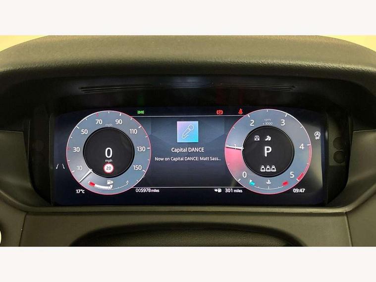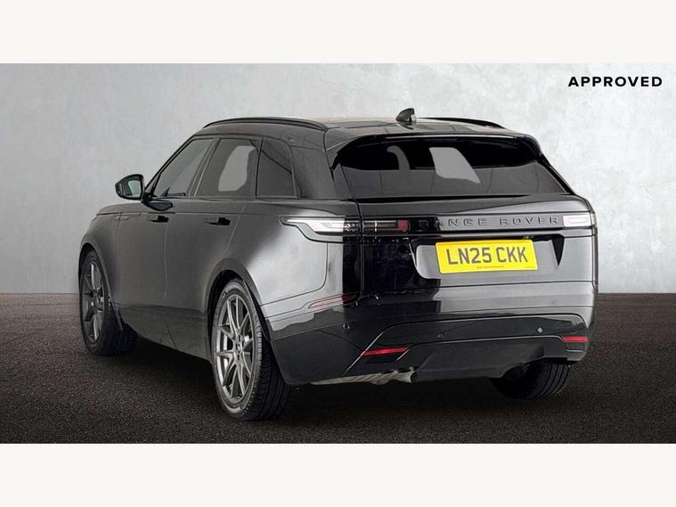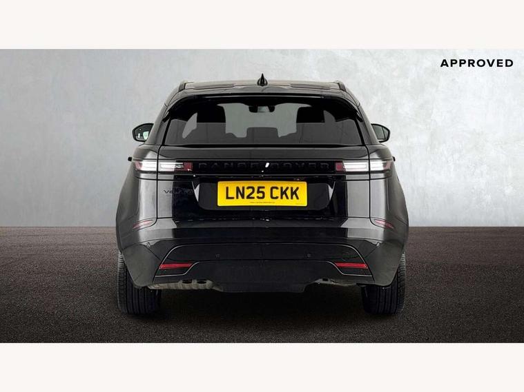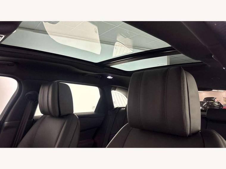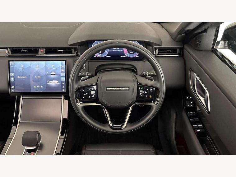 Adaptive cruise control with steering assist, Android Auto, Apple CarPlay, Blind spot assist, Bluetooth connectivity, Brake pad wear indicator warning light, Driver condition monitor, eCall emergency call system, Front and rear parking aid, InControl remote, Land Rover InControl apps, Lane keep assist, Pivi pro with connected navigation, Rear collision monitor, Rear traffic monitor, Service indicator, Speed proportional electronic power assisted steering (EPAS), Traffic sign recognition with adaptive speed limiter, Trip computer, Voice control system, Wireless device charging, 8 speed automatic transmission, Adaptive dynamics, All terrain progress control, Electronic air suspension, Open differential with torque vectoring by braking, Single speed transfer box, DAB radio, Steering wheel mounted controls, 3rd brake light, Acoustic laminated windscreen, Auto dimming interior rear view mirror, Automatic headlamp levelling, Automatic headlights, Body coloured bumpers, Boot protection plate, Electric windows with one touch open/close and anti trap, Flush deployable exterior door handles, Follow me home headlights, Heated rear window with timer, Heated washer jets, Heated windscreen, Metal front tread plates, Metal load space scuff plates, Pixel LED headlights with signature DRL, Power fold, auto-dimming, heated door mirrors with memory and approach lights, Rain sensor windscreen wipers, Rear animated directional indicators, Rear fog lights, Rear side wing doors, Rear wash/wipe, Tailgate/boot lid spoiler, Trailer stability assist, Velar badge, 3 seat bench in 2nd row, Ambient lighting, Bright metal pedals, Carpet mats, Driver/passenger sunvisors with illuminated vanity mirrors, Ebony morzine headlining, Electrically adjustable steering column, Extended leather upgrade, Heated steering wheel, Isofix system on outer rear seats, Loadspace cover, Overhead lighting console, Overhead stowage for sunglasses, Passive front headrests, Rear air vents, Rear centre headrest, Single front passenger seat, Twin front cupholders, Twin sliding front centre armrest, Online pack with data plan - Velar, Power socket pack 2 - Velar, 355mm Front and 325mm Rear brakes, 3x3 point rear seatbelts, Anti-lock braking system (ABS), Cornering brake control, Curtain airbags, Customer configurable autolock, Door side intrusion beams, Driver airbag, DSC - Dynamic Stability Control, Electronic brake force distribution, Electronic parking brake, Electronic traction control, Emergency braking, Front and rear seatbelt reminder, Hill descent control, Hill launch assist, Low traction launch, Passenger airbag, Power operated child locks, Rear airbags, Roll stability control, Side airbags, Tyre pressure monitoring system (TPMS), Global lock and unlock switch on driver door, Immobiliser, Intrusion sensor, Keyless entry, Lock only switch on front passenger door, Locking wheel nuts, Perimetric alarm, Remote central locking, All season tyres,