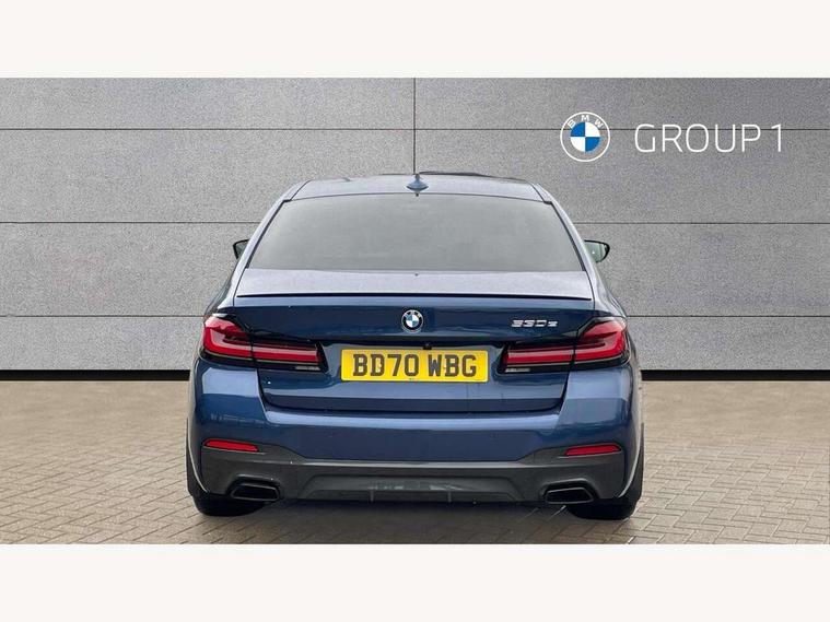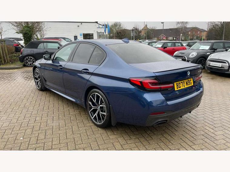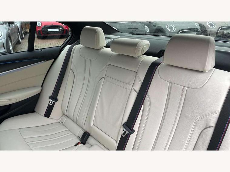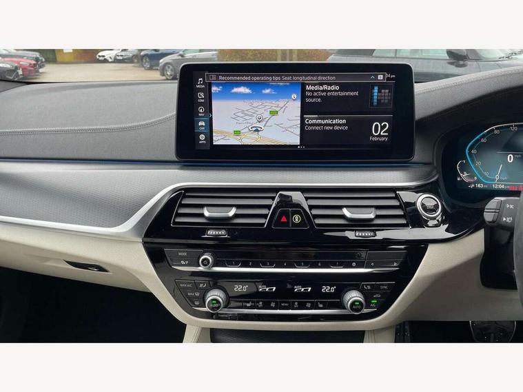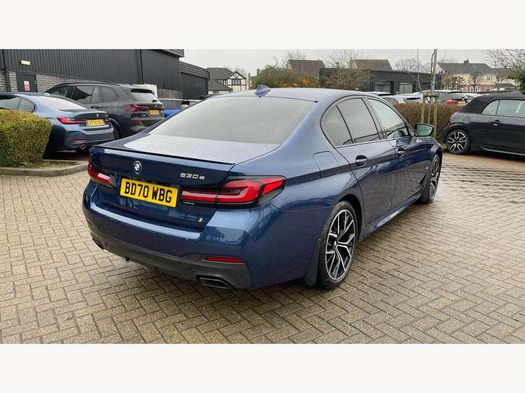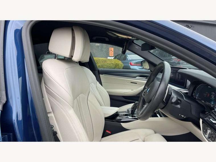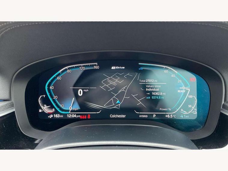32GB hard disc drive (HDD) memory, Active Guard, BMW ConnectedDrive online services, BMW Live Cockpit Professional sat nav system with 12.3" instrument display and high resolution control display, BMW Teleservices, Brake pad wear indicator, Cruise control with brake assist, Digital Instrument display with hybrid specific functions, Driving experience switch, Electric Power Steering (EPS) with Servotronic, Electronic display of drivetrain information and battery range and temperature, iDrive touch controller with shortcut buttons, Intelligent emergency call, Multifunctional instrument panel, Oil sensor for level and grade, On board computer inc. average speed, fuel consumption, liquid crystal Info display, journey computer, outside temperature display, personal profile, On-board diagnosis - OBD, Powered by Operating System 7.0, Service interval indicator, Speed limiting function, Stop/start button, XtraBoost driving mode, 5 metre standard charge cable, AC Fast charge cable, Charging flap in front side panel - left, Drive performance control with ECO PRO comfort + sport mode, Electric motor, Engine cover with twin turbo designation, Steptronic sport transmission with gearshift paddle switches on steering wheel, DAB Digital radio, Favourite buttons, Acoustic glazing, All round anti-corrosion system, Aluminium radiator, Automatically dimming rear view mirror, BMW Individual high gloss shadow line includes exterior mirror frame, window frame surround, B pillar finish, air breather in high gloss black, Body colour door handles, Body coloured bumpers, Door handle illumination, Dynamic brake lights with LED technology, Electric front and rear windows with fingertip open/close + anti-trap facility and comfort closing function, Electrically adjustable and heated exterior mirrors includes integrated direction indicators and automatic parking function, Follow me home headlight function, Heated windscreen washer jets, High gloss black active air stream kidney grille, Interior rear view electrochromatic mirror with automatic anti dazzle function, LED daytime running lights, LED third brake light, M designation on front side panels, left and right in chrome, Rain sensor with automatic headlight activation, Trapezoidal visible exhaust tailpipes, 12V power socket in front and rear, Armrest - front and rear integrated door trim, centre console includes storage compartment, rear centre includes 2 cupholders, Child seat ISOFIX attachment with rear outer seats includes top tether, Cup holders (2 front and 2 rear), Front and rear footwell lights, Front reading lights, Height and length adjustable steering column and activation via lateral lever on the steering column, Illuminated charging socket with visual display of charge status, Illuminated M door sill finishers, Lockable glove compartment with light, M specific pedals, M specific velour floor mats, Multifunction controls for leather steering wheel, Rear headrests, Stationary cooling, Three spoke sport M leather steering wheel, Ambient lighting pack - 5 Series, Connected package professional - 5 series 530e/545e, Expanded exterior mirror pack - 5 Series, M Aerodynamic pack - 5 Series, 3x3 point rear seatbelts, Acoustic protection for pedestrians, Airbags - driver/front passenger, rear and side, first and second row seats head airbags, front passenger seat airbag deactivation + knee airbag, Anti-lock braking system (ABS), Automatic Stability Control (ASC), Brake assist function, Brake energy regeneration, Cornering brake control (CBC), Crash sensor activating central locking release, hazard warning lights, fuel cut off and interior lighting, Deformation zones - front and rear with door reinforcements and bumpers up to 2.5 mph, DSC - Dynamic Stability Control, Dynamic brake control, Dynamic Traction Control - DTC, Electromechanical parking brake with automatic drive away release and auto hold function, Electronic brake force distribution, Engine drag torque control, Front and rear brake discs with interior ventilation, Front head restraints with anti-whiplash, Hill start assist, M Sport brakes in high gloss blue painted brake callipers with M designation, Mechanical child proof lock on rear doors, Side impact protection, Three point seat belts for all four seats, Two tone horn, Tyre pressure indicator, Warning triangle and first aid kit, Alarm system (Thatcham 1) with remote control and electronic engine immobiliser, Locking wheel bolts,