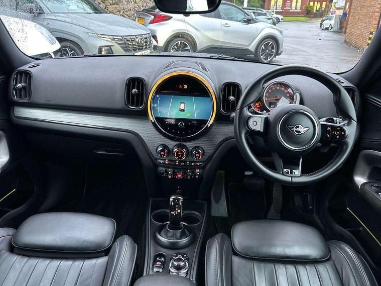 Active Guard incl speed limiting and lane departure functions with auto steering, and front collision warning with brake intervention, Automatic start/stop function with brake energy recuperation, Electro-mechanical speed dependant steering assistance, Instrument cluster, MINI Driving Modes - centre toggle switch to control driving setting (sport, mid and green), Mini E-call, MINI TeleServices, On board computer, Double Vanos system, Fully variable valve control, High precision injection, Performance Control, Steptronic sport transmission with double clutch and steering wheel paddles, FM tuner and DAB digital radio, 3rd brake light, Bonnet scoop, Chrome fuel filler cap, Day time driving lights, Dynamic brake lights, Electric windows, Heated rear window, Heated windscreen washer jets, LED fog lights, Metal door sill strips with Cooper S imprint, MINI yours exterior badge in C-Pillar, driver and passenger side, Model logo, Model logo on Tailgate, Rain sensor with auto headlights, Rear fog lights, Rear side wing doors, Rear window wiper, Side scuttle panel with integrated indicator, Split rear doors, Sun/heat protection glass, White indicator lenses, 12V socket in centre console, 3 seat bench in 2nd row, 360L luggage compartment capacity, 4 lashing eyes in luggage compartment, 40:20:40 split folding rear seats, Anthracite headlining with grab handles and clothes hooks, Chrome interior highlights, Colour line - Carbon black, Cupholders, English handbook, Front headrests, Glove compartment, Height and length steering column adjustment, Interior lighting with 12 basic colours selectable via toggle switch in roof, Isofix rear child seat preparation, Leather gearshift lever and handbrake gaiters, LED reading lights, vanity mirror lights, front foot well light and spotlight on front seats, MINI Yours fine walk nappa leather steering wheel with contrast stitching in silver and MINI Yours badge, Multifunction steering wheel, Rear headrests, Single front passenger seat, Storage compartments in doors, Sunvisors with vanity mirrors, Excitement pack - Countryman, Navigation plus pack - Countryman, 2 tone horn, 3 point seatbelts on all seats, 6 Airbags - front, side, head and seat belt tensioners, Anti-lock braking system (ABS), DSC - Dynamic Stability Control, Electronic handbrake, Front and rear disc brakes, Hill start assist, Manual rear child locks, Tyre pressure monitoring system, Alarm system with tilt sensor, monitoring doors, bonnet interior and tailgate, Auto drive away locking, Deadlocking function, Electronic vehicle immobiliser, Locking wheel bolts, Start/stop toggle with keyless go, Tool kit,