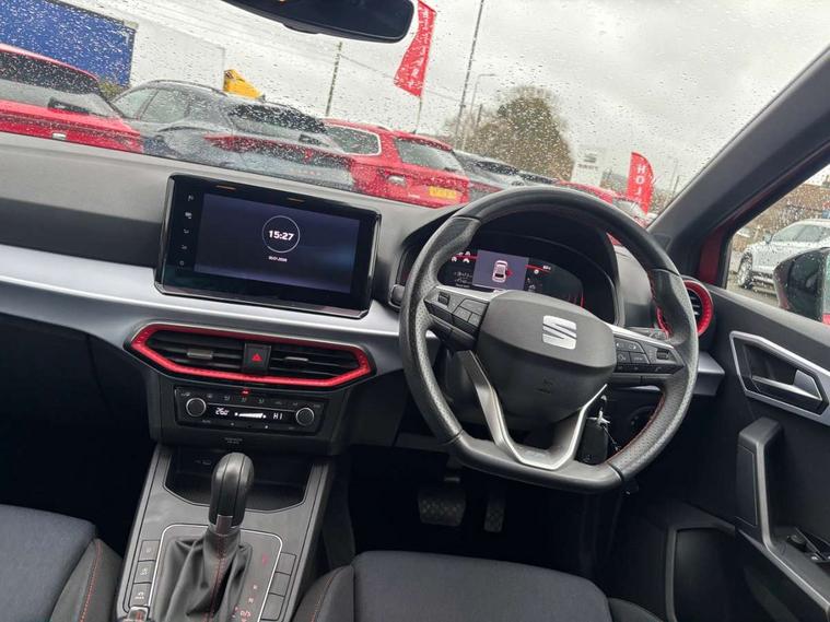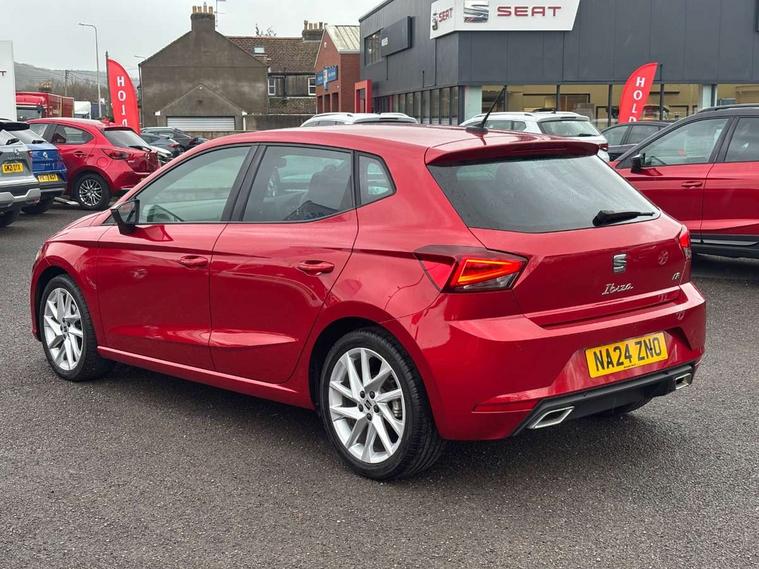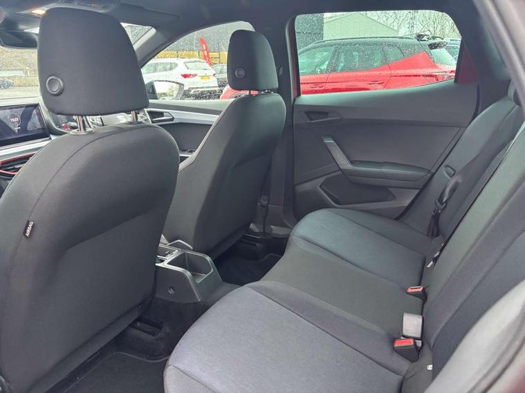 'Lights On' Reminder warning buzzer, 8" Digital cockpit, 9.2" touchscreen navigation system with type C USB socket, Voice control and DAB/AM/FM radio, Auto start and stop system, Bluetooth audio streaming with handsfree system, Digital clock, E-call, Full link smartphone integration with mirror link, wireless apple carplay, Google android auto + USB Type C cable for apple and android devices, Lane assist, Low fuel warning light, Outside temperature gauge, Power Steering, Rear parking sensor, Seat connect plus with safety, service, remote and online, SEAT drive profiles and ECO function, SEAT logo boot release, Speed limiter, Traffic sign recognition, Trip computer, Sports suspension, Auxiliary input socket, Radio/MP3 player, SD card slot, Steering wheel mounted controls, Anti theft roof antenna, Auto dimming rear view mirror, Automatic rain sensing wipers, Black door mirror caps, Body colour bumpers, Body colour door handles, Brilliant black window surrounds, Dark tinted rear windows, Electric adjustable/heated/folding door mirrors, Electric front windows, Electric headlight adjustment, Electric rear windows, Front/rear fog lights, FULL LED automatic headlights with dynamic headlight range control, coming and leaving home, LED daytime running lights, LED tail lights, Rear roof spoiler with FR twin exhausts, Rear side wing doors, Rear wiper, Third brake light, 3 seat bench in 2nd row, 60/40 split folding rear seat, Ambient interior lighting, Chrome detailing and black headlining, Cloth upholstery, Dual zone climate control with combination filter, Front courtesy lights, Front cupholders x 2, Front reading lights, Gear shift indicator, Glovebox, Height adjustable front and rear headrests (five), Height adjustable front seats, Height/reach adjust steering wheel, Illuminated air vent surrounds, Illuminated boot, Instrument lighting with brightness control, Isofix, Leather multifunction flat bottomed sports steering wheel with gearshift paddles, Passenger sunvisor, Single front passenger seat, Sports seats, Sunvisors with mirror and driver side card holder, Safety and driving pack (S) - Ibiza, 3 point seatbelts on all 3 rear seats, ABS, Active front headrests, Child locks on rear doors, Electronic stability control, Energy recovery system, Front driver and passenger side airbags with curtain airbag and front passenger airbag deactivation, Hill hold control, Multi-Collision braking, Seat belt reminder for front and rear seats, Tiredness recognition system, Tyre pressure monitoring system, Electronic engine immobiliser, Locking wheel bolts, Perimeter alarm and interior monitoring inc.backup horn, tow away protection and electronic engine immobiliser, Remote central locking + deadlocks, 17" Alloy wheels in Brilliant silver,