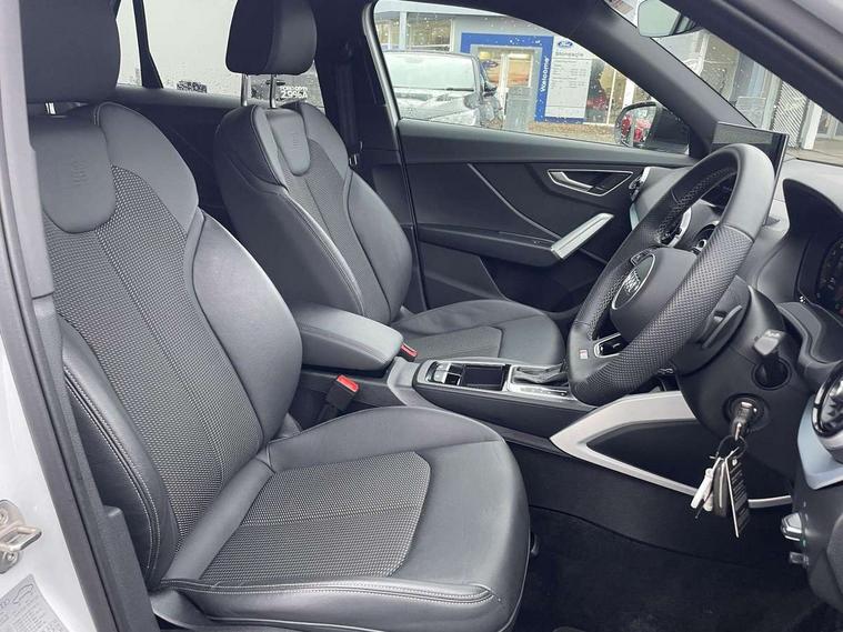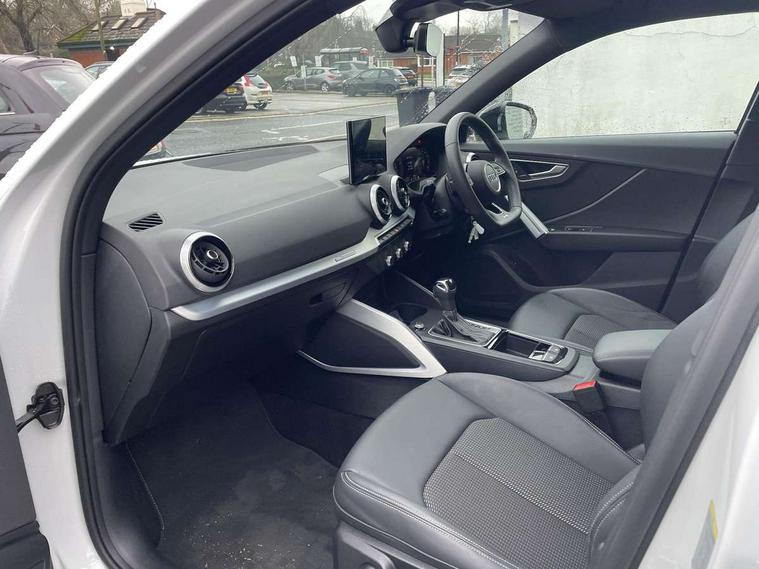 3D map display, Audi connect navigation and infotainment includes innovative services, Audi connect remote and control connects your vehicle to your smartphone, Audi drive select: S tronic - power steering assistance + engine + gearshift (modes: comfort, auto, dynamic, efficiency, individual), Audi smartphone interface - Apple carplay/Android Auto, USB connect, 2xSDXC card readers, voice control for navi, telephone, music and 3rd party apps, Audi virtual cockpit, Automatic start/stop system with recuperation, Bluetooth interface includes bluetooth audio streaming, Camera based traffic sign recognition, Cruise control, Distraction and Fatigue warning, E-call, Jukebox hard drive memory for music (10GB), Lane departure warning, MMI navigation plus with 8.8" touchscreen, Natural voice recognition, Power operated tailgate, Progressive steering, Rear parking sensors, Sport suspension, 6 passive loudspeakers, DAB Digital radio, USB type C port, Audi beam, Auto dimming rear view mirror, Black window trims, Bumper in full body colour paint finish, Electrically adjustable, folding, auto dimming and heated door mirrors with integrated LED side indicators, Front windscreen with grey tinted sunband, LED daytime running lights, LED headlights with dipped beam, high beam, position lights, indicators, LED rear lights, LED third brake light, Privacy glass - dark tinted rear and rear side windows from B-pillar backwards, Rear side wing doors, Rear wiper, Variable front intermittent wipers, Wheel arch trims in manhattan grey, 12v socket in front, 3 seat bench in 2nd row, 3 spoke flat bottomed multi-function leather sport steering wheel with gear shift paddles, 4-way electric lumbar support for front seats including manual seat height adjustment for both front seats, 60/40 split folding rear seat bench, Black carpets, Black cloth headlining, Front and rear head restraints, Front centre armrest, Front sport seats, Front/rear floor mats, Height/reach adjust steering wheel, Illuminated door sill trims with S logo, ISOFIX child seat mounting in front passenger and rear outer seats, Manual air conditioning, Single front passenger seat, Stainless steel pedals, Black styling pack - Q2, 3x3 point rear seatbelts, 6 airbags - Front, curtain and front side airbags, Electromechanical parking brake, Electronic stabilisation control including ABS, ASR and EDL, Front passenger airbag deactivation, Hill hold assist, Pre-sense front with pedestrian recognition, Seatbelt monitoring, Tyre pressure warning light with visual and acoustic warning, Warning triangle and first aid kit, Anti theft alarm, Anti theft wheel bolts, Electronically operated child locks, Remote central door locking, Aluminium interior element, Black dashboard, Gloss black centre console, Matt brushed aluminium trim inlays, Tool kit,