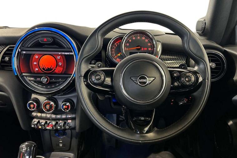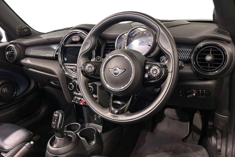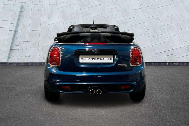 Automatic start/stop function with brake energy recuperation, Compatible mobile phone bluetooth with audio streaming, Electro-mechanical speed dependant steering assistance, Head up Display, Instrument cluster, MINI Driving Modes - centre toggle switch to control driving setting (sport, mid and green), Mini E-call, MINI TeleServices, On board computer, Rear park distance control, Service interval indicator, Double Vanos system, Fully variable valve control, High precision injection, Performance Control, Steptronic sport transmission with double clutch, 6.5" touchscreen with LED ring, FM tuner and DAB digital radio, Harman Kardon Hi Fi system with amplifier and 12 speakers, Automatic headlight activation switch, Body colour mirror caps, Bonnet scoop, Chrome border honeycomb structure radiator grille with S badge, Chrome plated fuel cap, Dynamic brake lights, Electric windows, Fully electric black softtop with integrated sunroof functionality, Heated rear window, Heated windscreen washer jets, LED headlight with closed ring and daytime driving lights, Metal door sill strips with Cooper S imprint, Metallic paint, Model logo Cooper S on right of tailgate, Rain sensor window wipers, Rear fog lights, Rear LED lights with union jack design, Side scuttle panel with integrated indicator, Sidewalk bonnet stripes with pin lines, Sidewalk design softop in black with Sidewalk pattern in titanium grey, Sidewalk side scuttle badging, Sun/heat protection glass, Two central exhaust tailpipes with chrome finisher, White indicator lenses, 12V Accessory socket in centre console, 4 lashing eyes in luggage compartment, 50/50 split folding rear seats, Chrome interior highlights, Colour line - Carbon black, Cupholders, Easy Load boot handles, Front and rear isofix with front passenger airbag deactivation, Front headrests, Front seatback storage pockets, Glove compartment, Height and length steering column adjustment, Interior lighting with 12 basic colours selectable via toggle switch in roof, Leather gearshift lever and handbrake gaiters, LED reading lights, vanity mirror lights, front foot well light and spotlight on front seats, Mechanical seat adjustment, driver seat height adjust, forward/back and front seats backrest, Mini logo projection on floor from drivers exterior mirror, MINI Yours lounge leather upholstery with Sidewalk seat badging, Multifunction steering wheel, Rear headrests, Sidewalk design brushed alloy door entry strips, Sidewalk design door bezels, Sidewalk floor mats with contrasting surround in dark petrol and decorative stitching in energetic yellow, Sidewalk illuminated interior surfaces with cockpit pattern in petrol and dark silver, Sidewalk sport leather steering wheel with Sidewalk badging and contrast sticting in petrol, Storage compartments in doors, Sunvisors with vanity mirrors, Comfort plus pack - Mini Convertible, Convertible pack with comfort access - Mini Convertible, Navigation plus pack - Mini Convertible, 3 point seatbelts on all four seats, 6 Airbags - front, side and seat belt tensioners, Active rollover protection, Anti-lock braking system (ABS), DSC - Dynamic Stability Control, Front and rear disc brakes, Hill start assist, Two tone horn, Tyre pressure monitoring system, Alarm system with tilt sensor, monitoring doors, bonnet interior and tailgate, Electronic vehicle immobiliser, Keyless Go, Chequered black interior trim, 17" Scissor spoke 2 tone alloy wheels, Tool kit, Tyre repair kit,